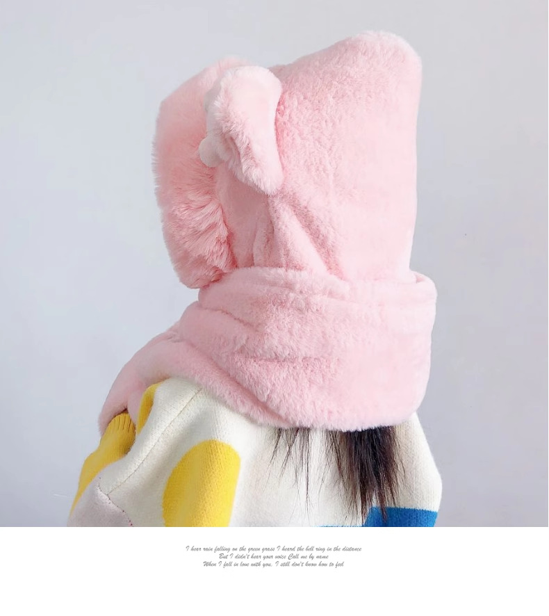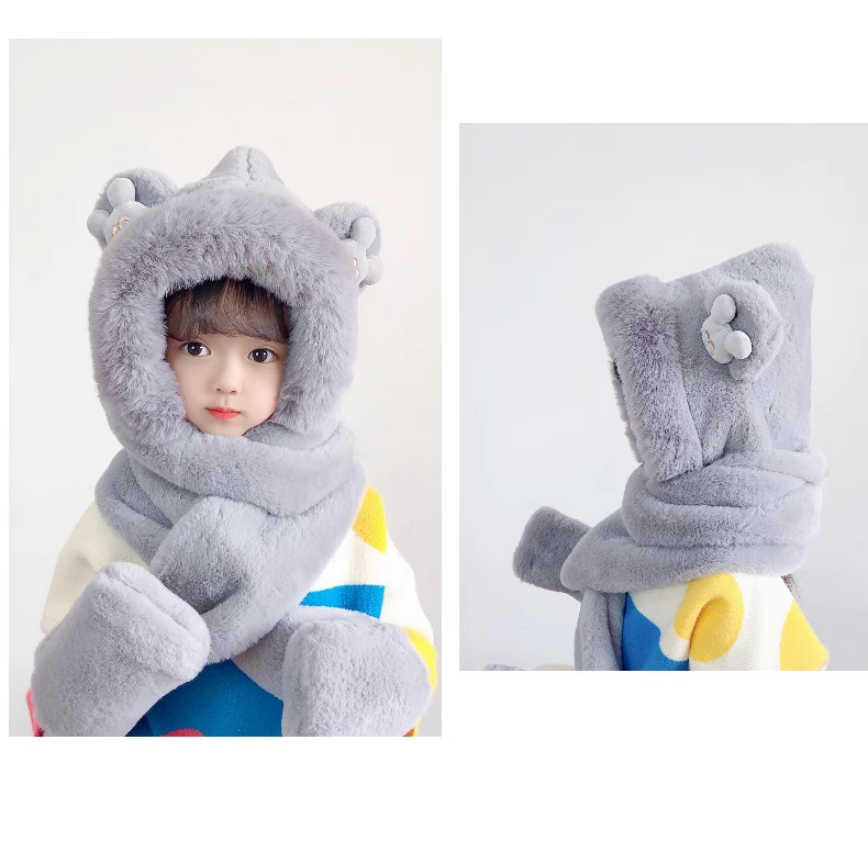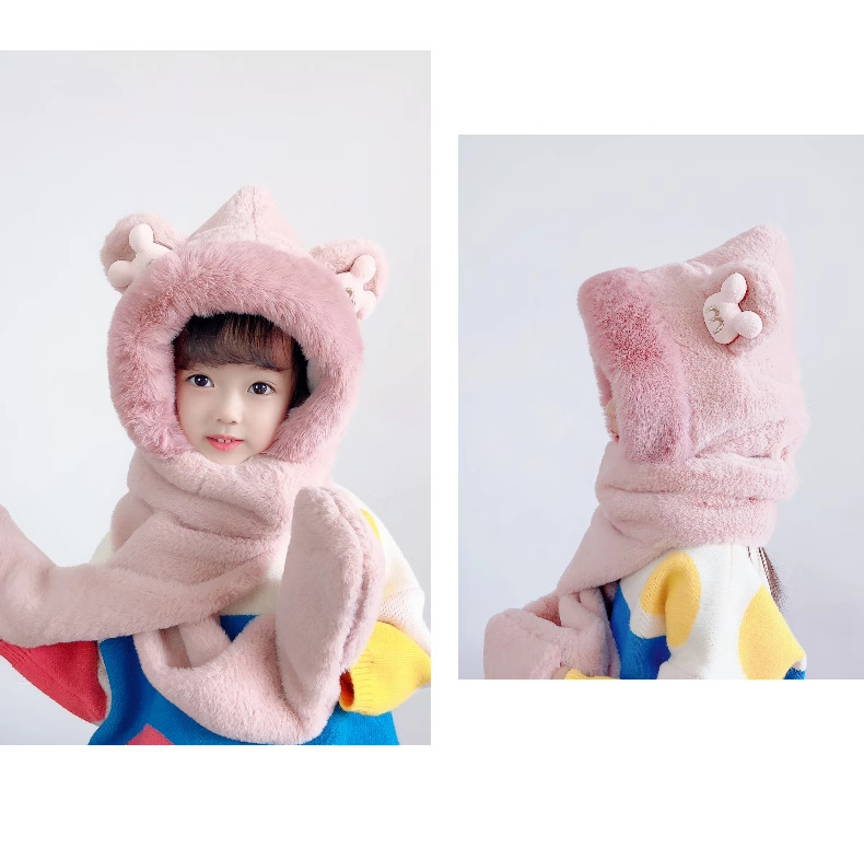 儿童帽子围巾手套三件套冬季加绒超厚女童一体帽男宝宝防风帽亲子