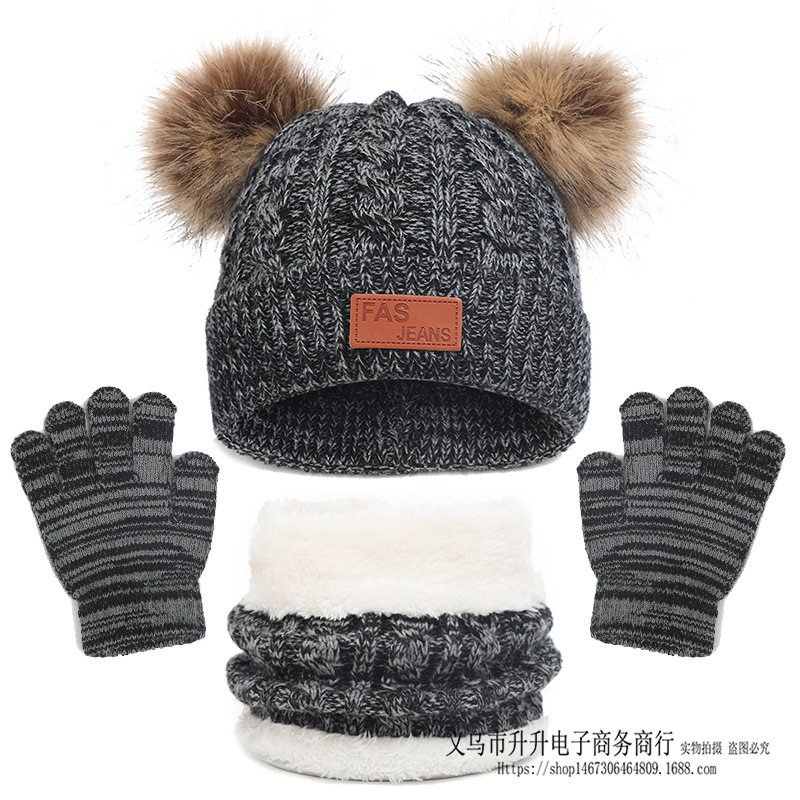 跨境新款欧美儿童帽子围巾手套三件套杂色系秋冬新款保暖宝宝帽子