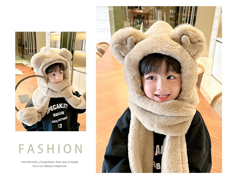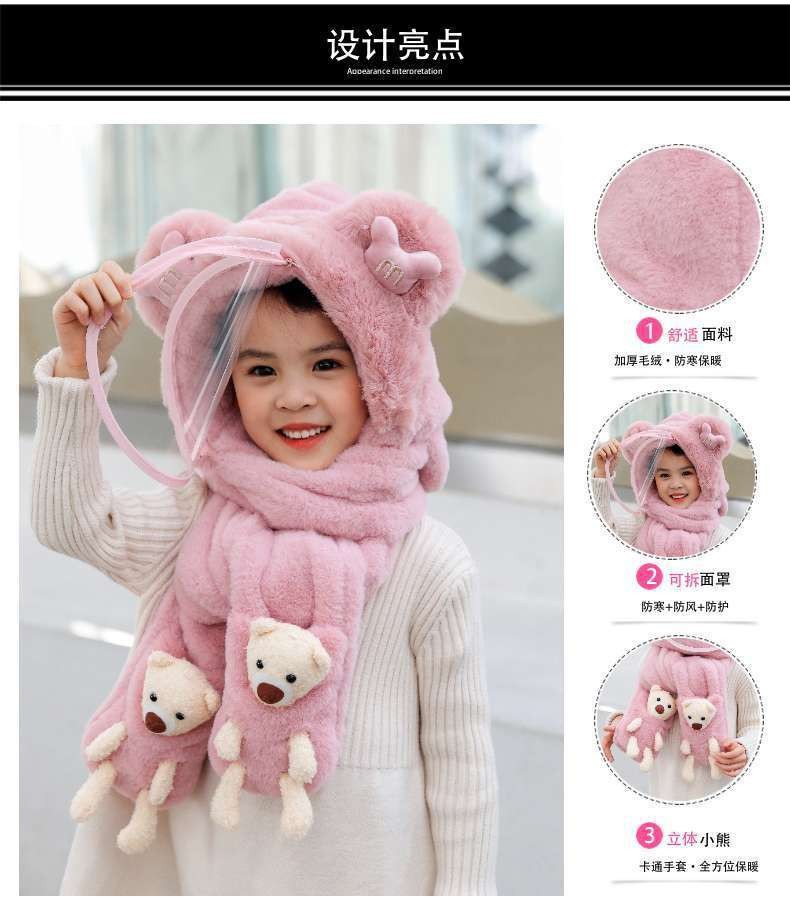 儿童帽子围巾手套一体女童2025小朋友冬季毛茸茸男童女孩三件套