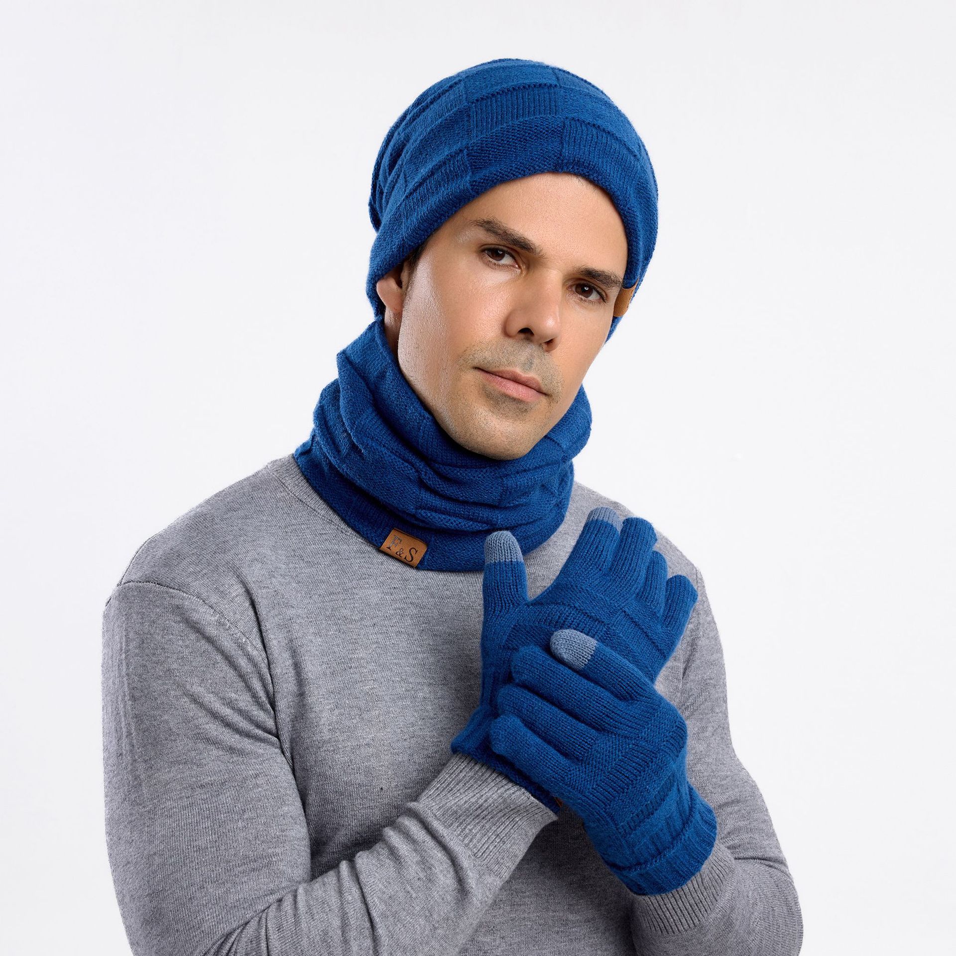 跨境欧美冬季帽子围脖手套防风加绒高弹力保暖秋冬针织帽三件套