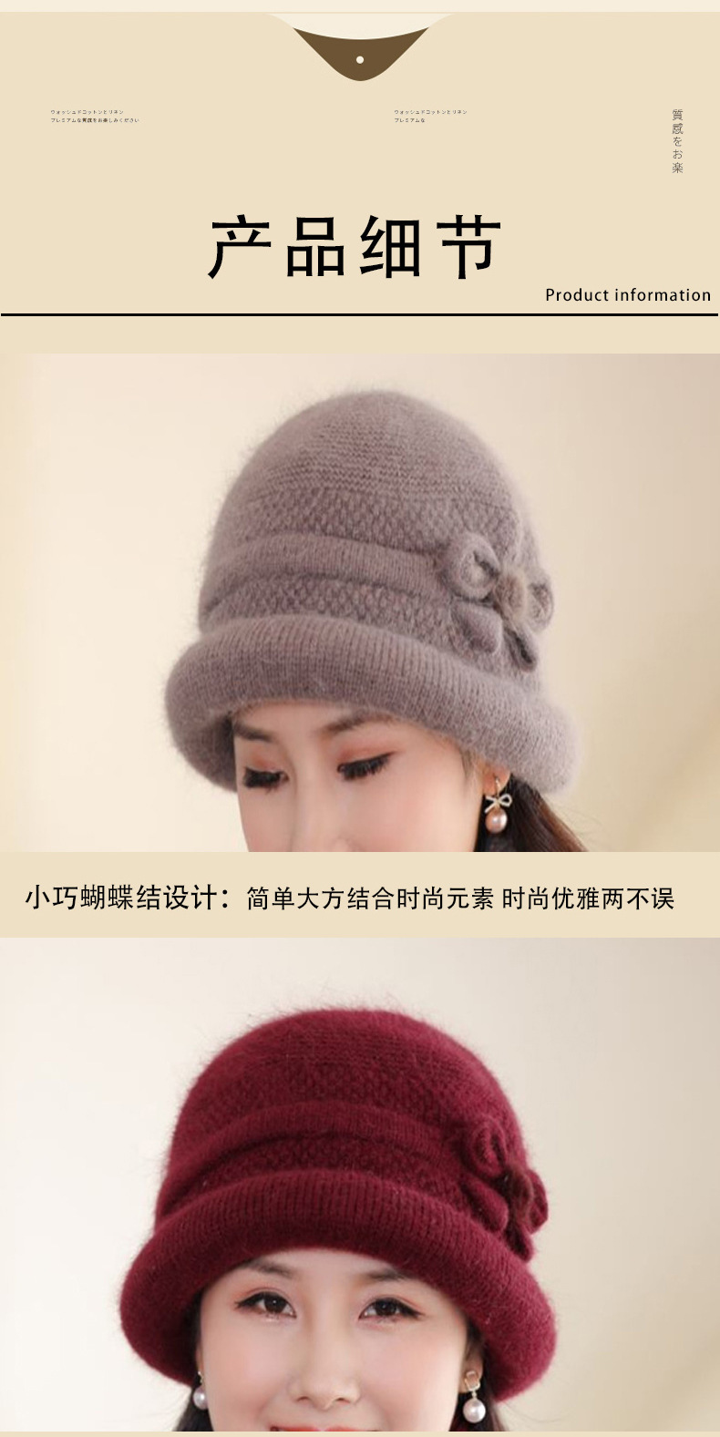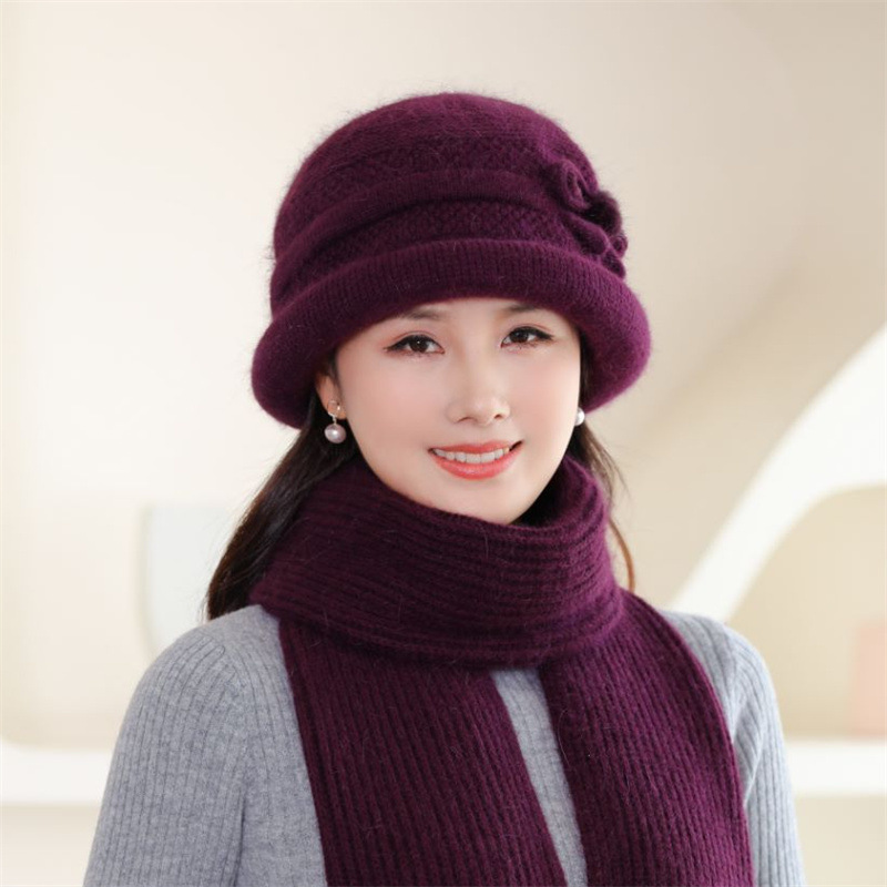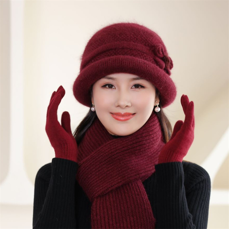 亚马逊加厚兔毛针织毛线帽女秋冬中老年奶奶妈妈百搭洋气护耳盆帽