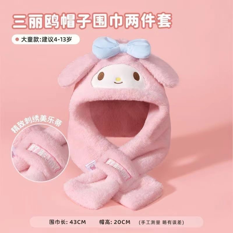 玉桂狗儿童帽子围巾一体帽冬季保暖手套三件套冬天正版三丽鸥耳罩