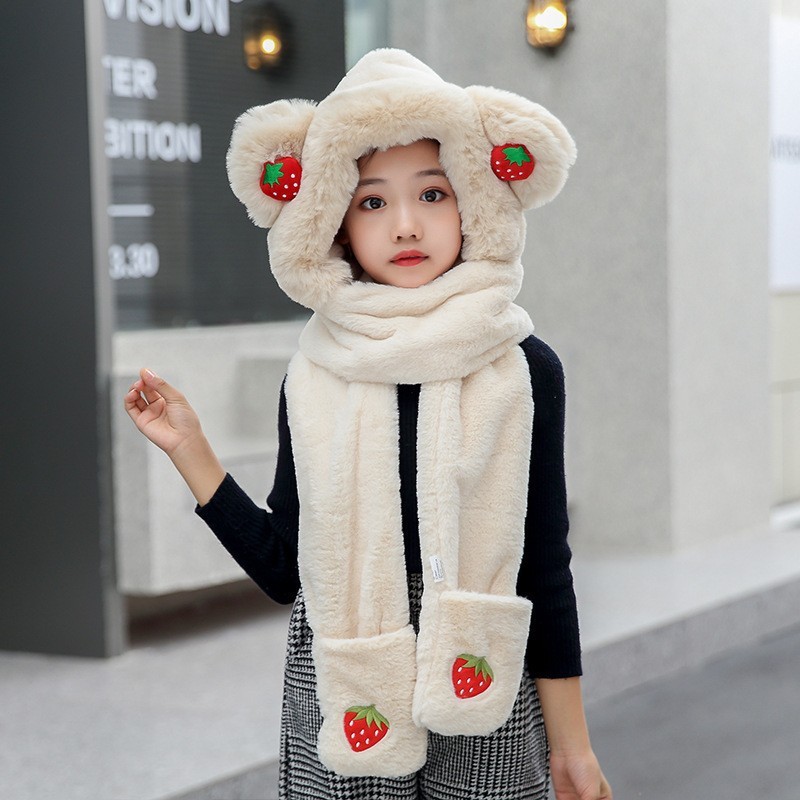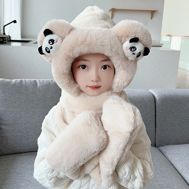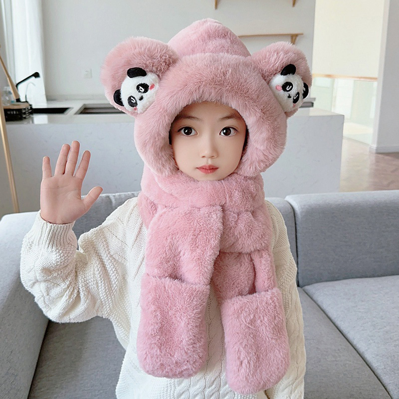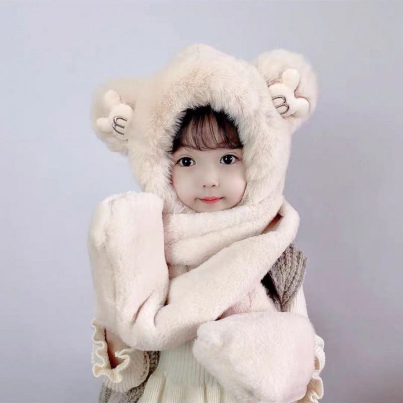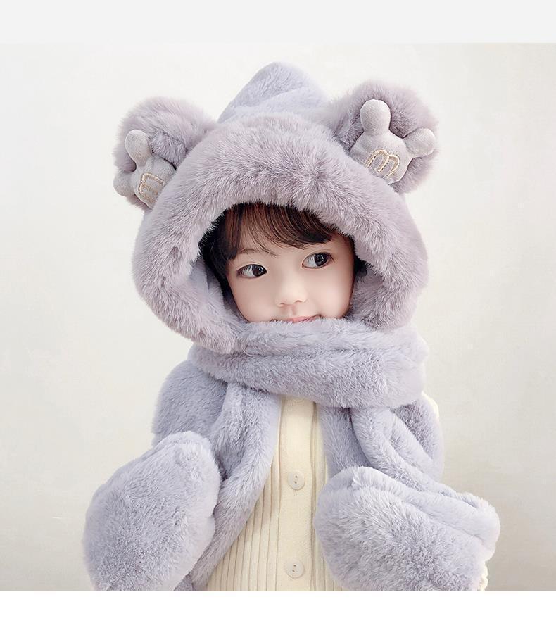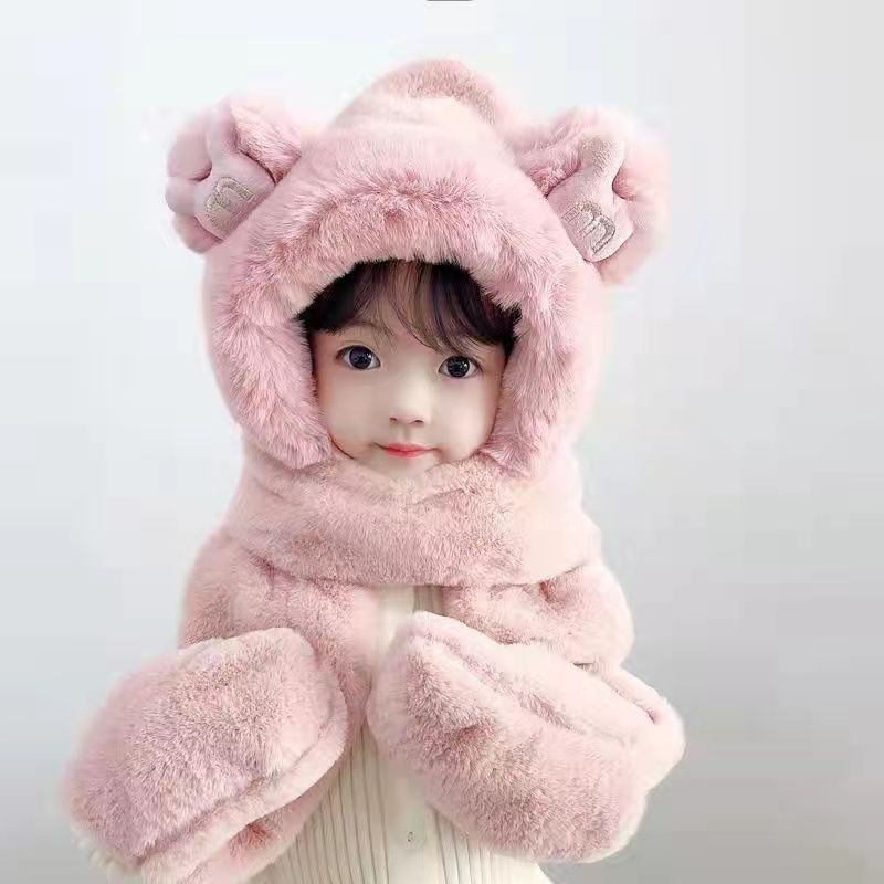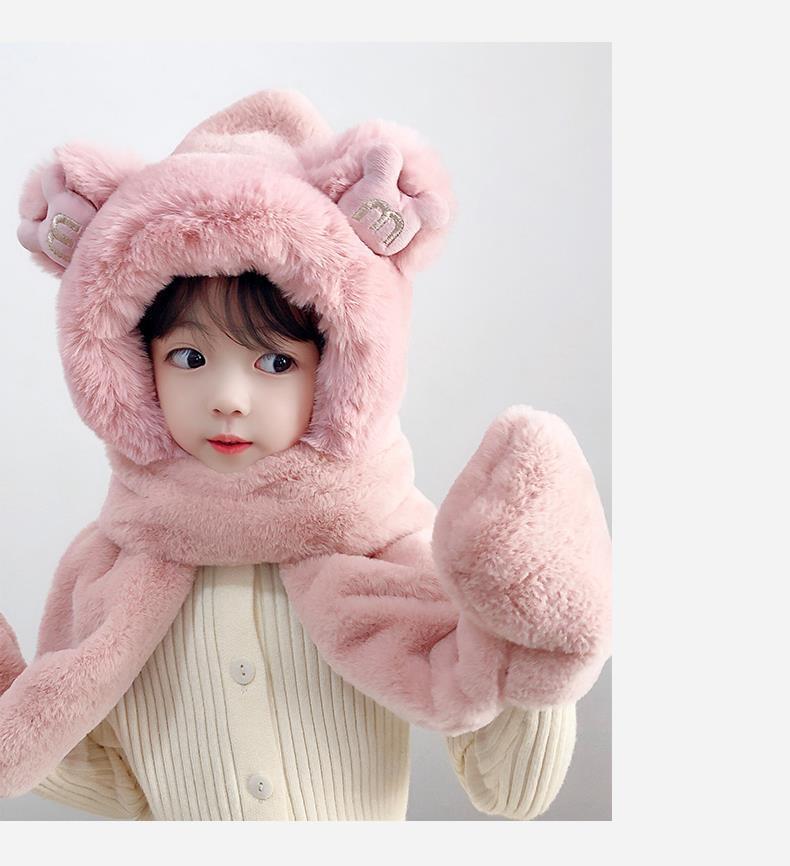 儿童帽子围巾手套一体秋冬季男女童宝宝毛绒三件套加厚保暖护耳帽