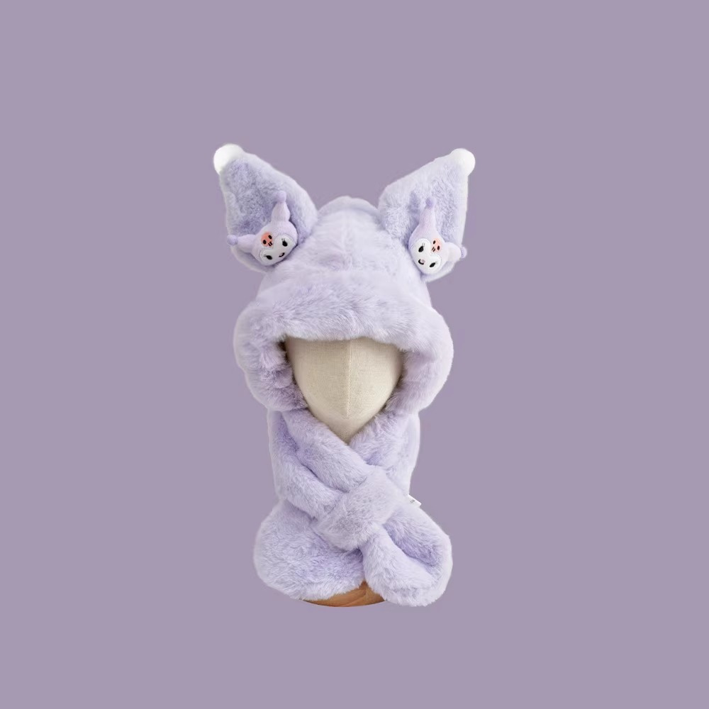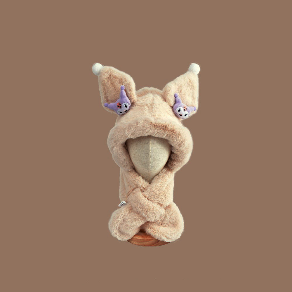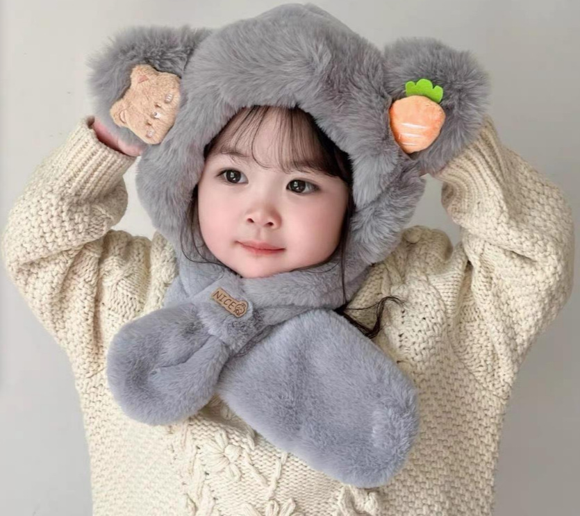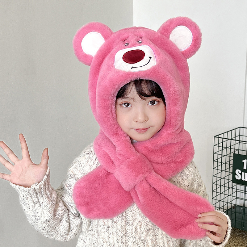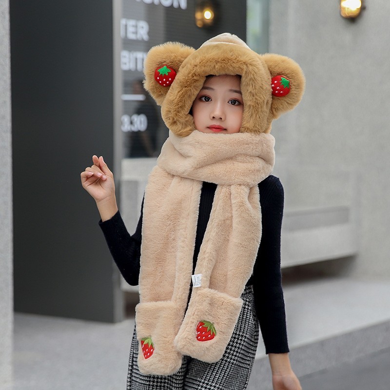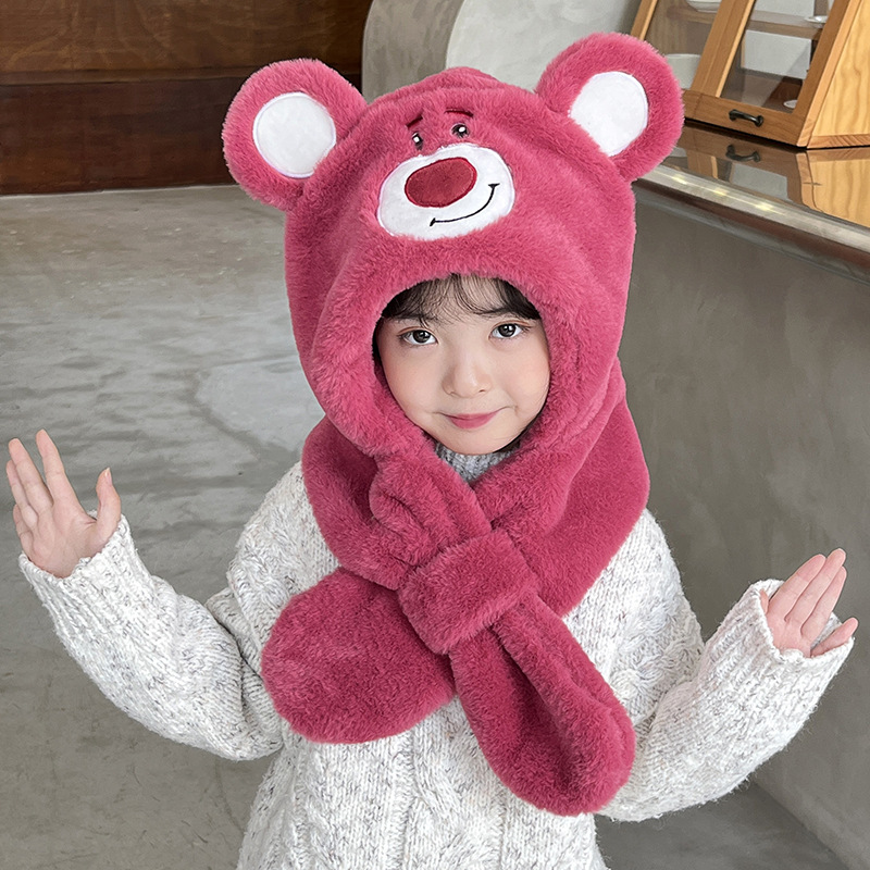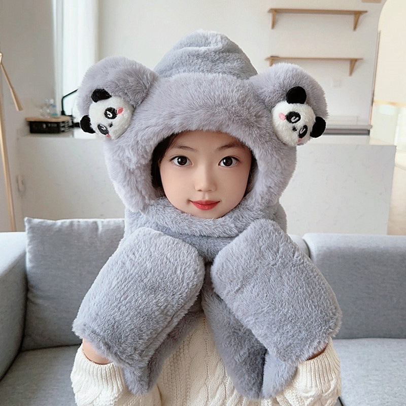 儿童帽子围巾手套一体秋冬季男女童宝宝毛绒三件套加厚保暖护耳帽