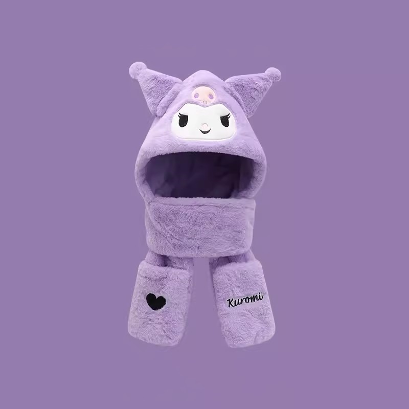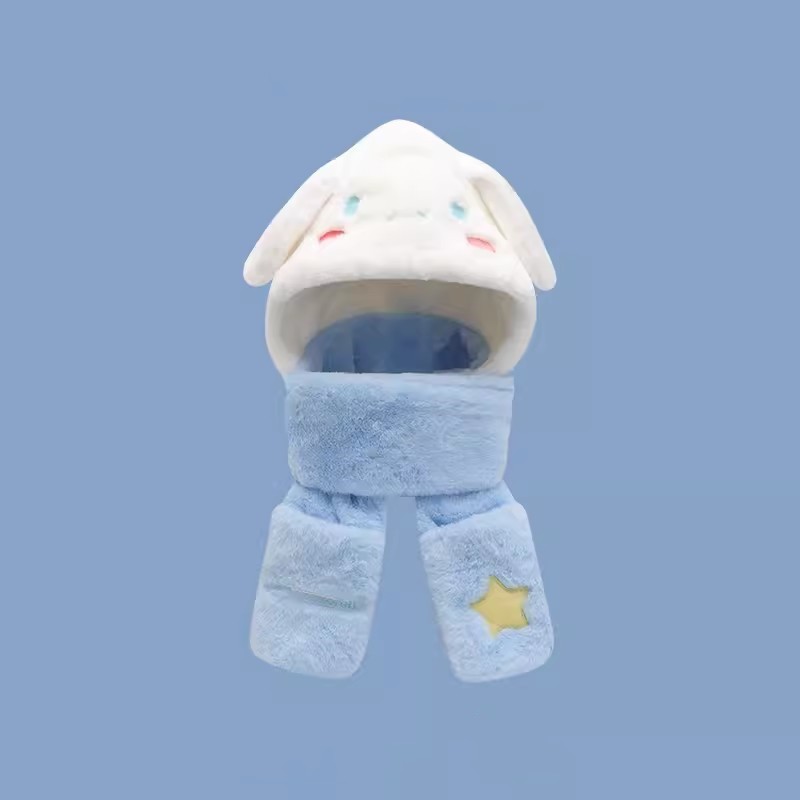儿童帽子围巾一体冬季保暖男童女童毛绒美乐蒂护耳帽手套2024新款