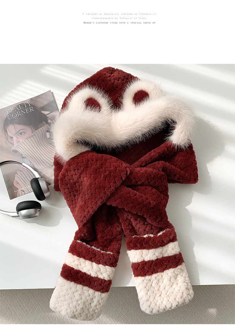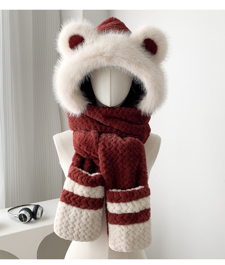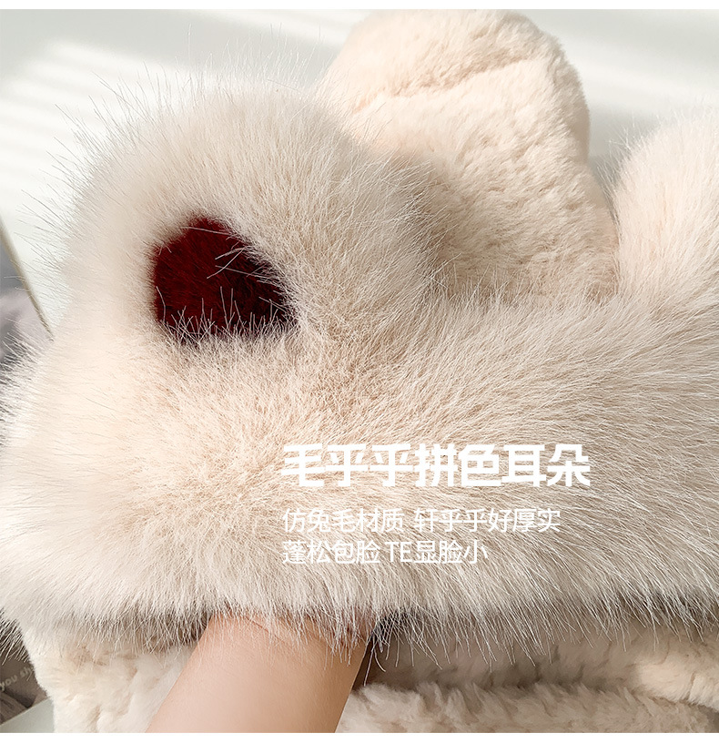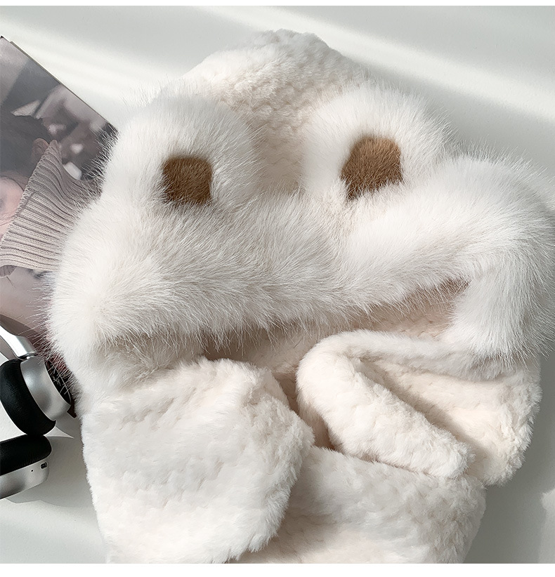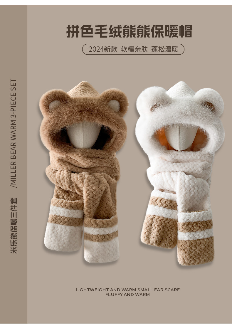 安哥拉小熊帽加厚耳朵毛绒帽子女秋冬帽子围脖一体学生保暖防护耳