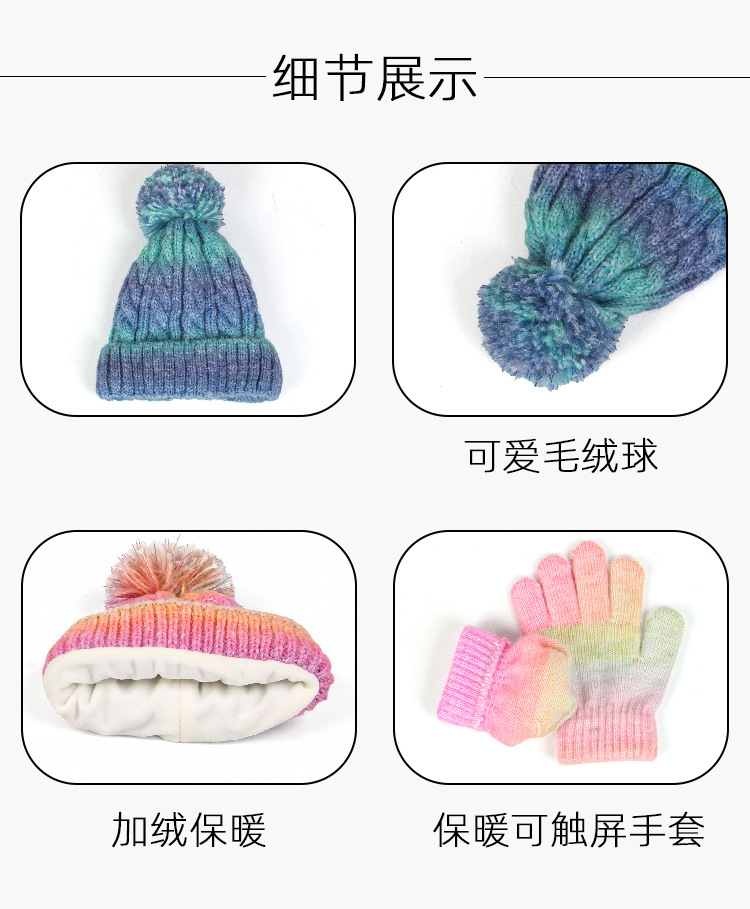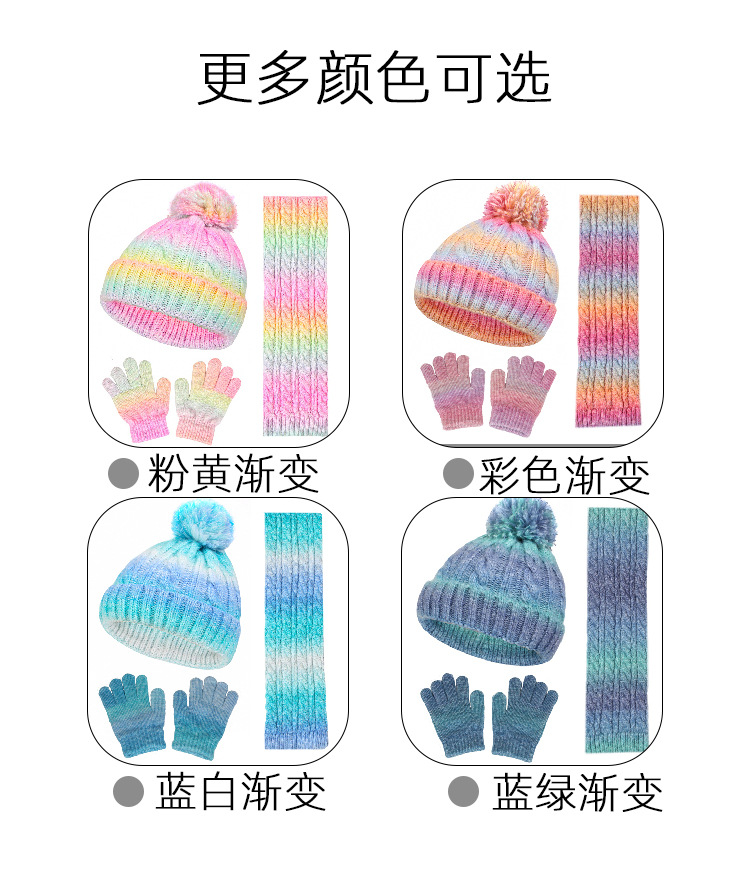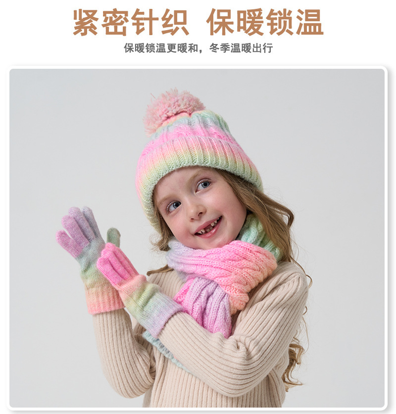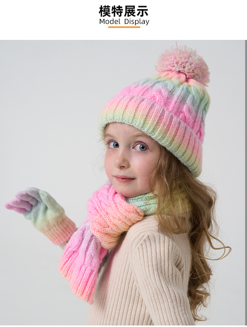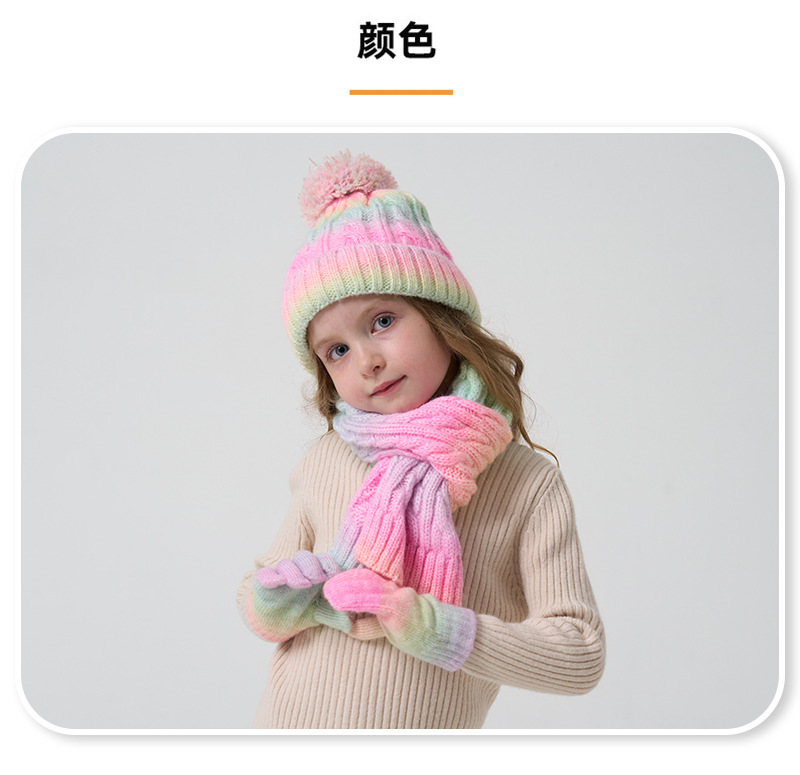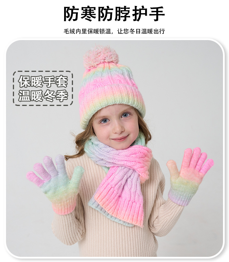 跨境新款欧美儿童帽子围巾手套三件套秋冬加绒加厚单球宝宝帽子