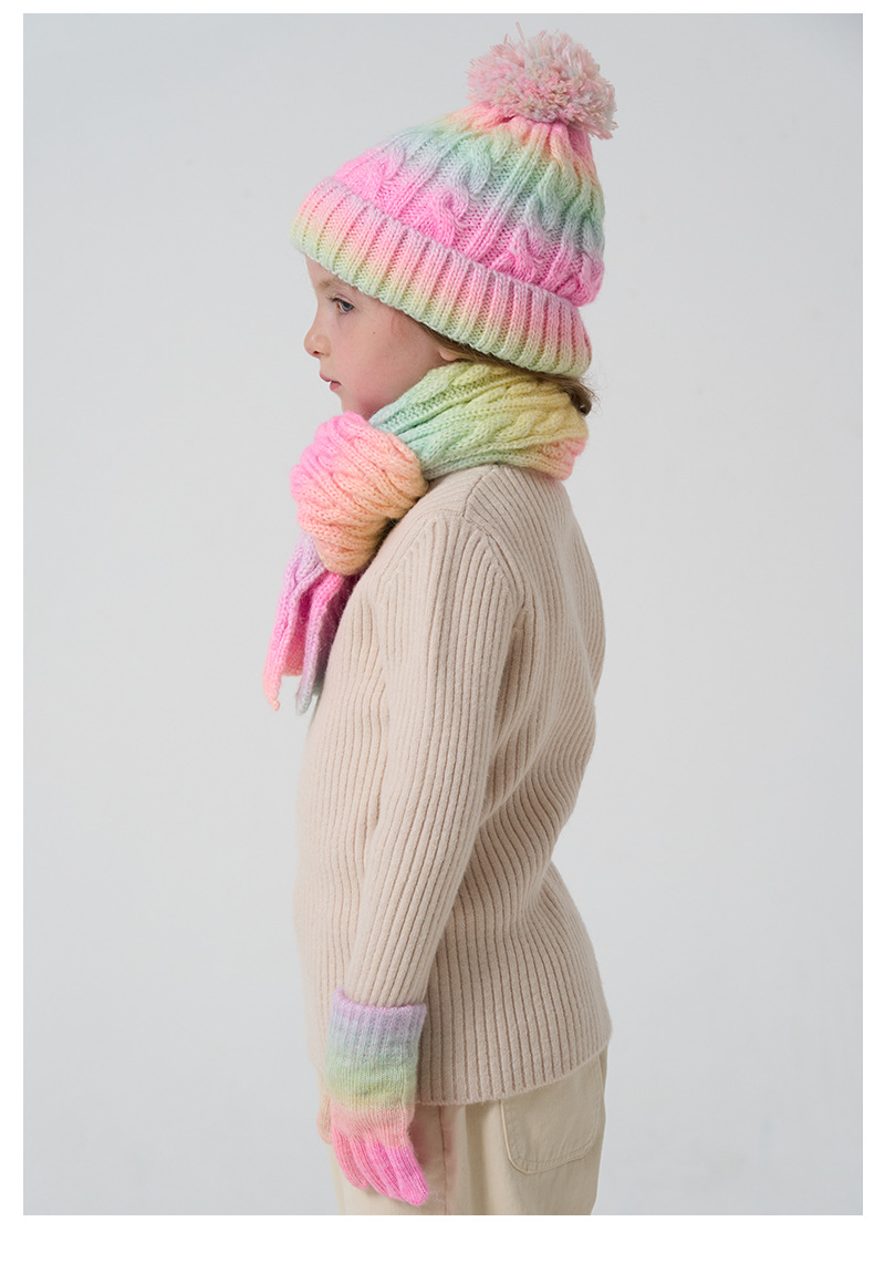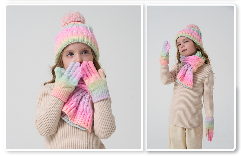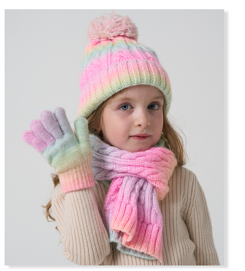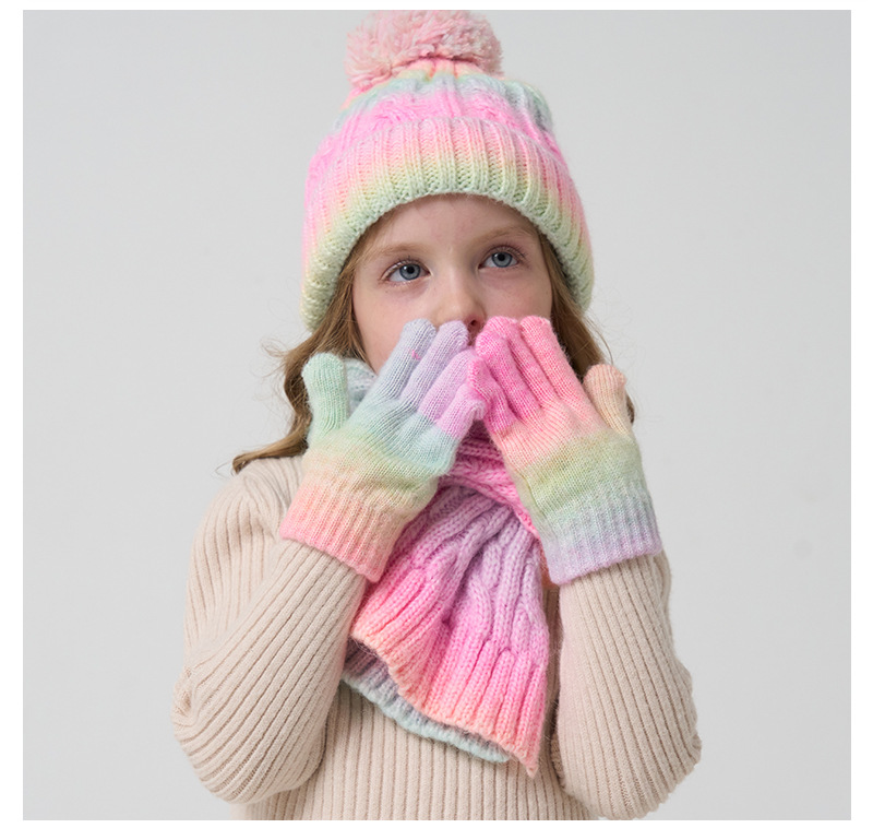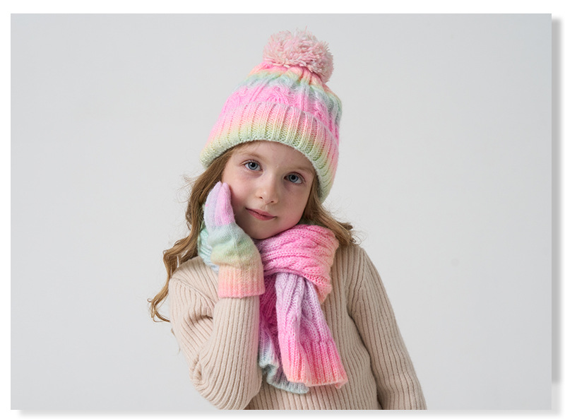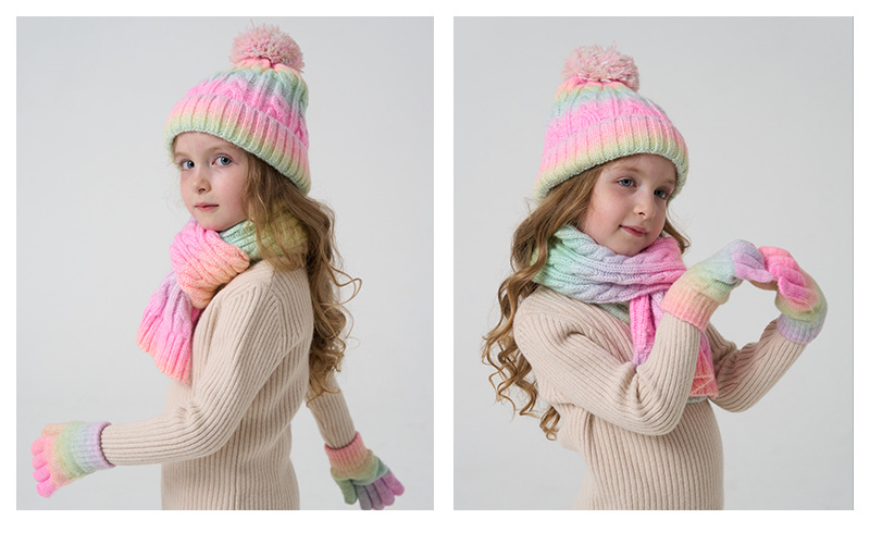 跨境新款欧美儿童帽子围巾手套三件套秋冬加绒加厚单球宝宝帽子