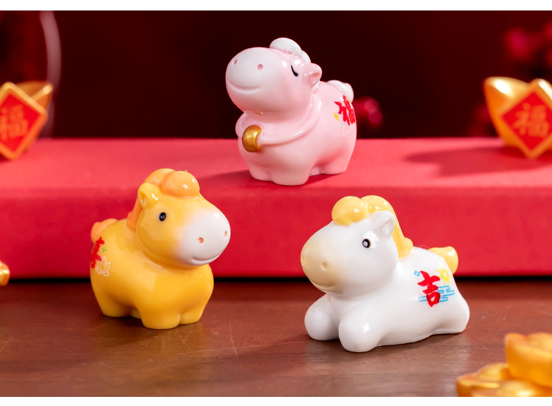 新年可爱五彩小马公仔萌粒 娃屋diy装饰品配件迷你车载桌面小摆件