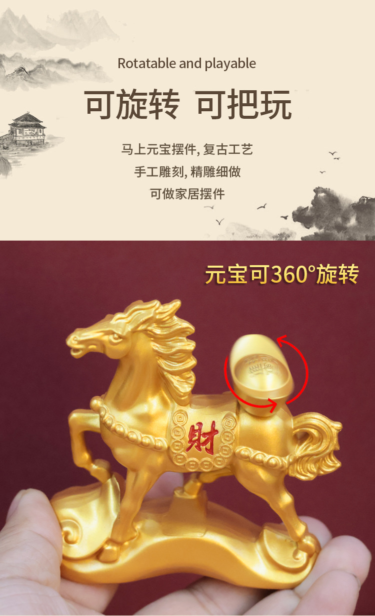 发财元宝生肖马摆件动物家居客厅摆件如意金钱跃马摆设工艺品