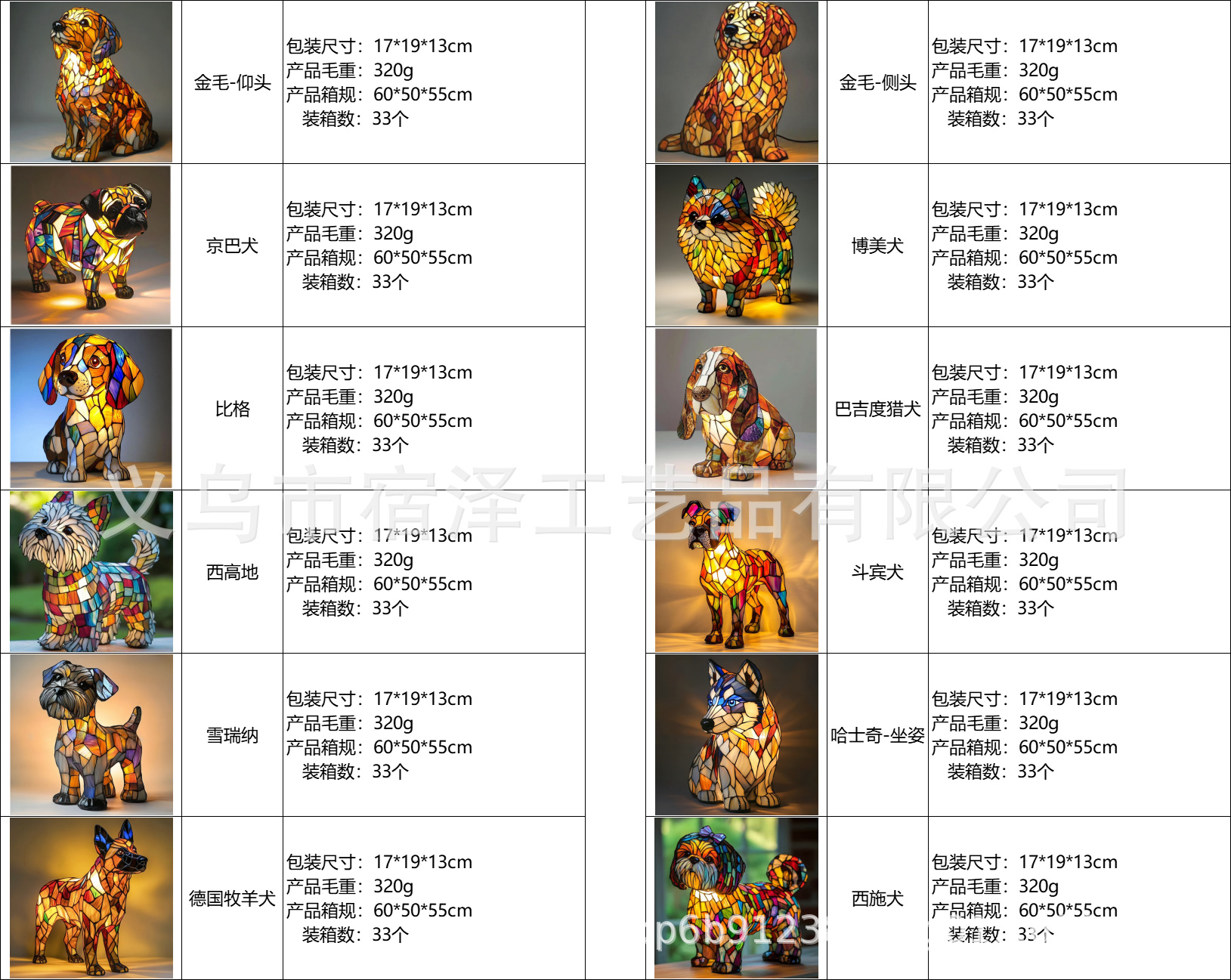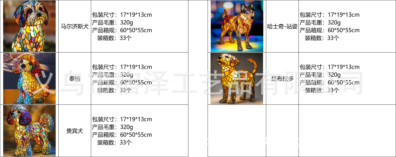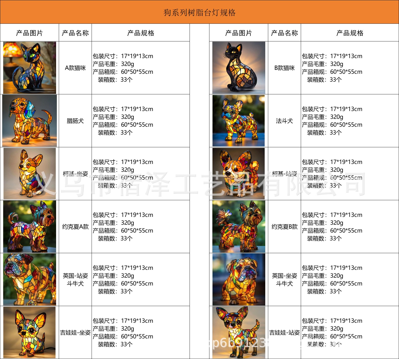 跨境新款幻彩奇异狗系列雕像 LED小夜灯家居桌面装饰品树脂摆件