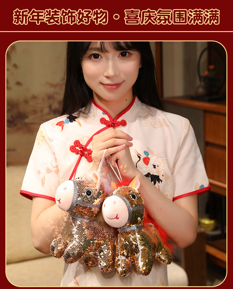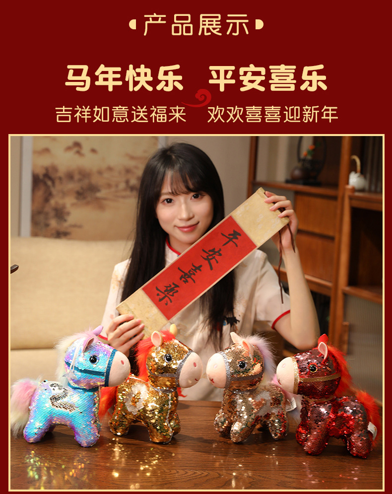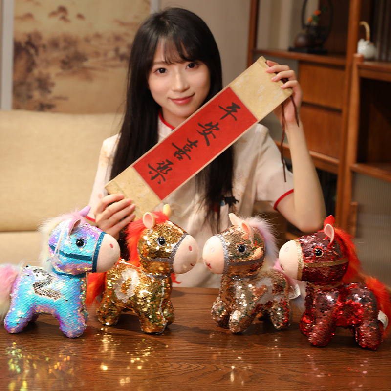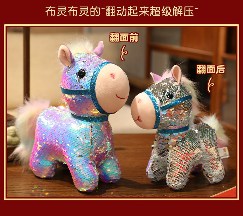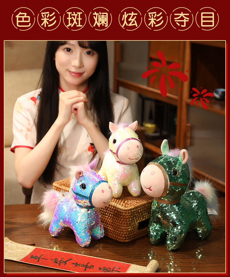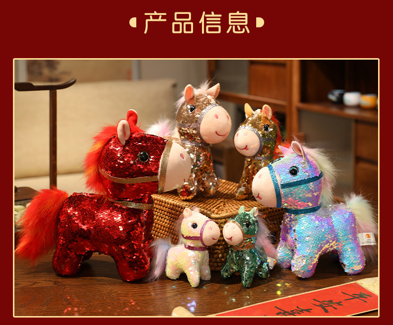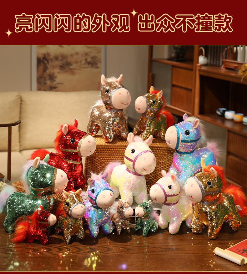小马玩偶毛绒玩具公仔幻彩亮片马仿真马年吉祥物客厅摆件新年礼物