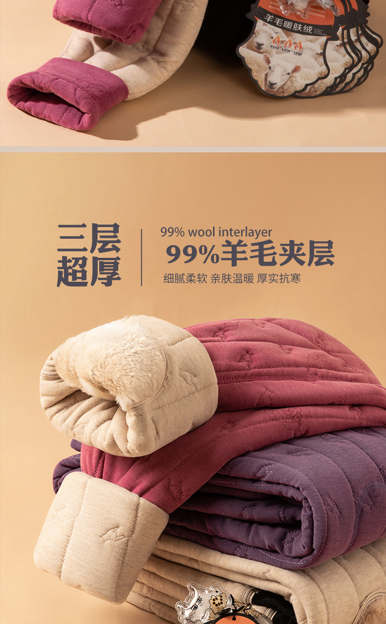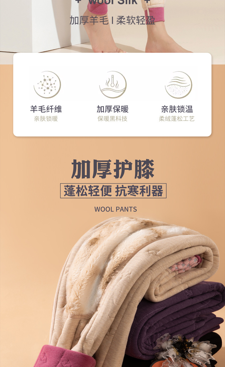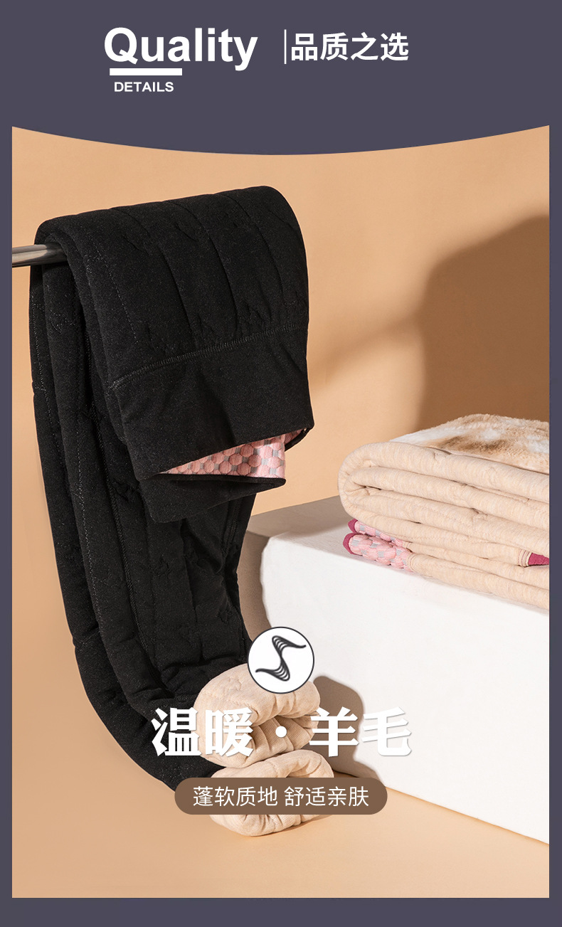 女士保暖裤冬季三层加厚羊毛夹层防寒棉裤女高腰特厚大码打底线裤