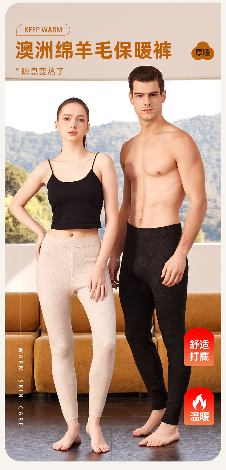 100%纯羊毛打底裤加厚中年男士羊毛裤秋冬季女款内穿保暖裤批发