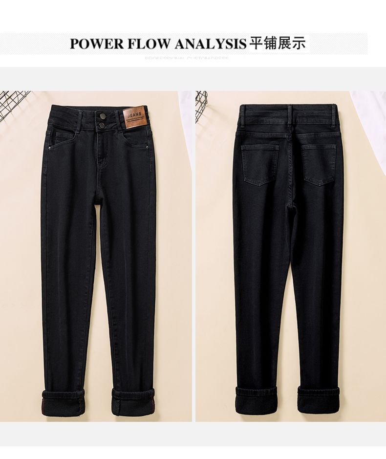 薄绒小脚牛仔裤女冬季新款高腰加绒保暖黑色铅笔弹力紧身裤子