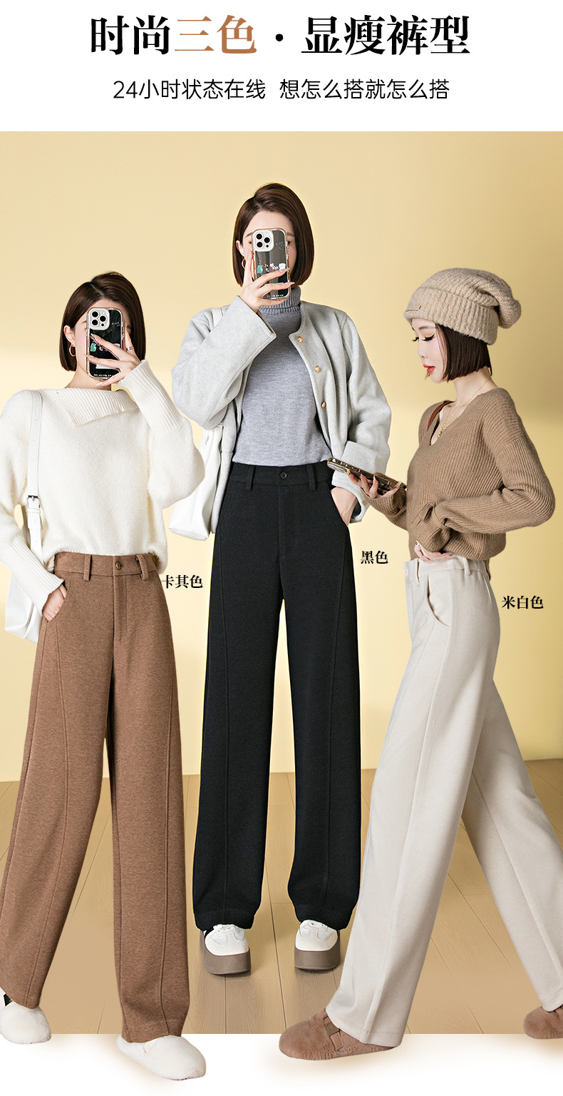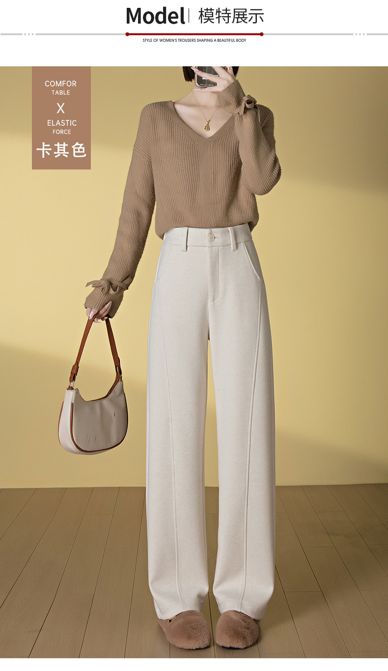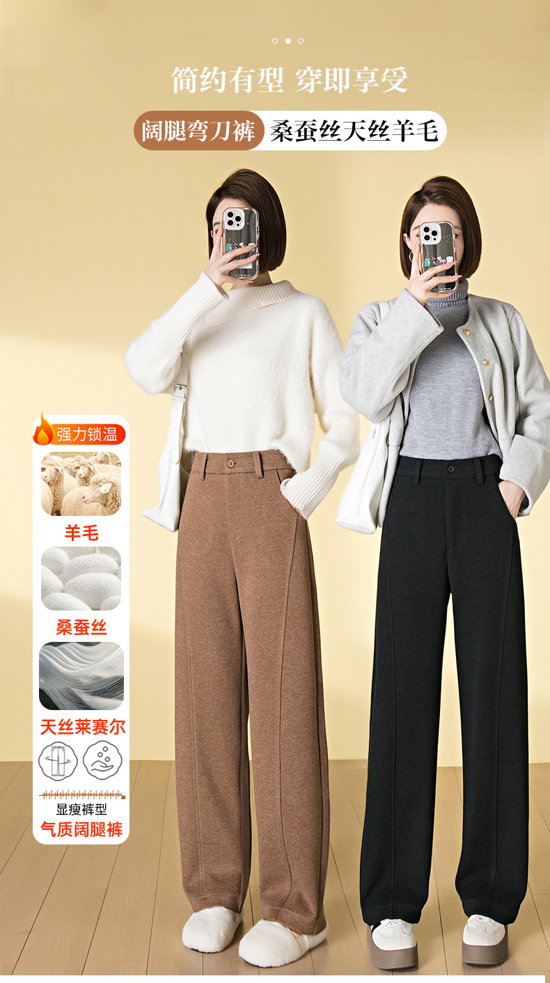 桑蚕丝羊毛呢弯刀裤女秋冬厚款美拉德色系显瘦休闲天丝窄版阔腿裤
