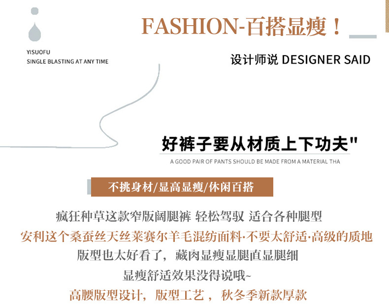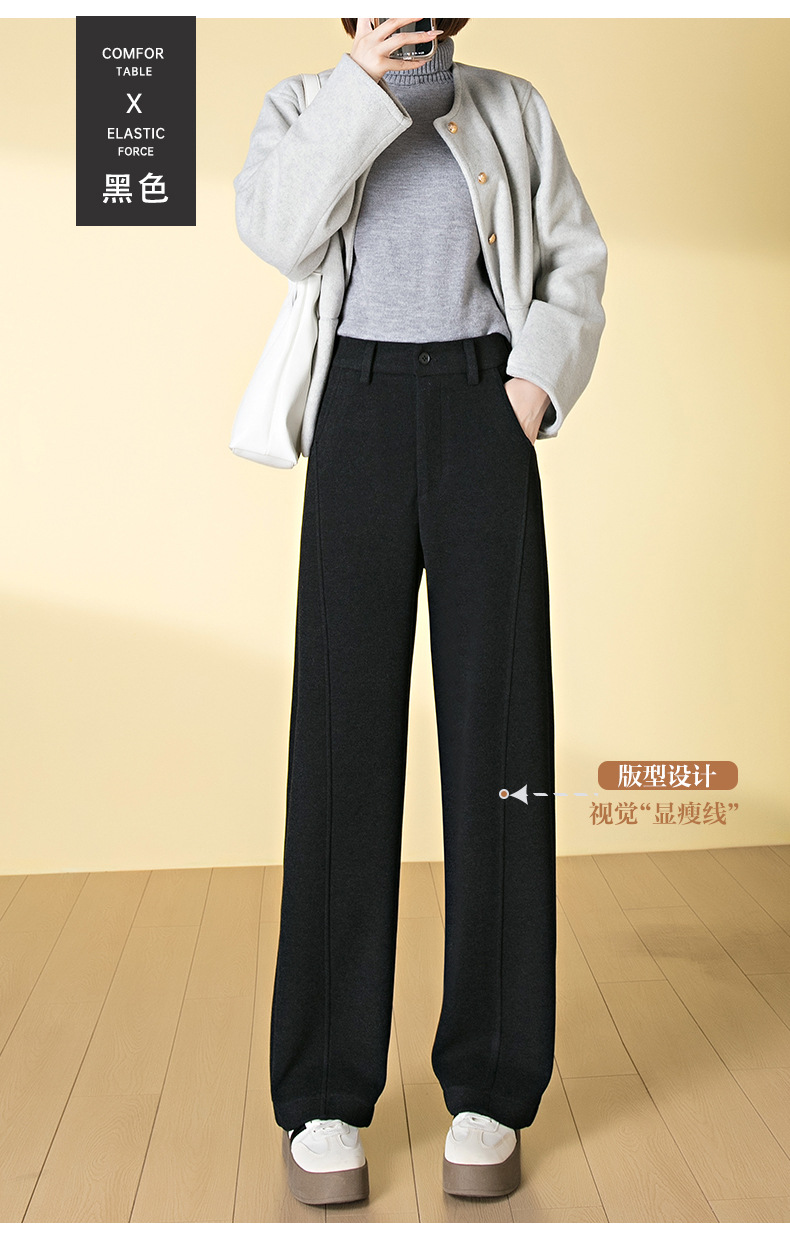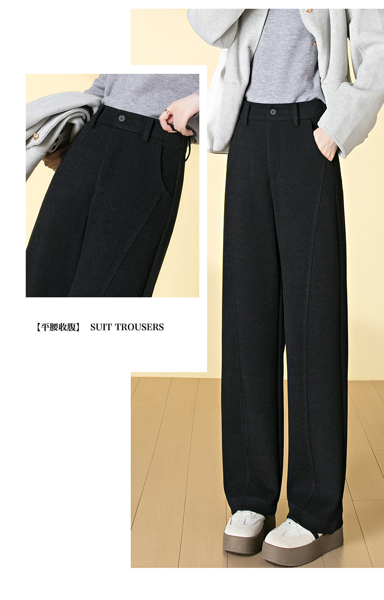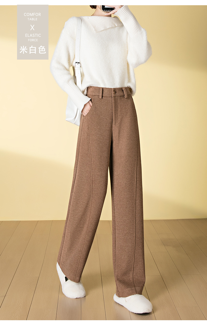 桑蚕丝羊毛呢弯刀裤女秋冬厚款美拉德色系显瘦休闲天丝窄版阔腿裤