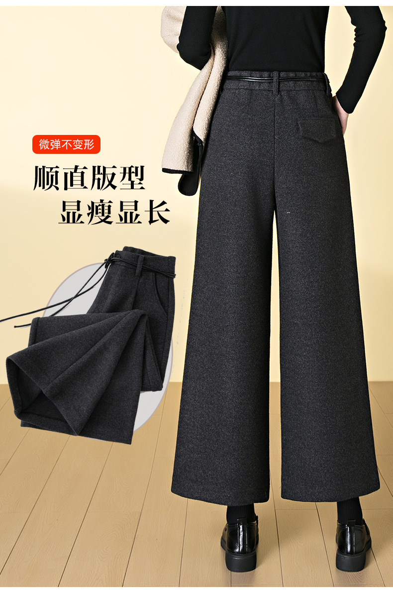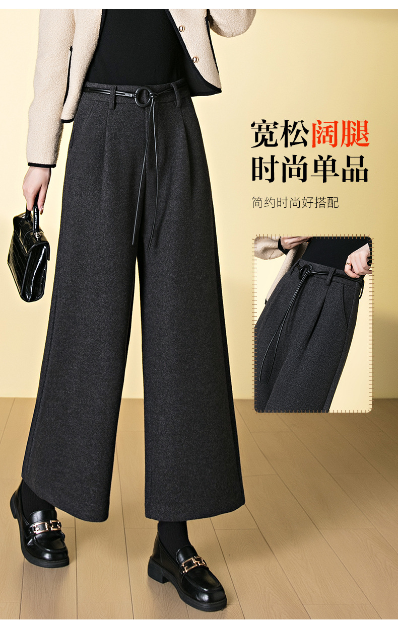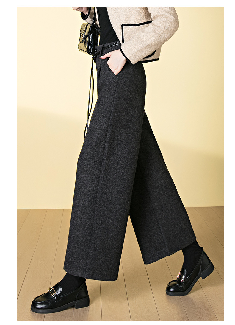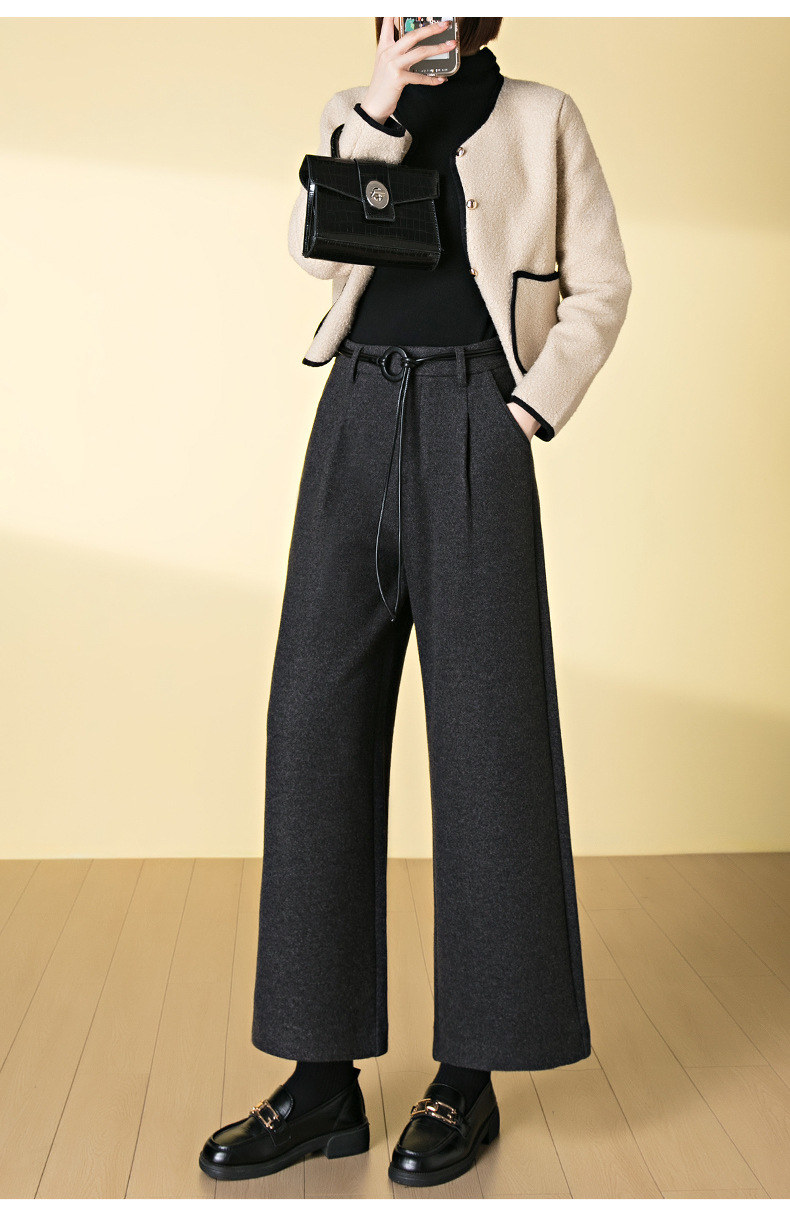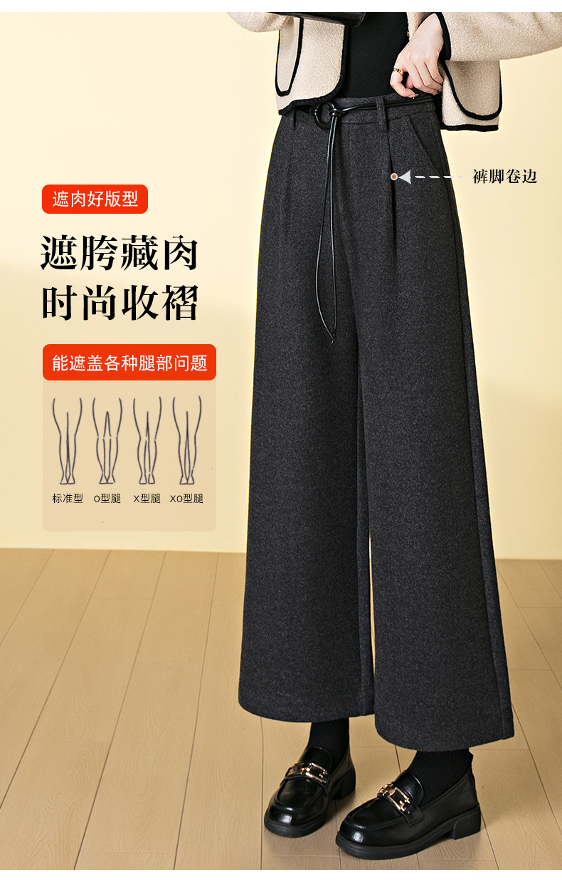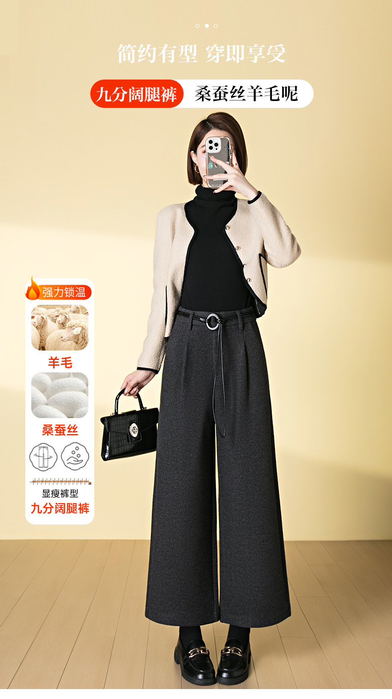 桑蚕丝羊毛呢休闲阔腿裤女2025秋冬季新款高腰小个子加厚九分裤子
