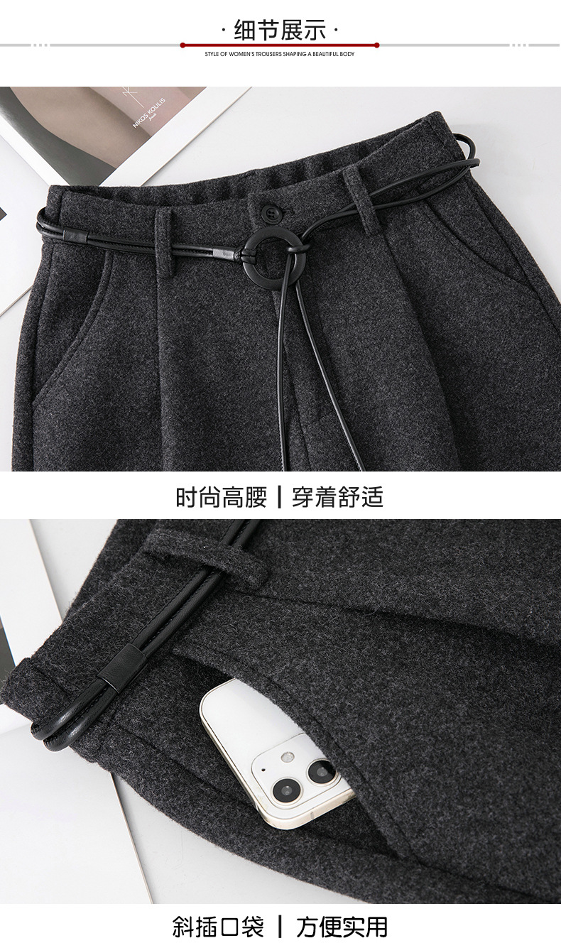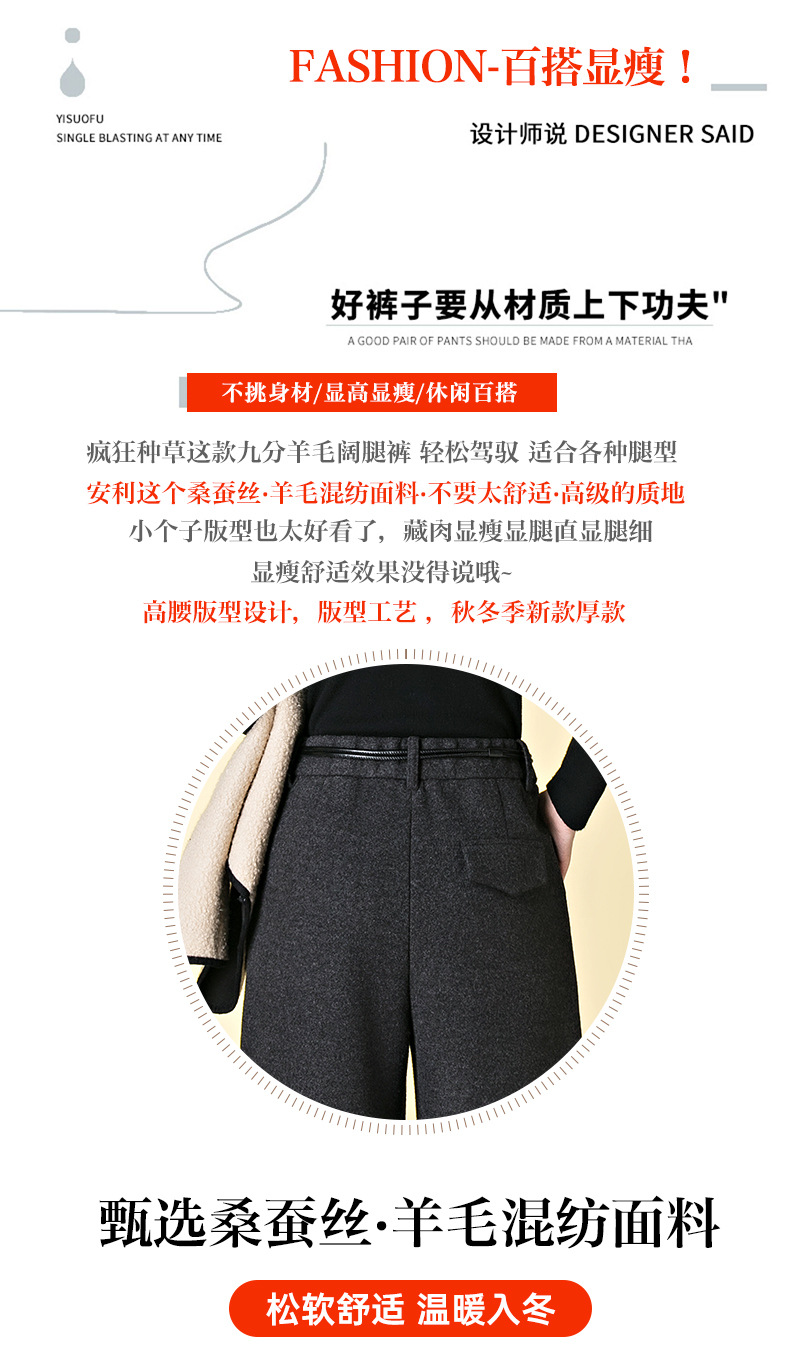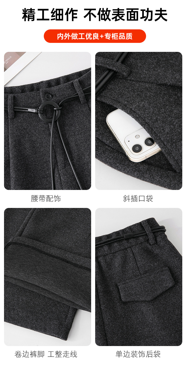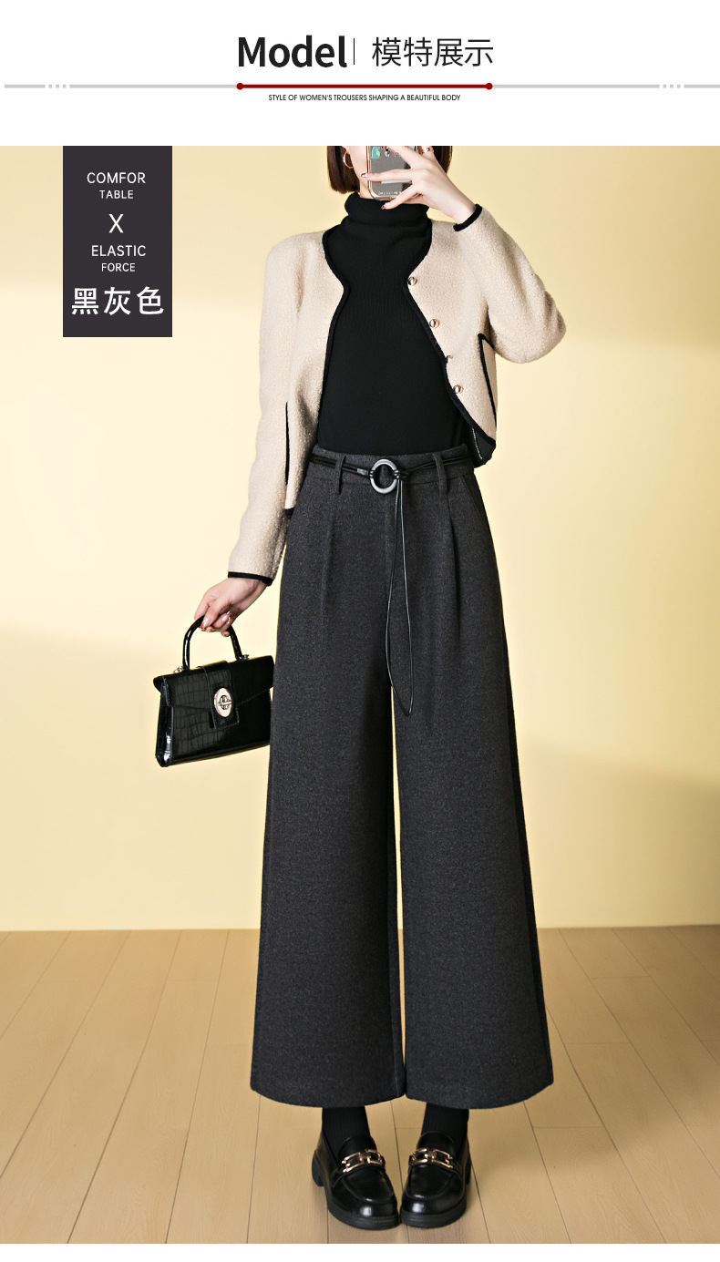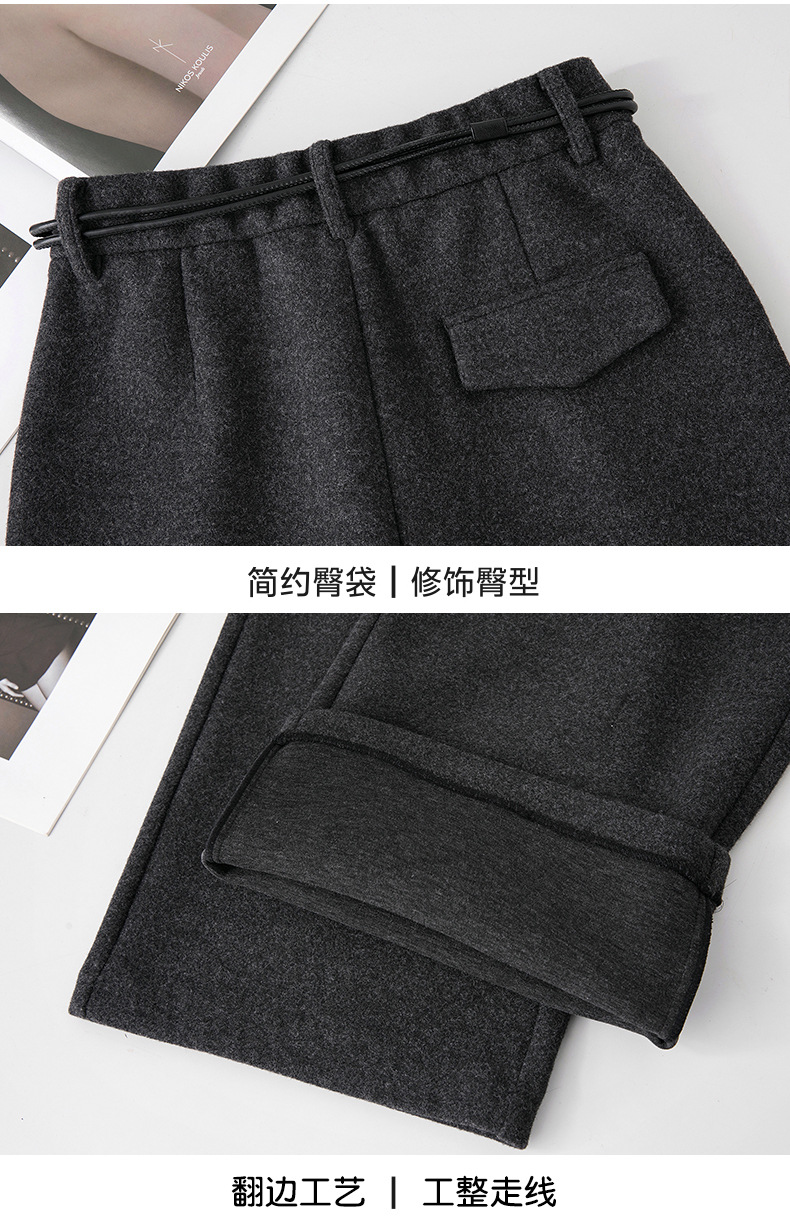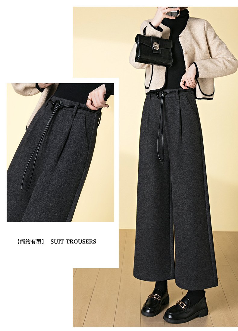 桑蚕丝羊毛呢休闲阔腿裤女2025秋冬季新款高腰小个子加厚九分裤子