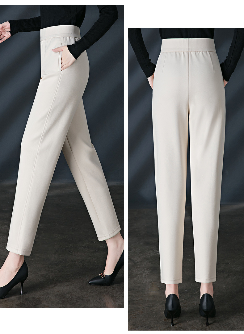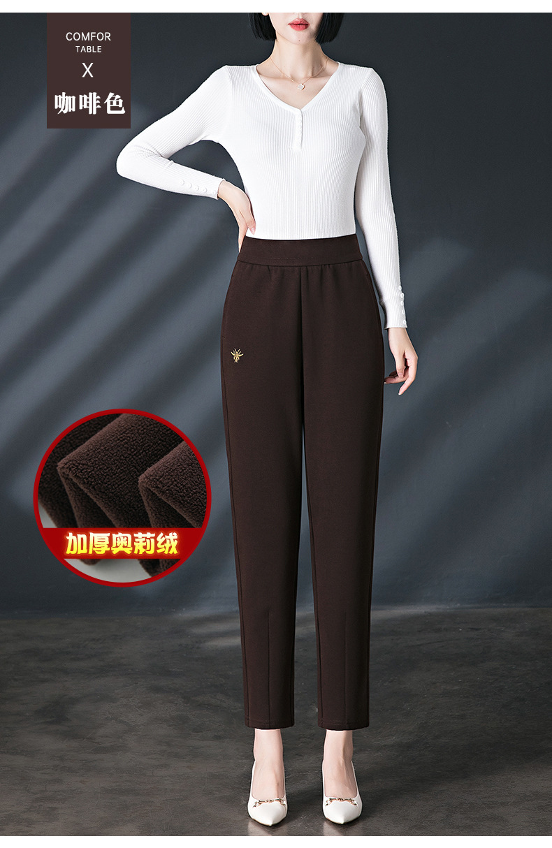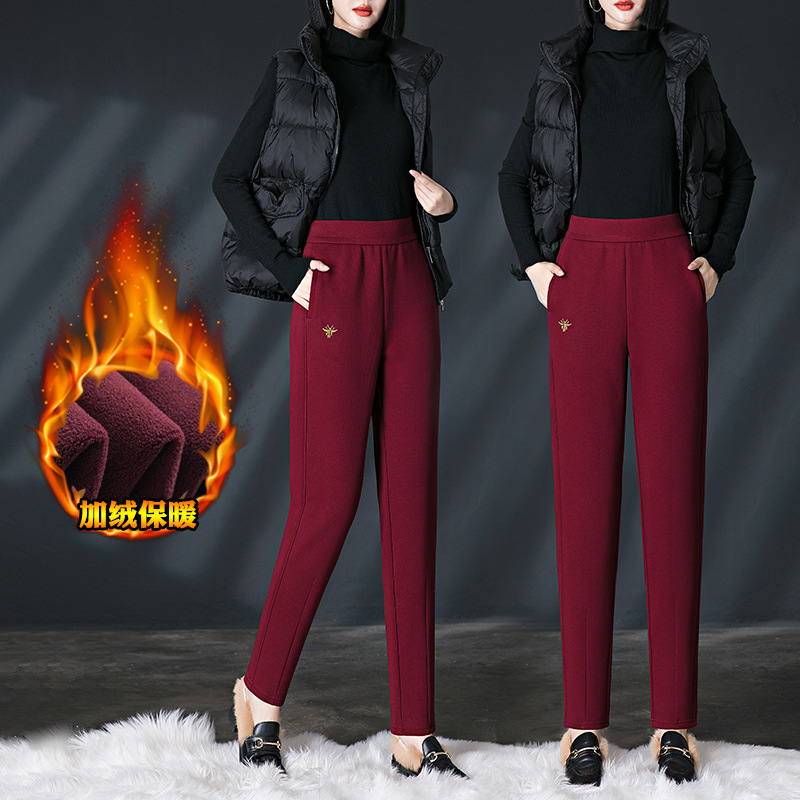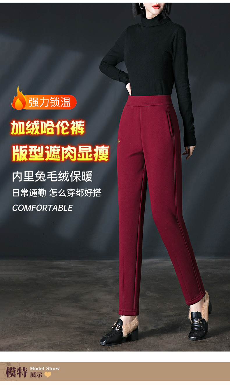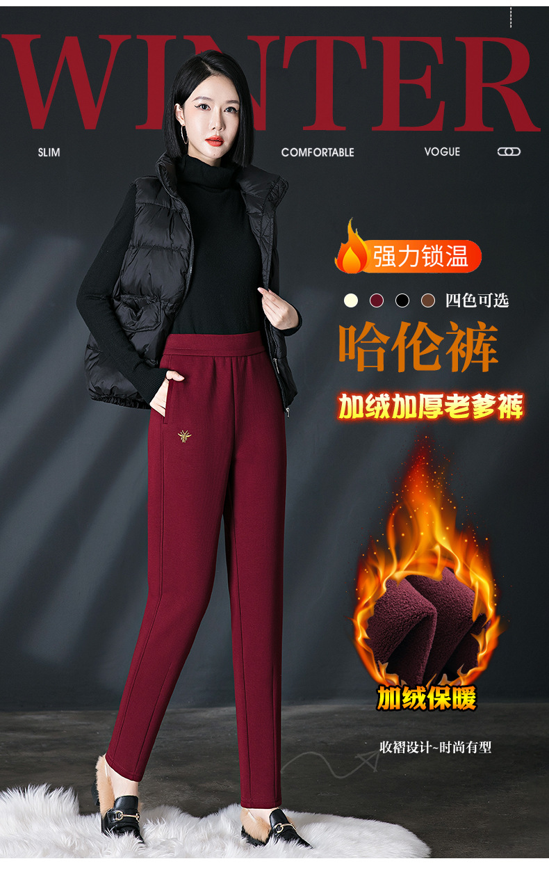 加绒加厚休闲裤女哈伦裤冬季新款松紧腰高腰宽松中年妈妈长裤子