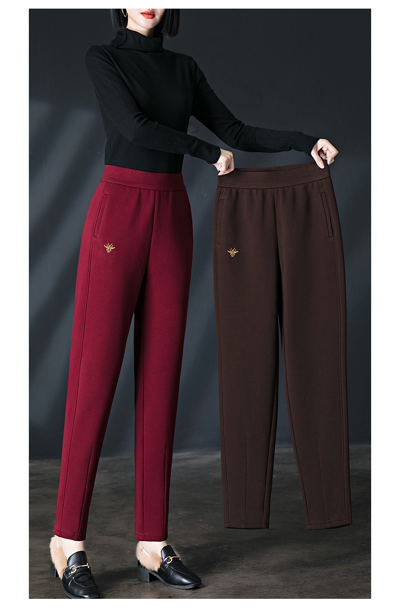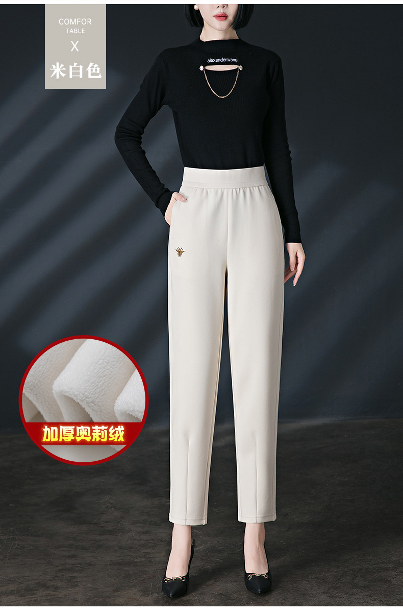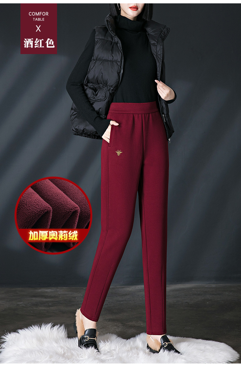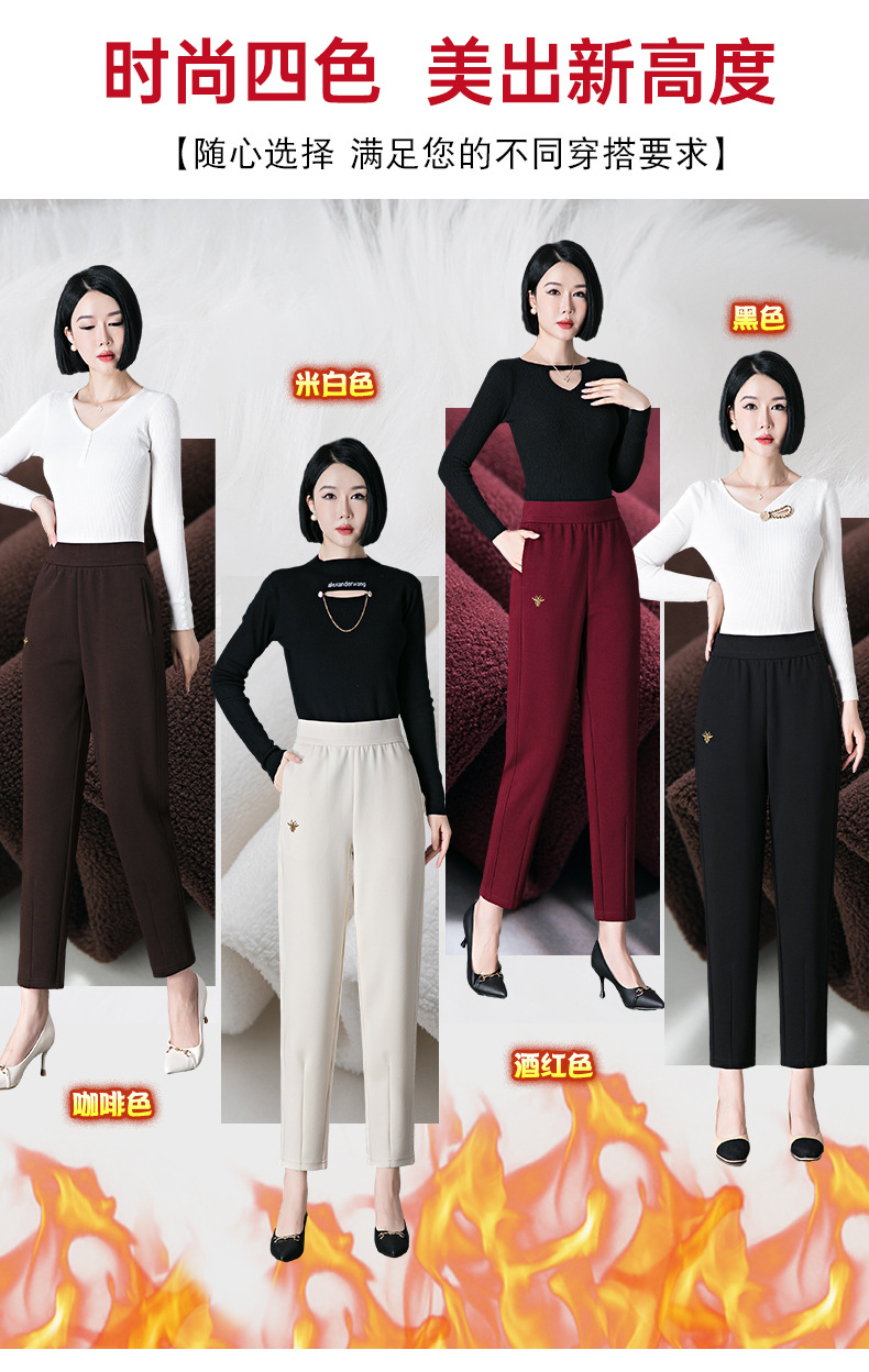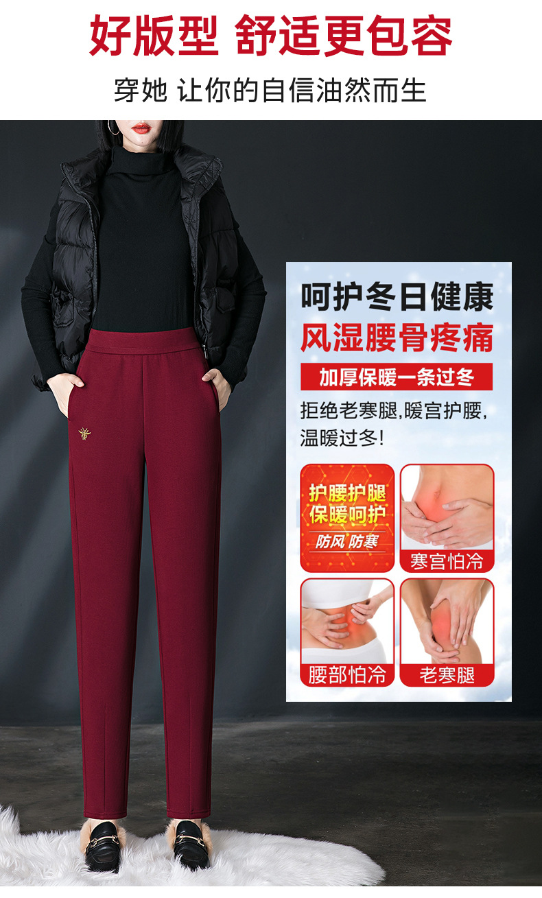 加绒加厚休闲裤女哈伦裤冬季新款松紧腰高腰宽松中年妈妈长裤子