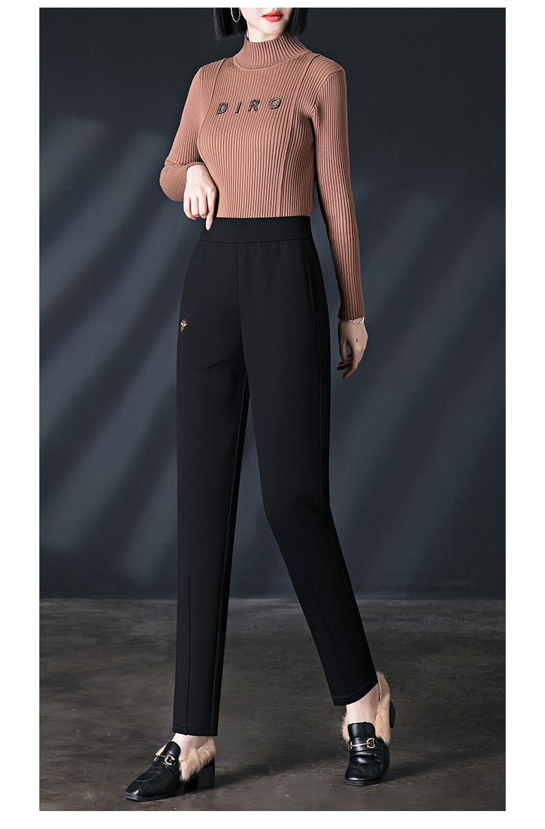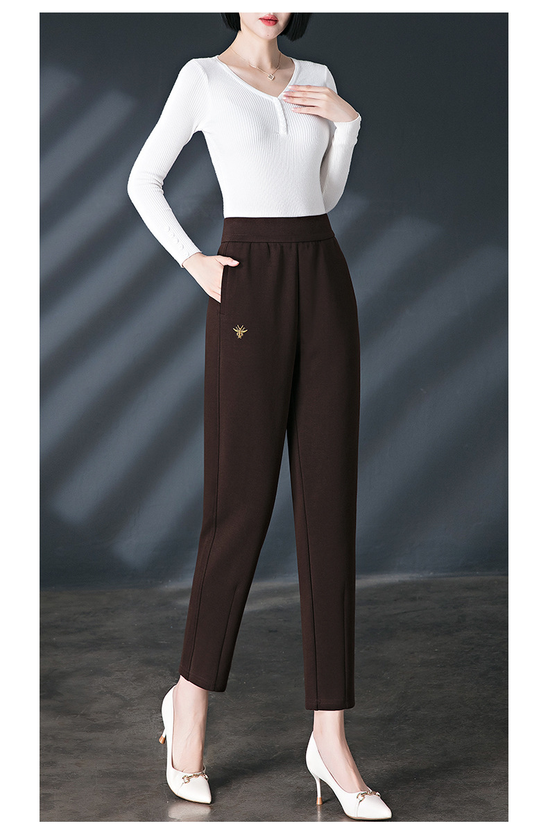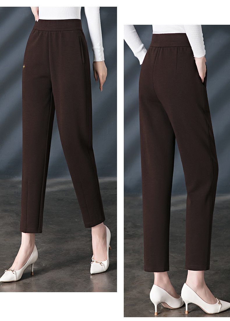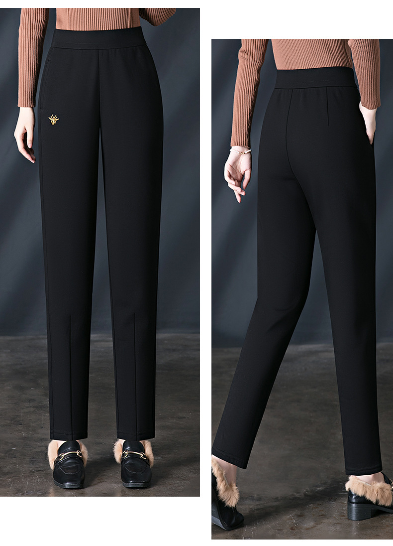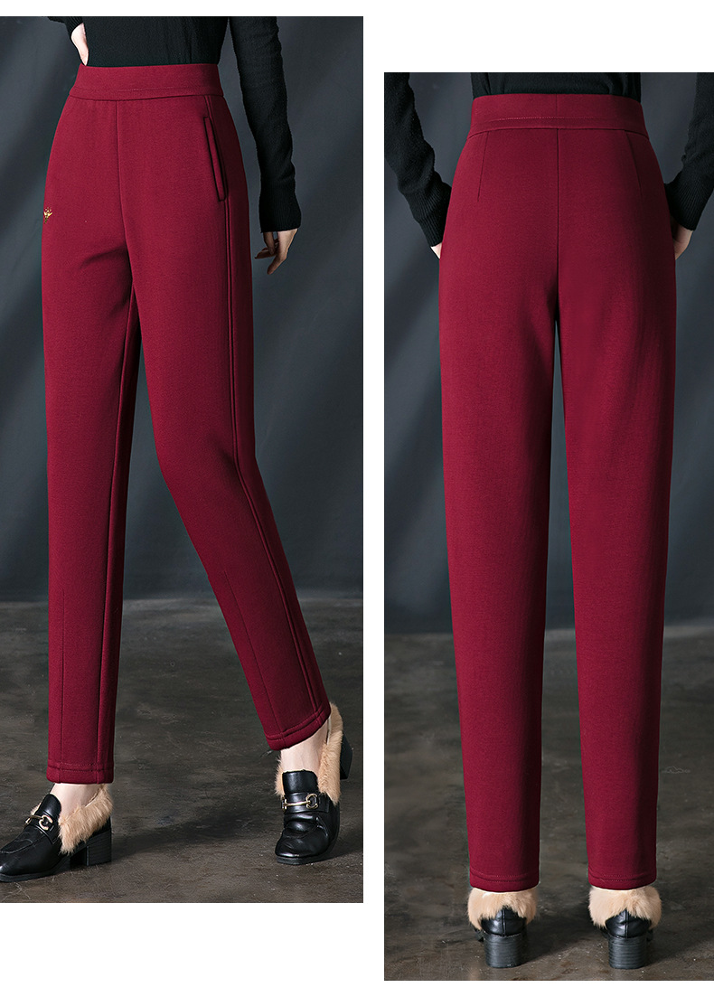 加绒加厚休闲裤女哈伦裤冬季新款松紧腰高腰宽松中年妈妈长裤子