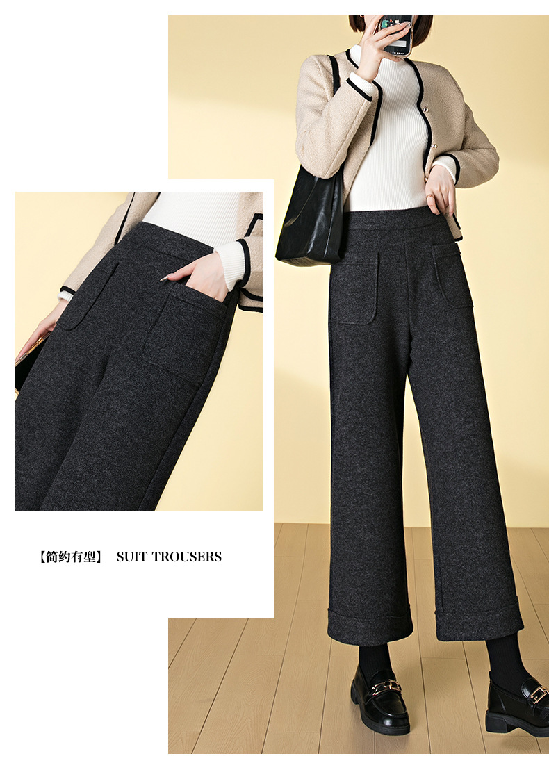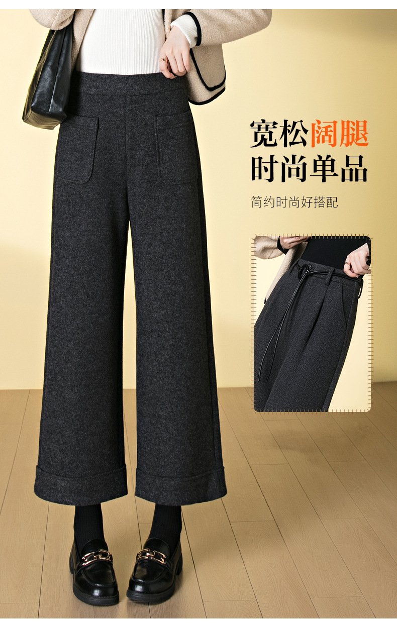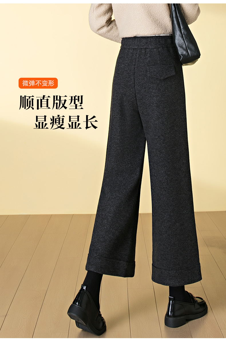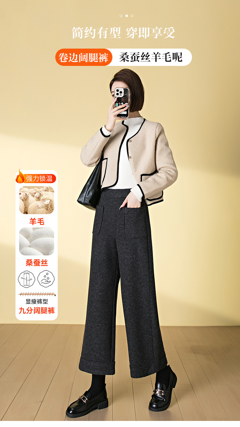 小个子桑蚕丝羊毛呢九分阔腿裤女2025秋冬高腰加厚宽松休闲直筒裤