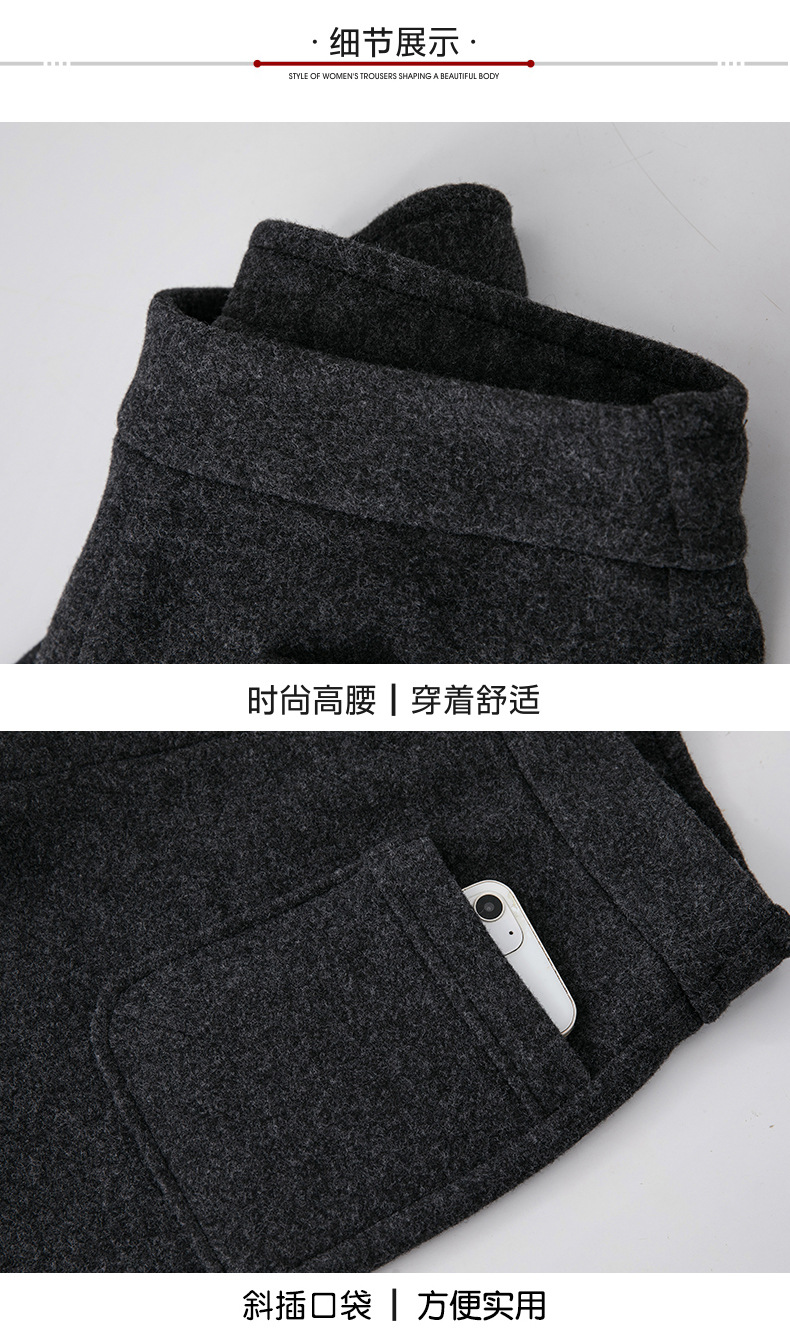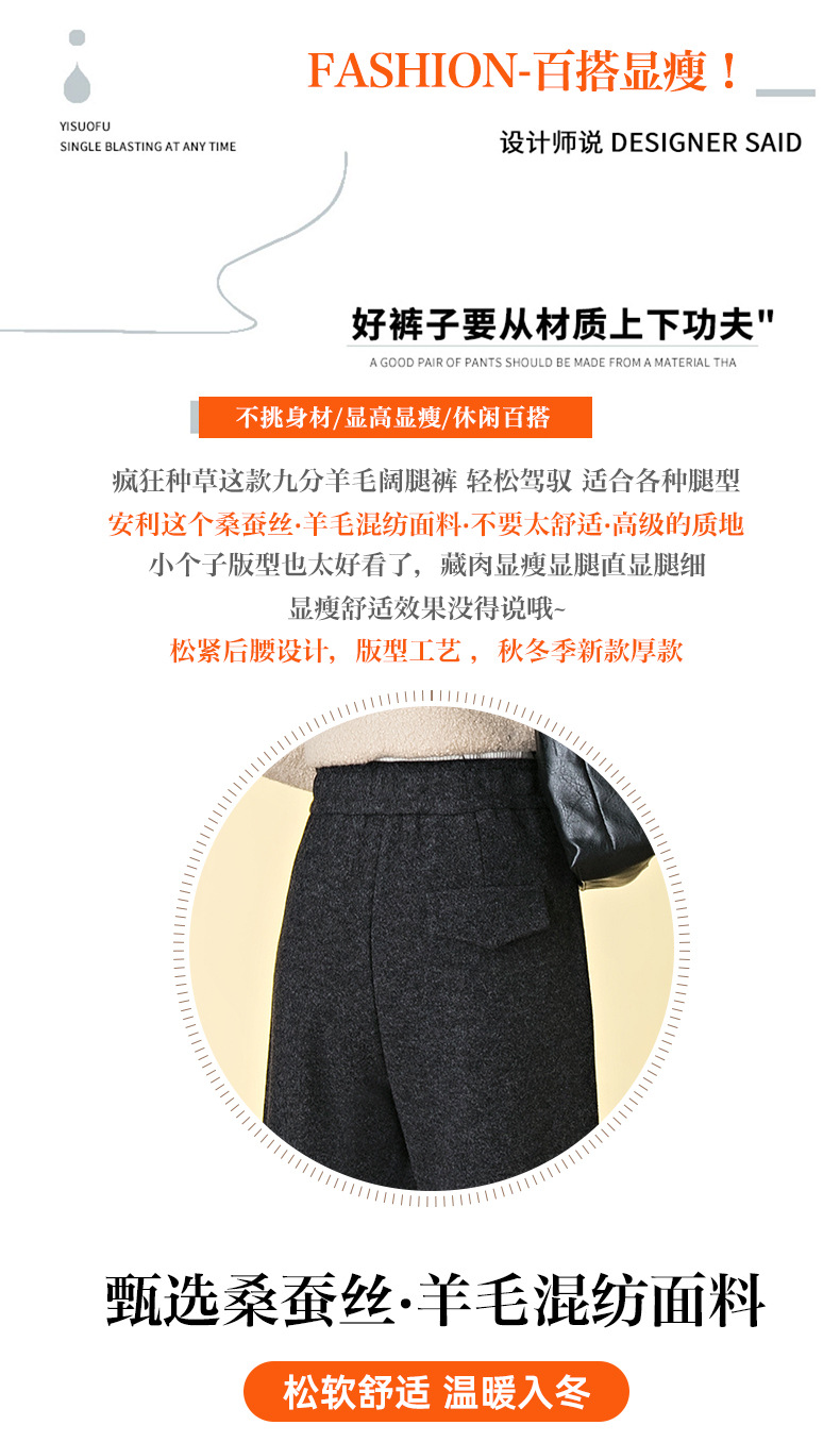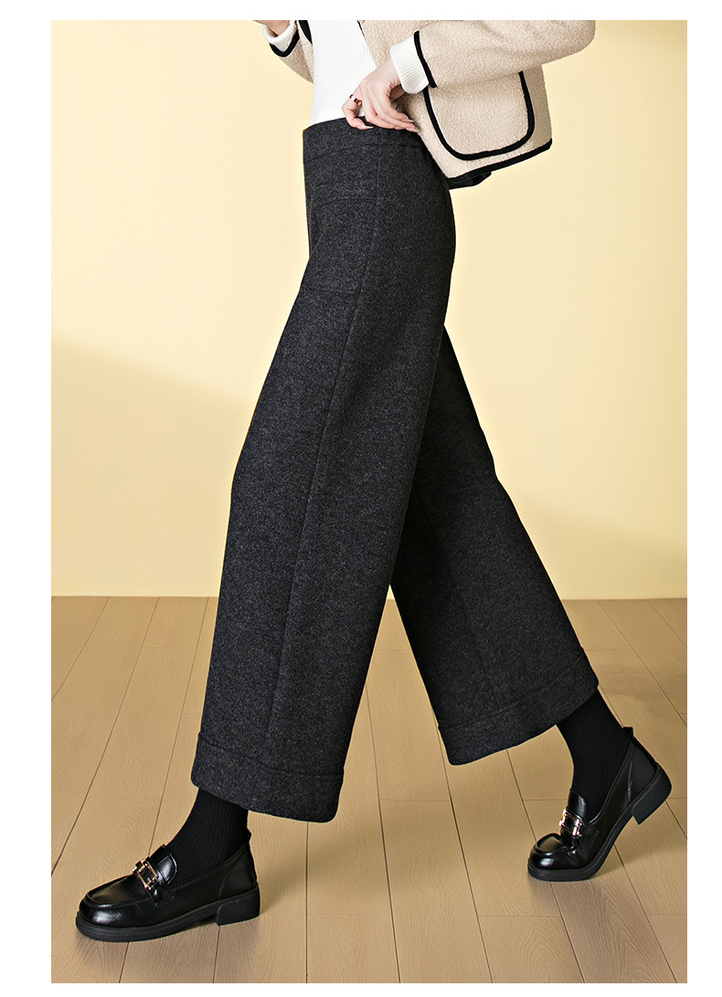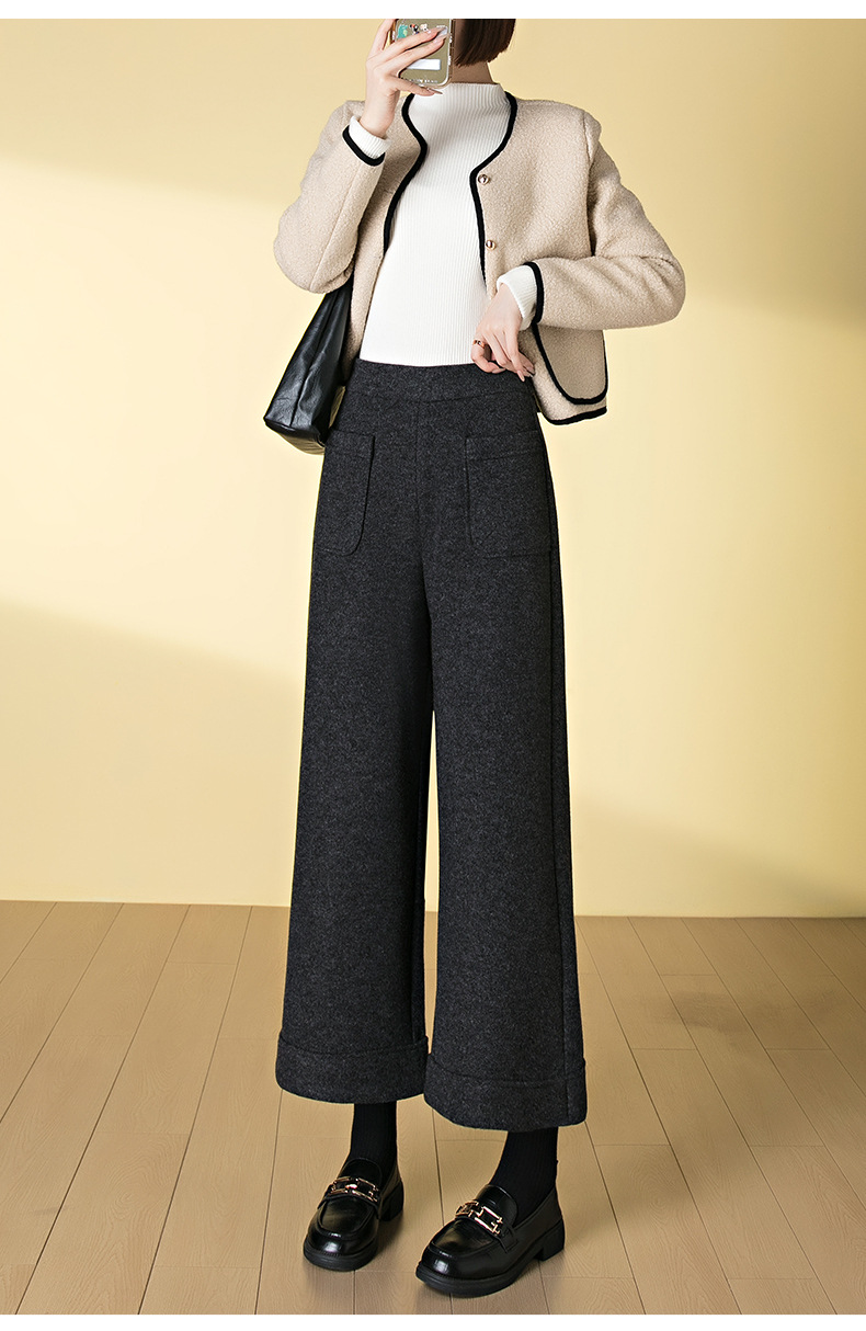 小个子桑蚕丝羊毛呢九分阔腿裤女2025秋冬高腰加厚宽松休闲直筒裤
