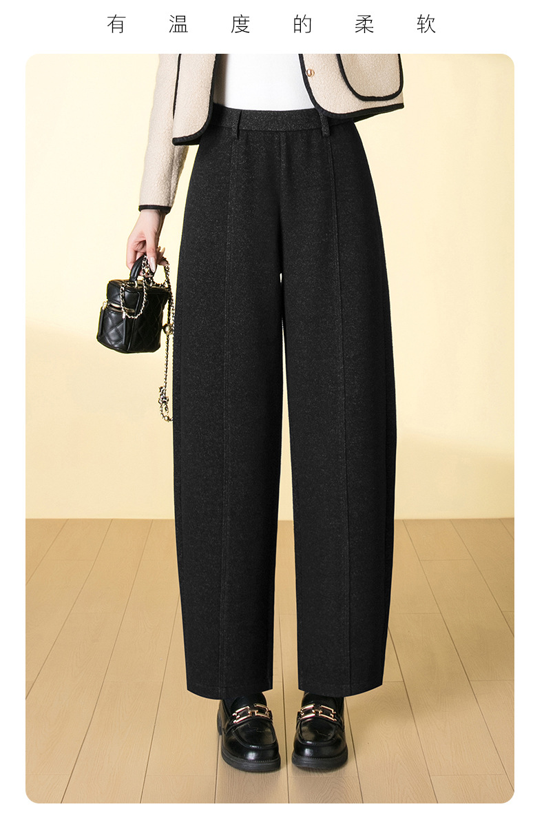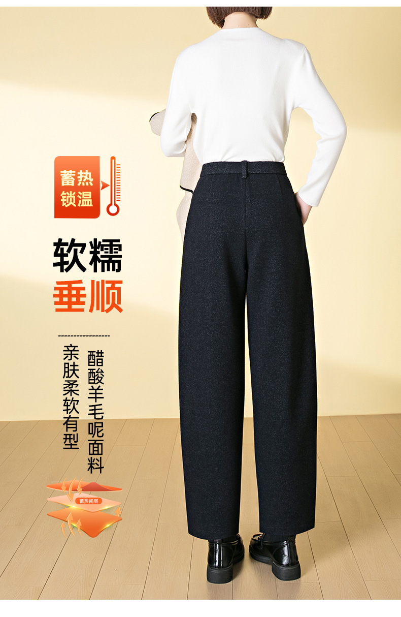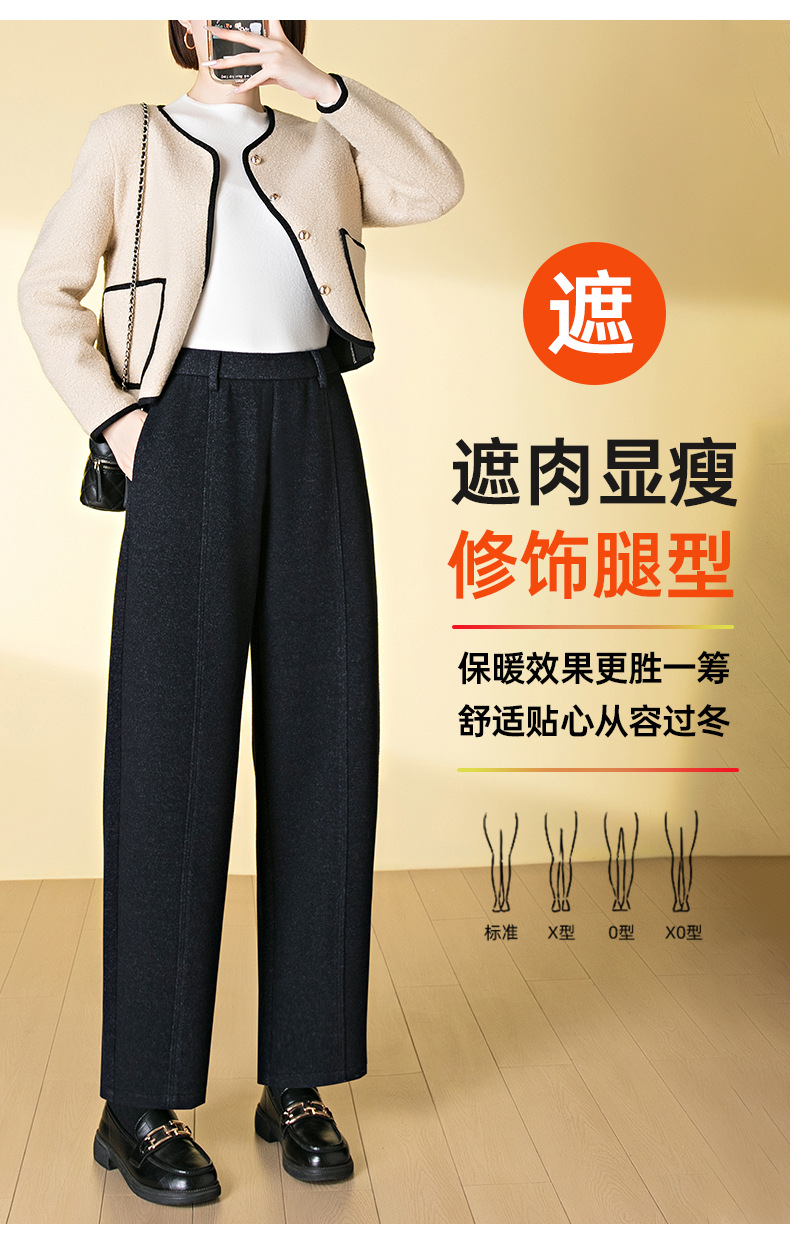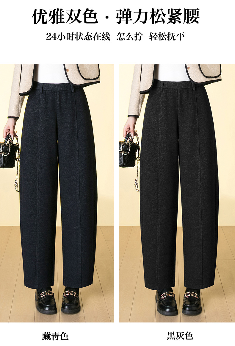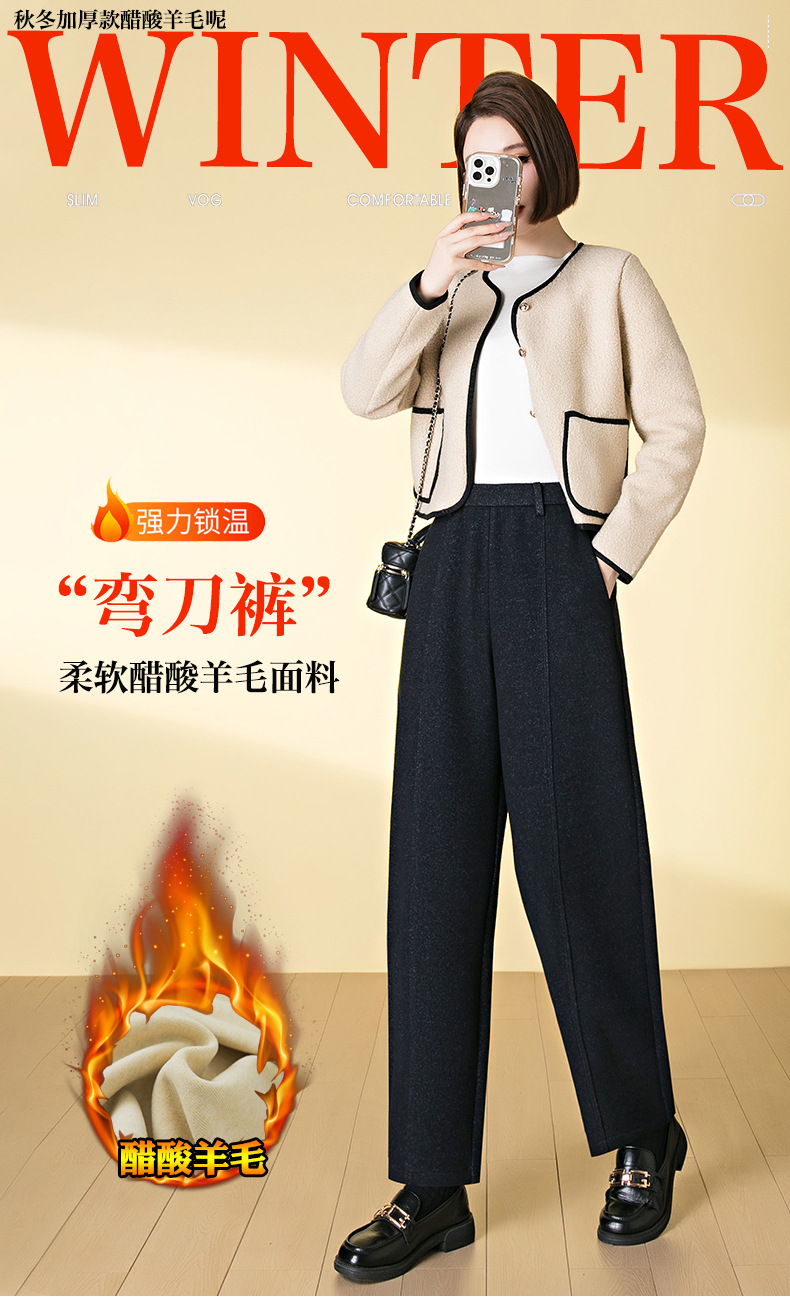醋酸羊毛呢休闲弯刀裤2025秋冬新款松紧腰宽松显瘦加绒加厚阔腿裤