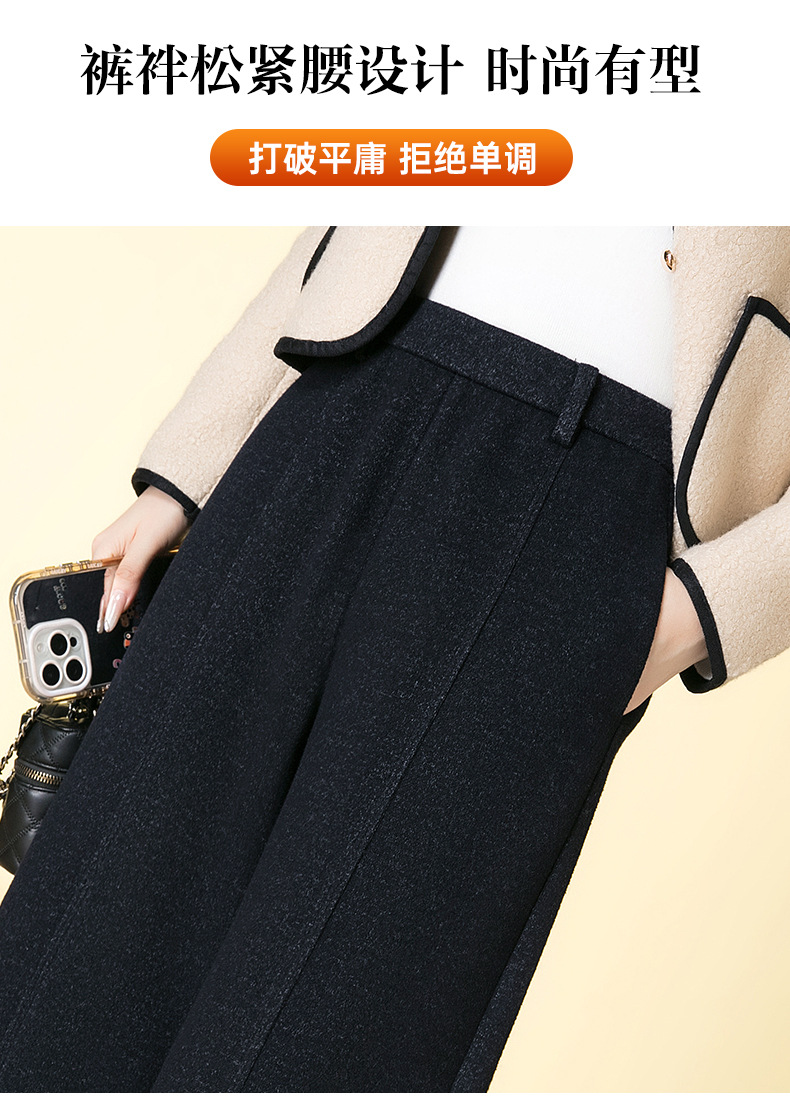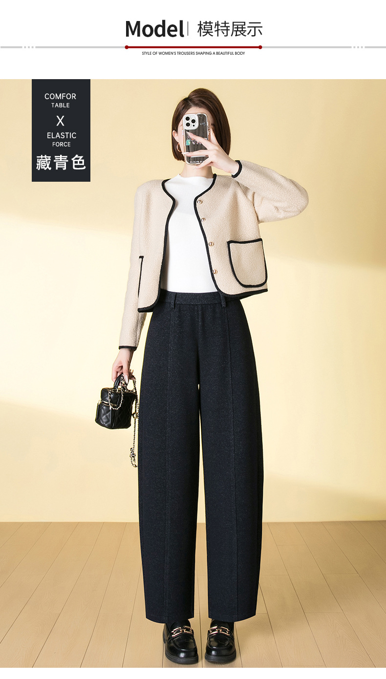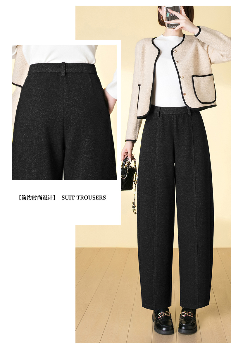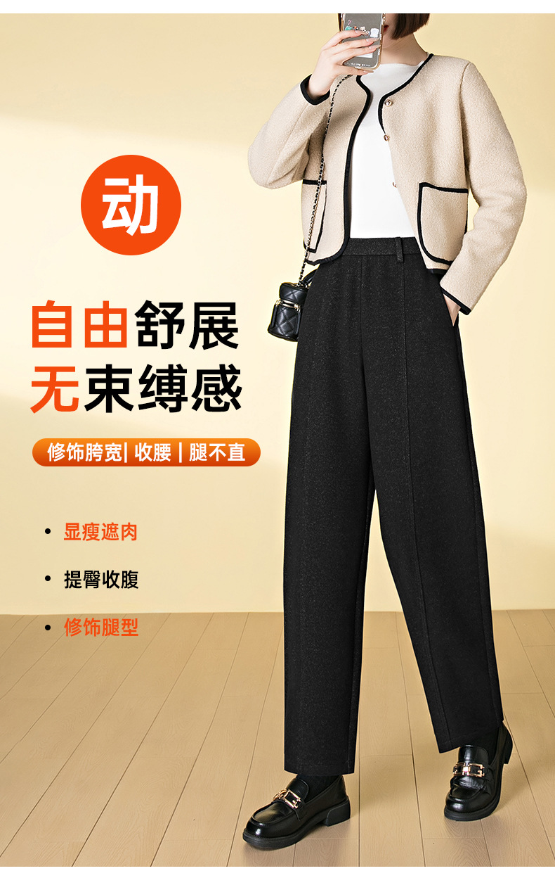 醋酸羊毛呢休闲弯刀裤2025秋冬新款松紧腰宽松显瘦加绒加厚阔腿裤