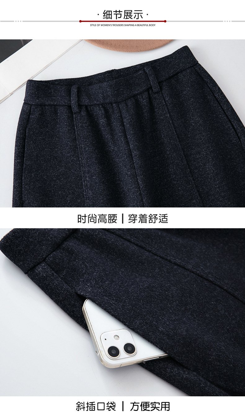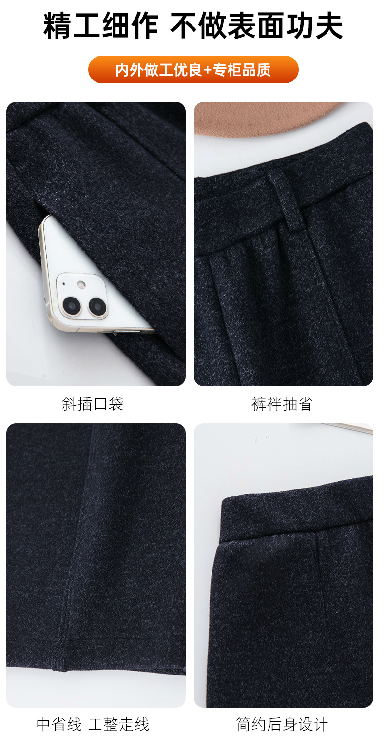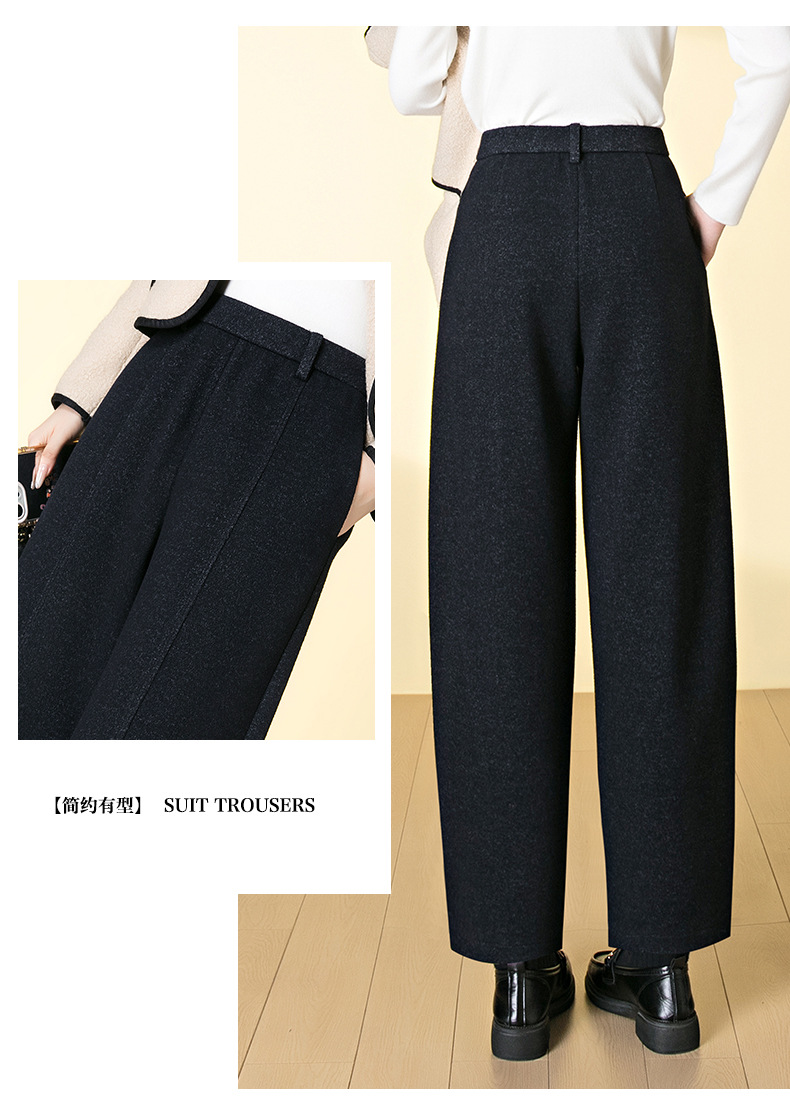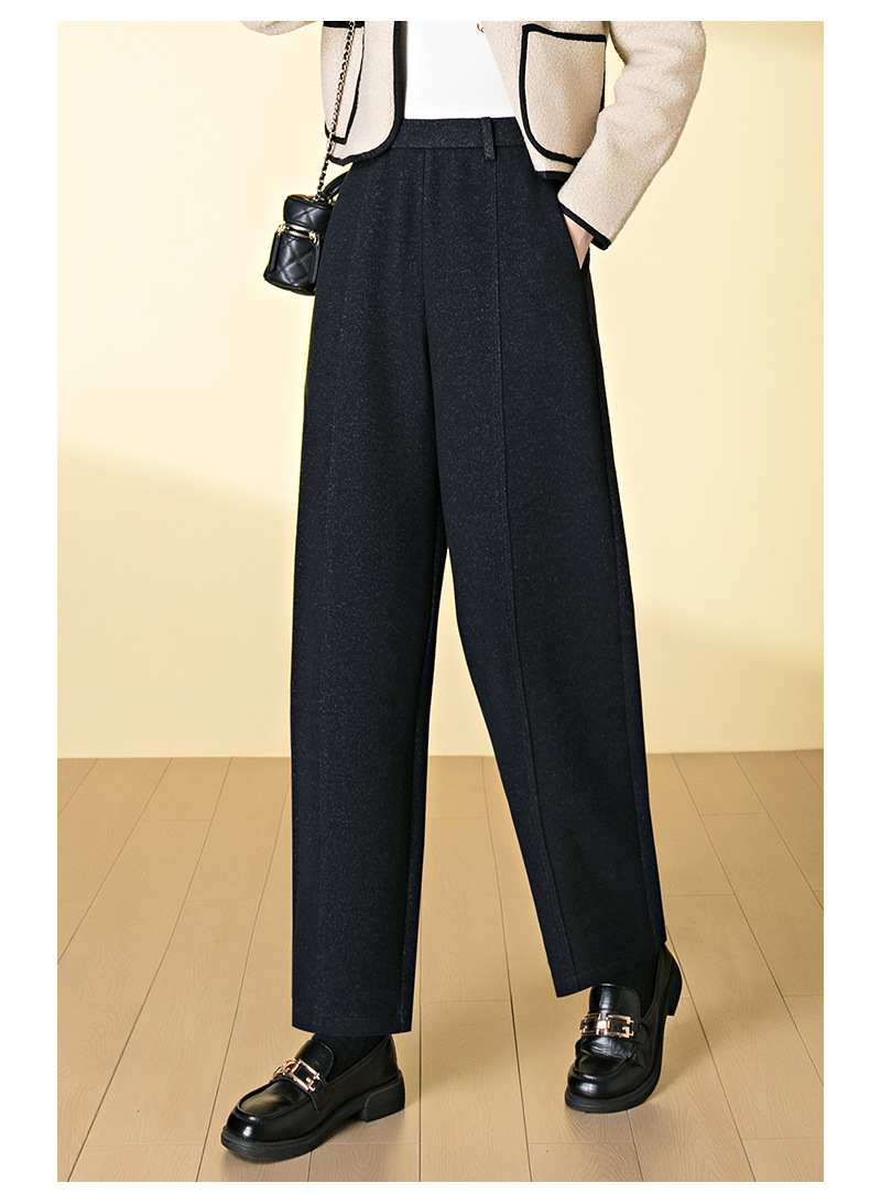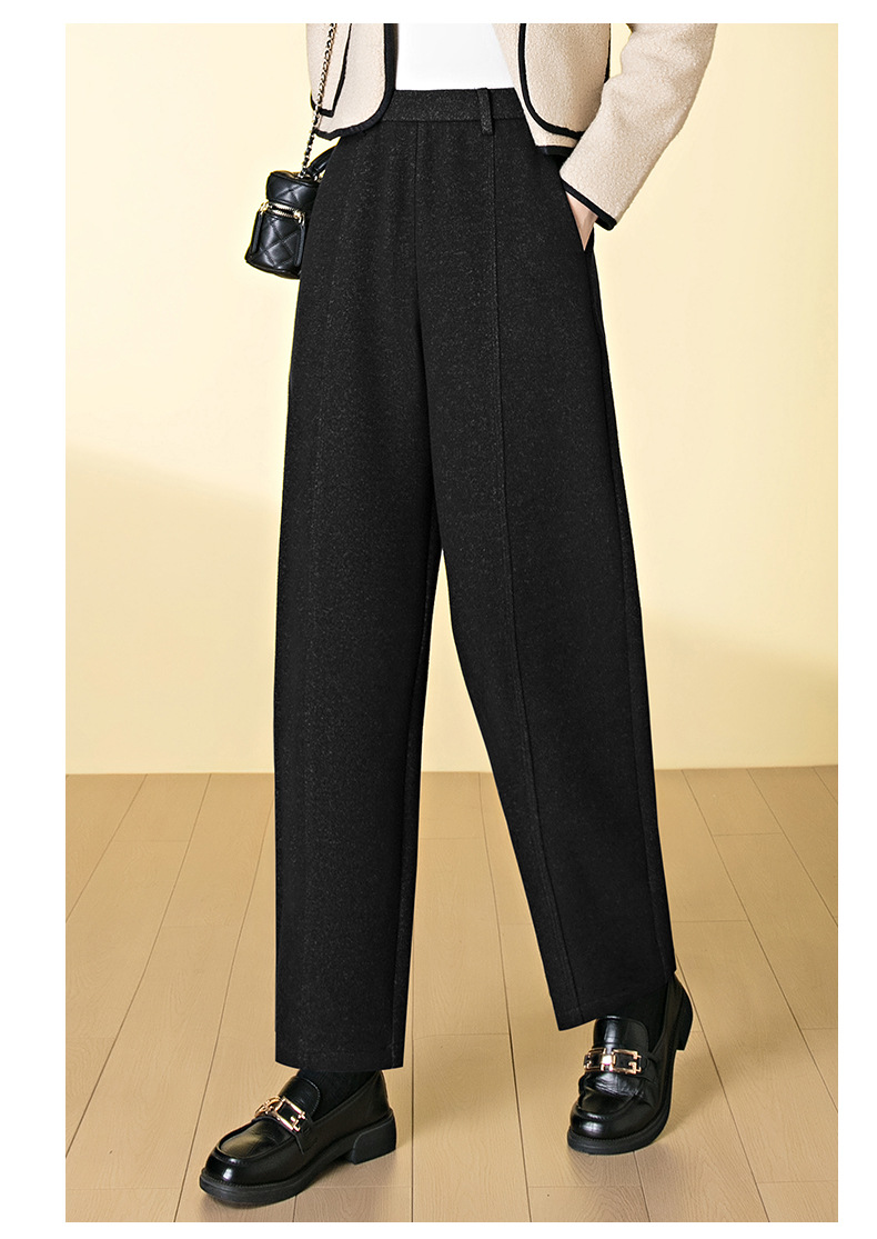 醋酸羊毛呢休闲弯刀裤2025秋冬新款松紧腰宽松显瘦加绒加厚阔腿裤
