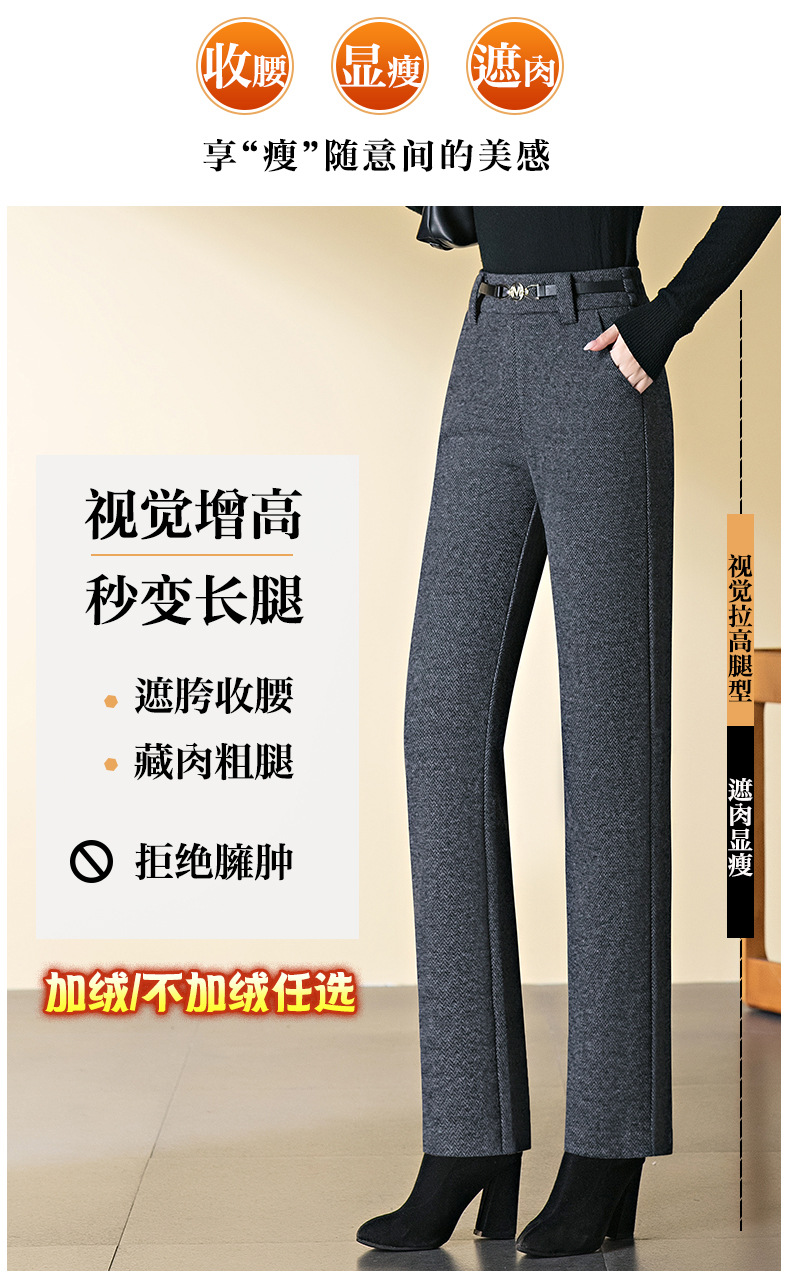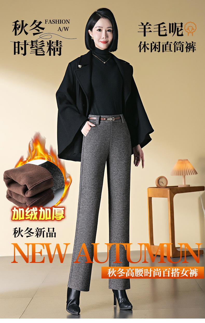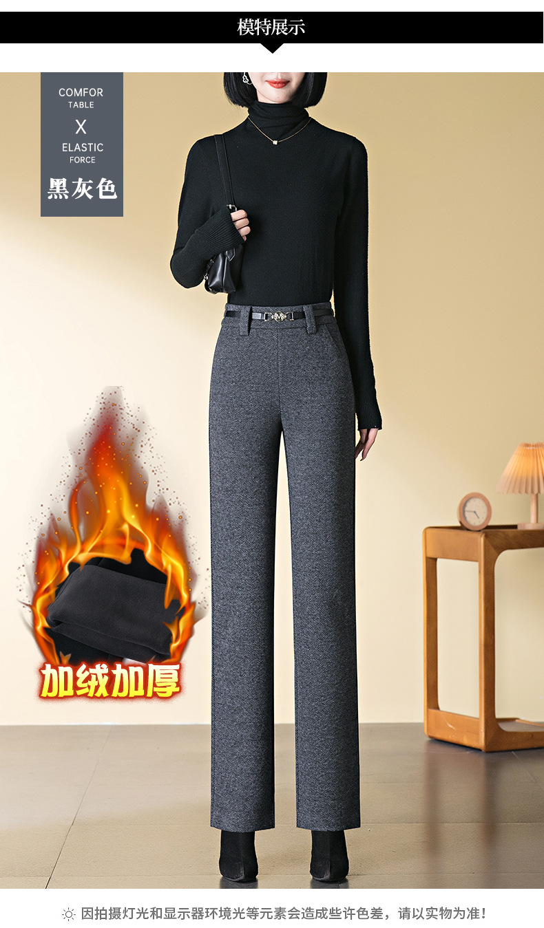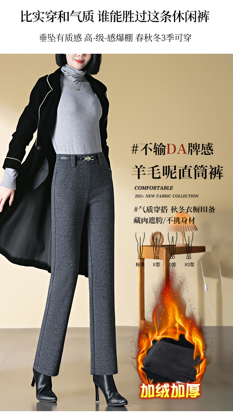 羊毛直筒裤女加绒加厚2025秋冬新款弹力高腰妈妈裤高端长裤子毛呢