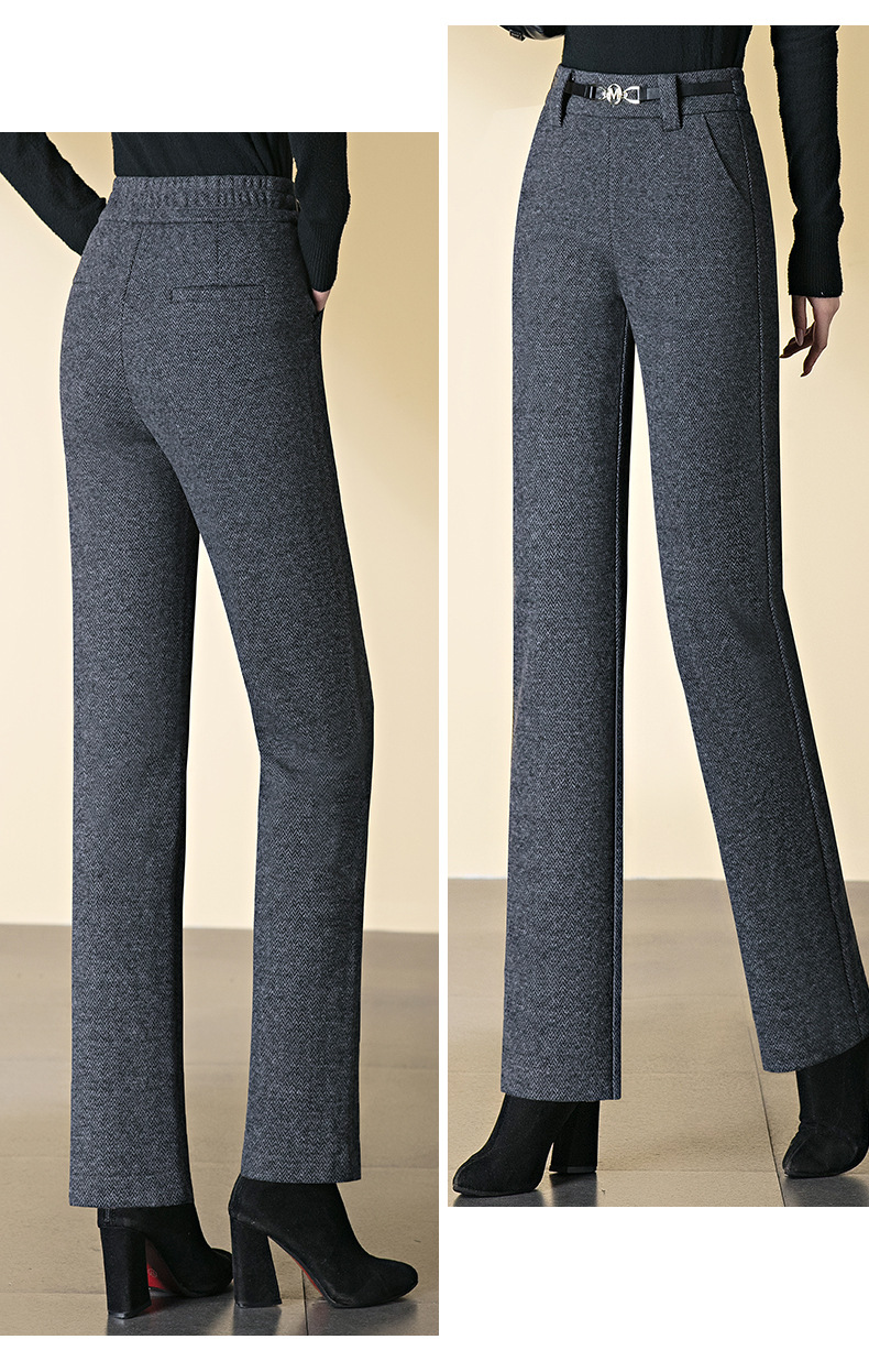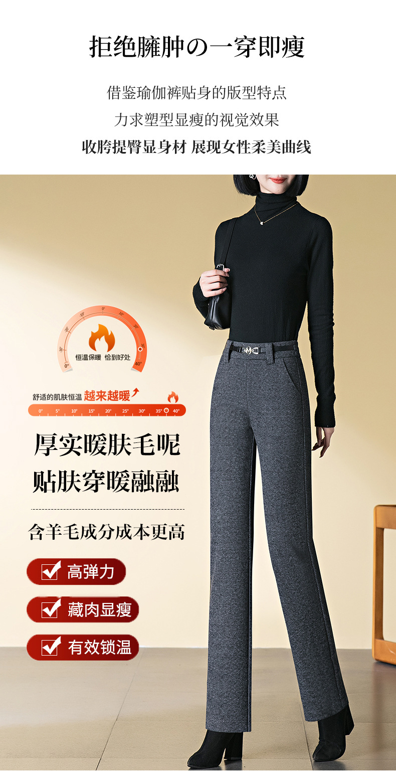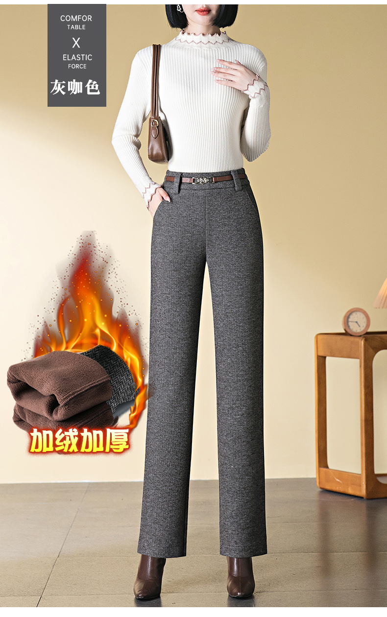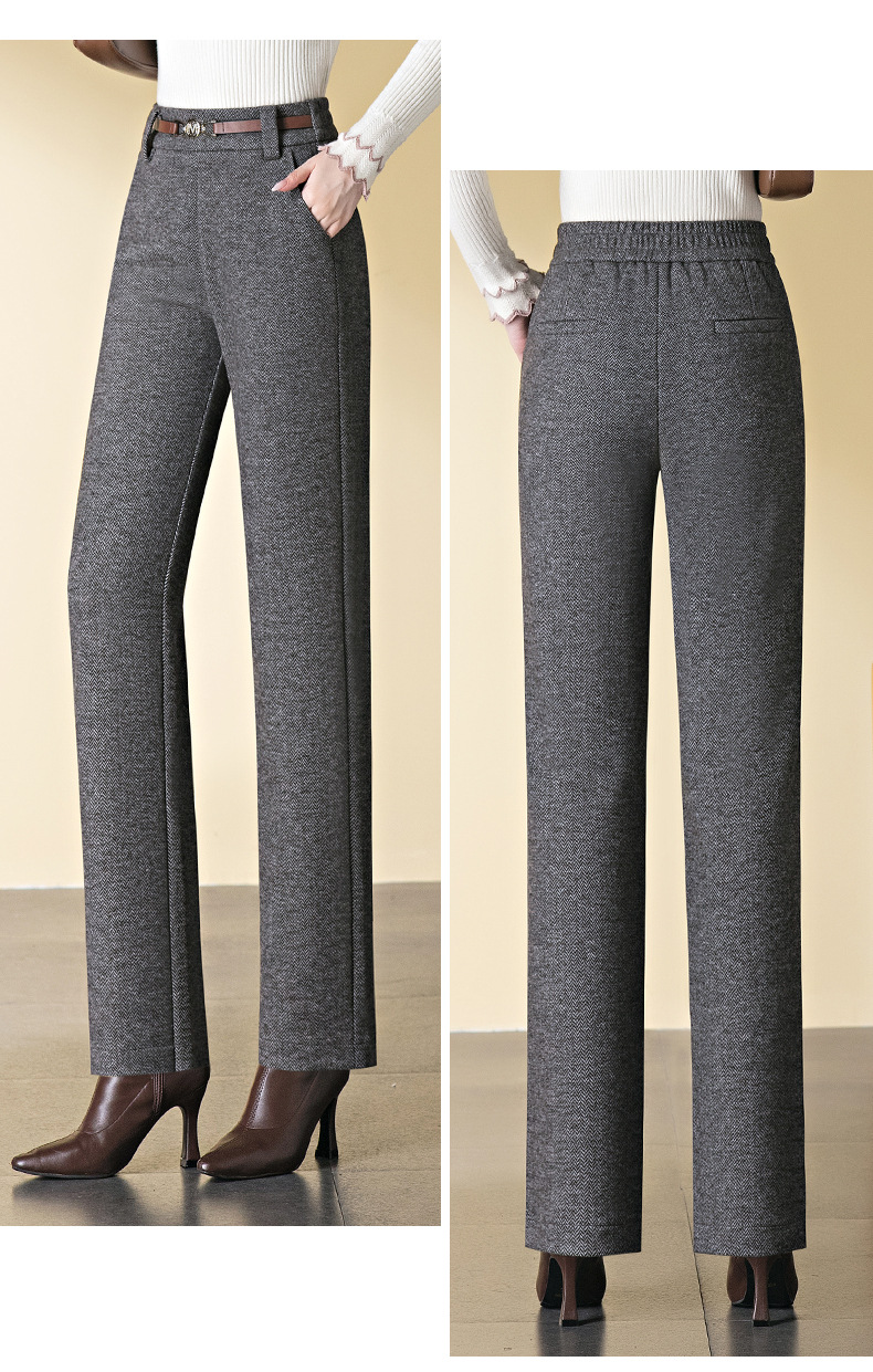 羊毛直筒裤女加绒加厚2025秋冬新款弹力高腰妈妈裤高端长裤子毛呢