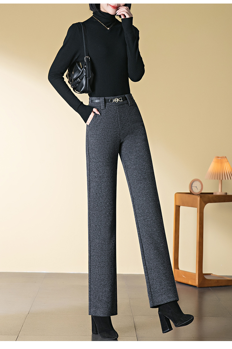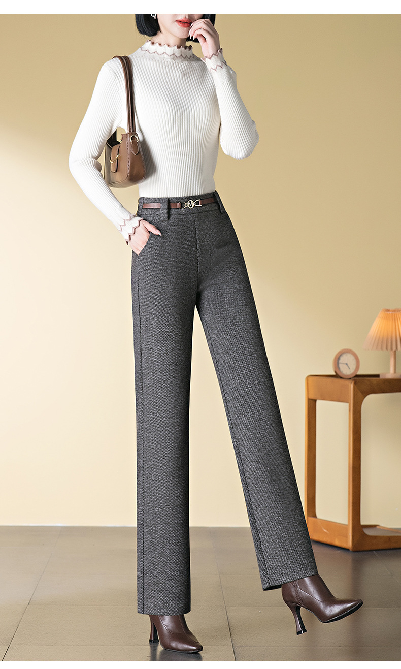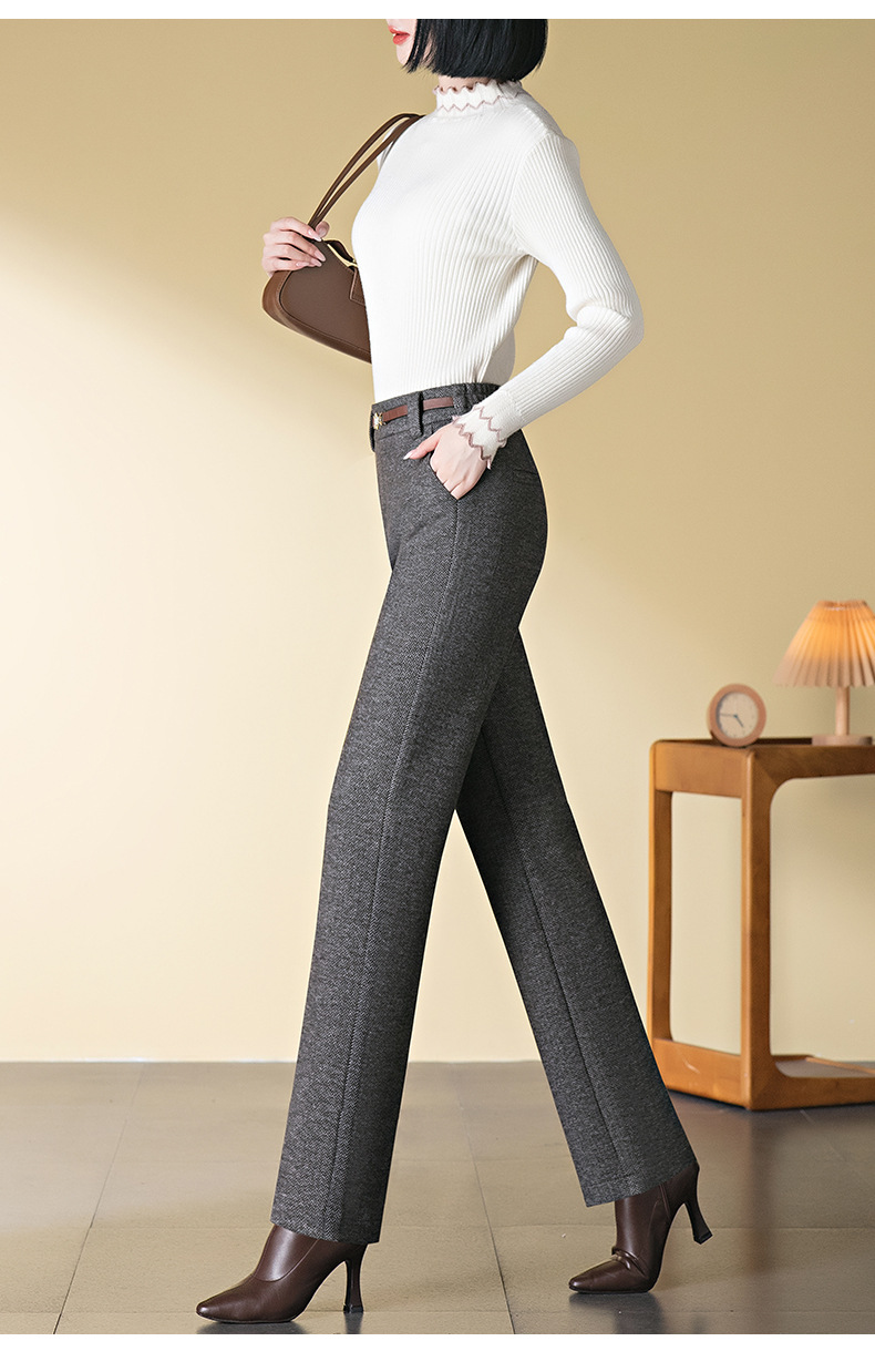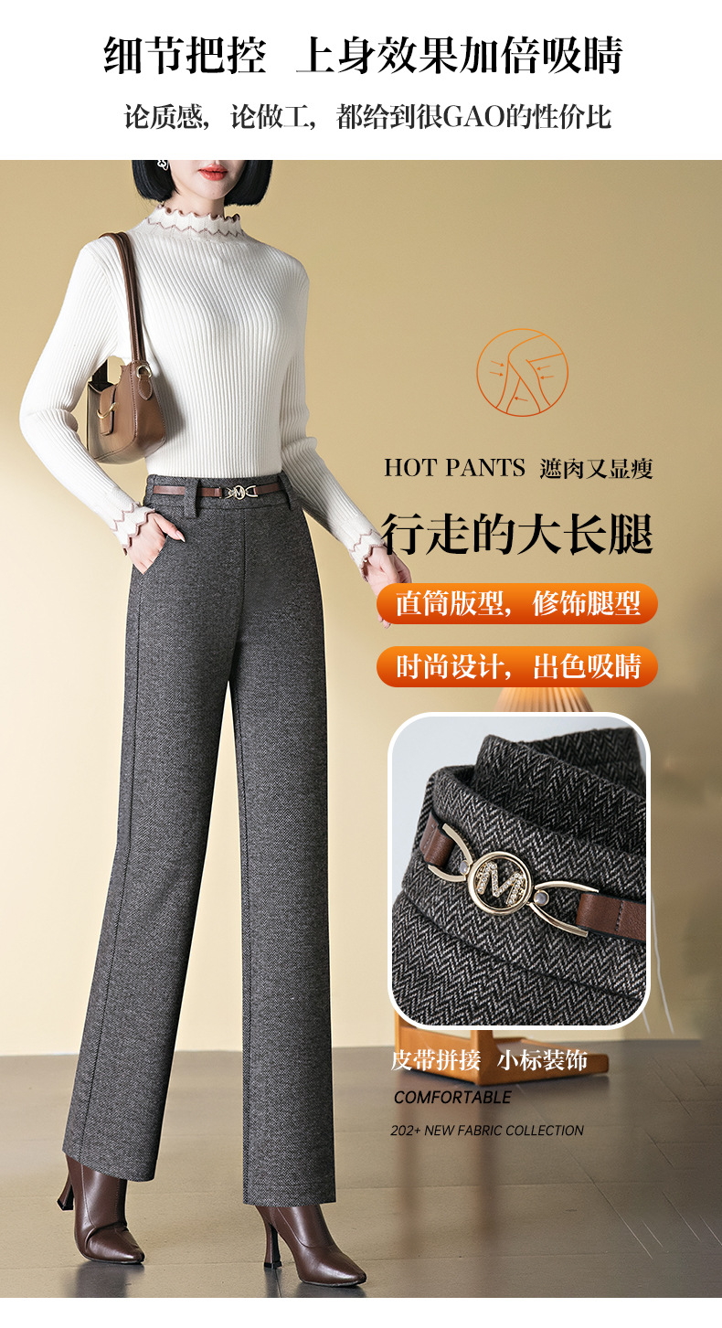羊毛直筒裤女加绒加厚2025秋冬新款弹力高腰妈妈裤高端长裤子毛呢