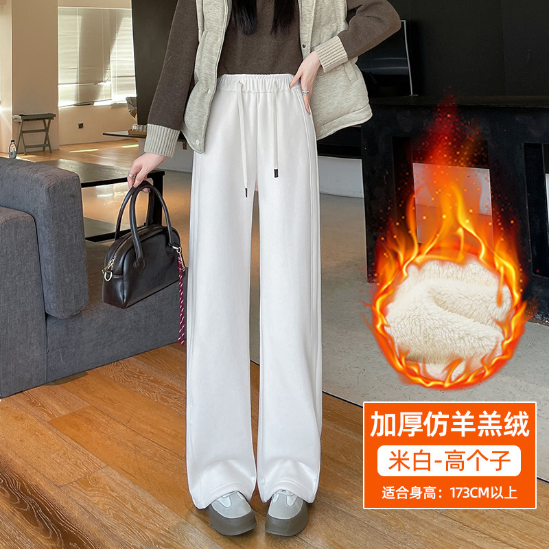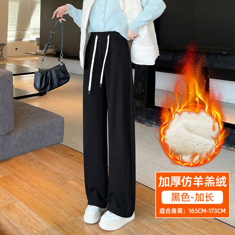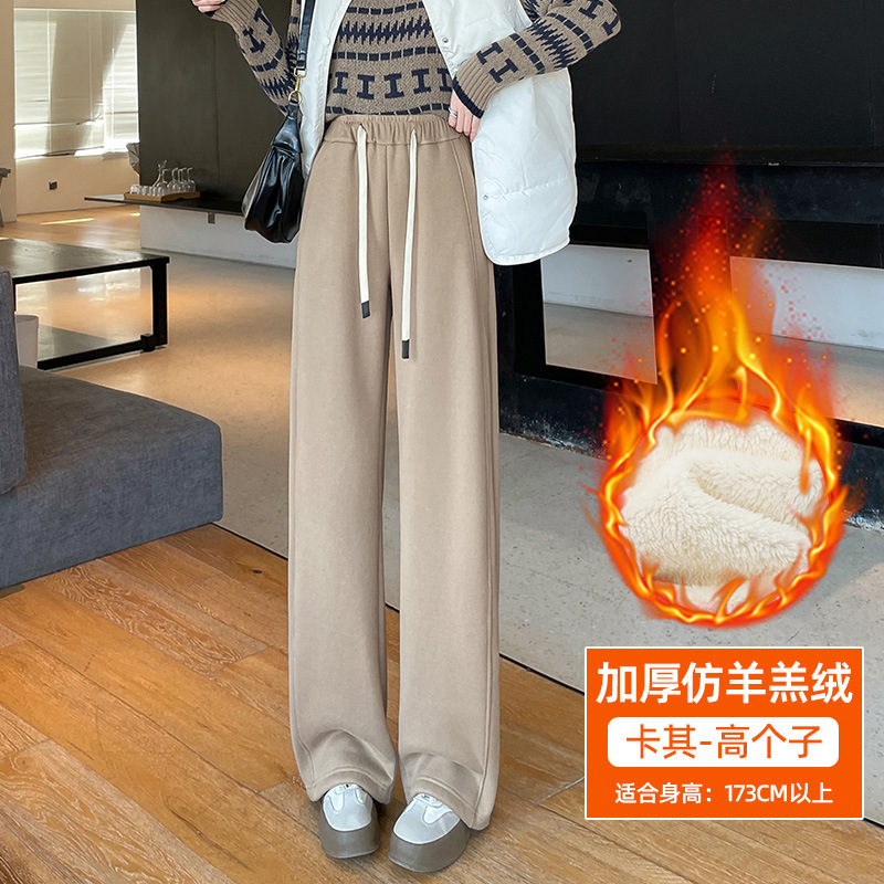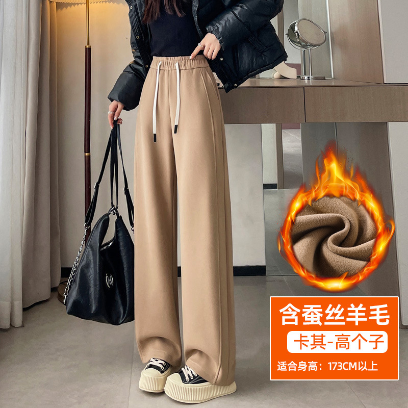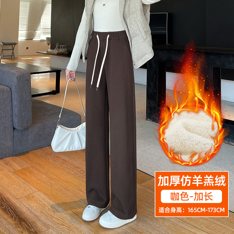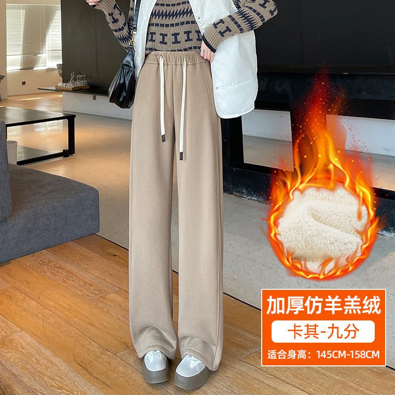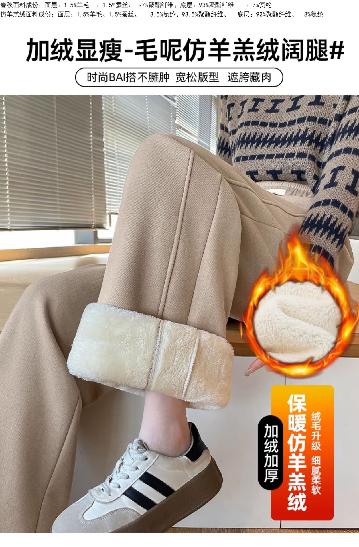 加绒加厚窄版阔腿裤女秋冬季仿羊羔绒休闲显瘦特厚保暖毛呢拖地裤