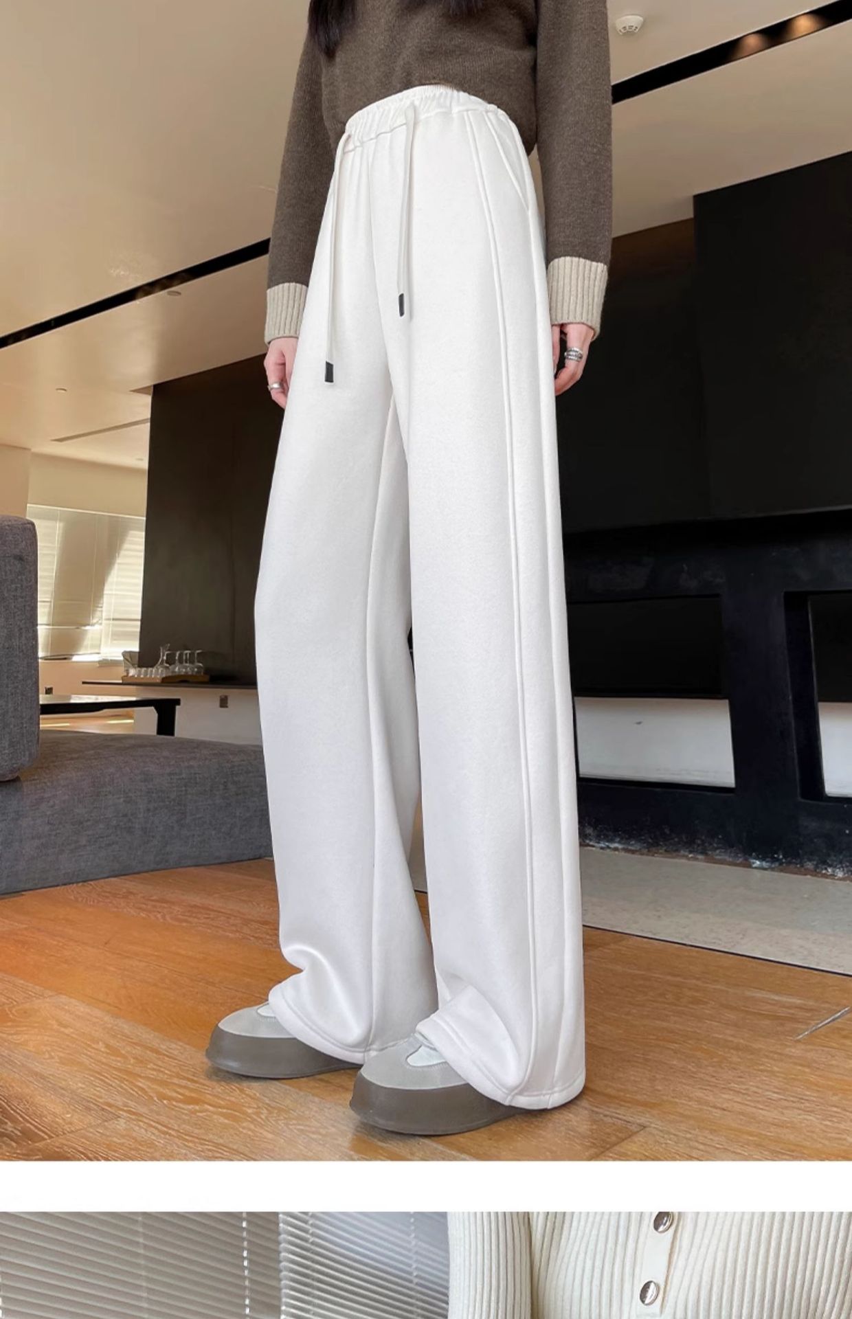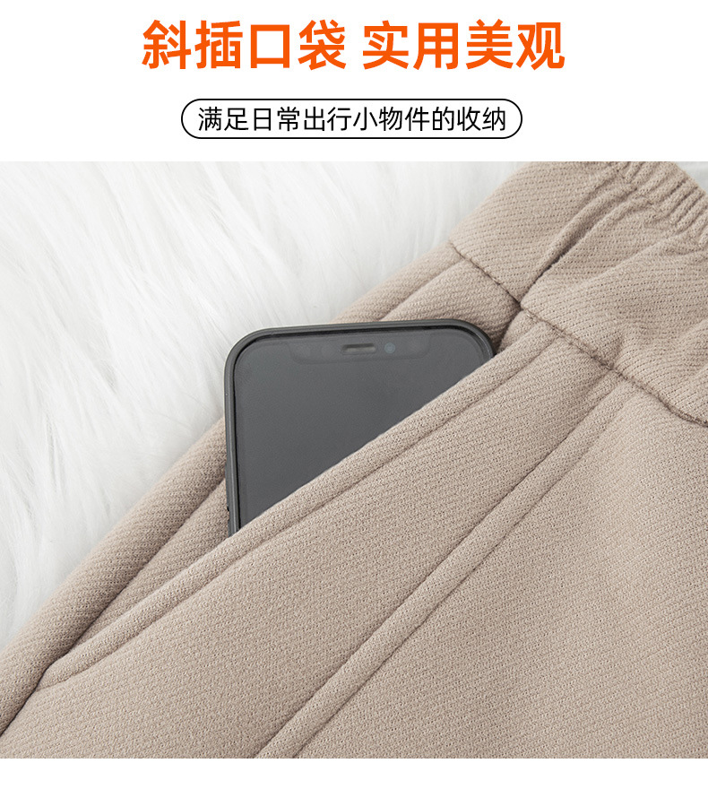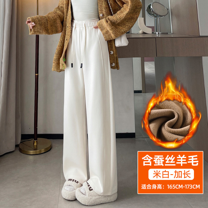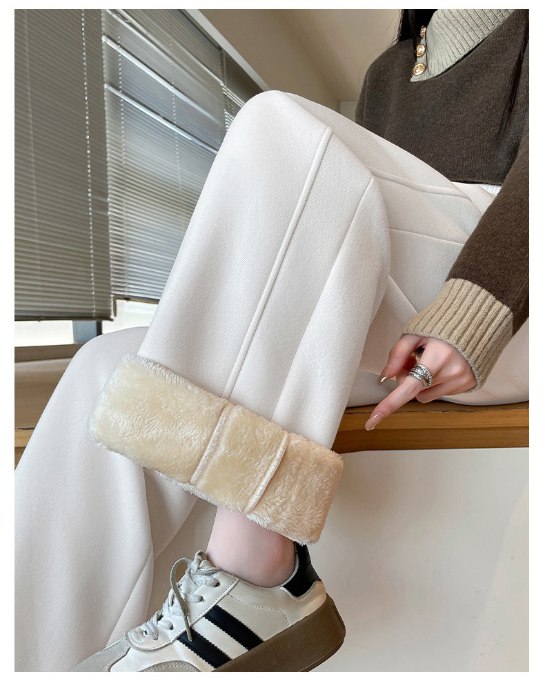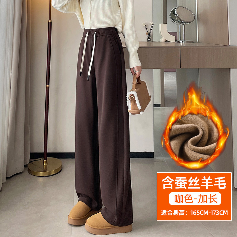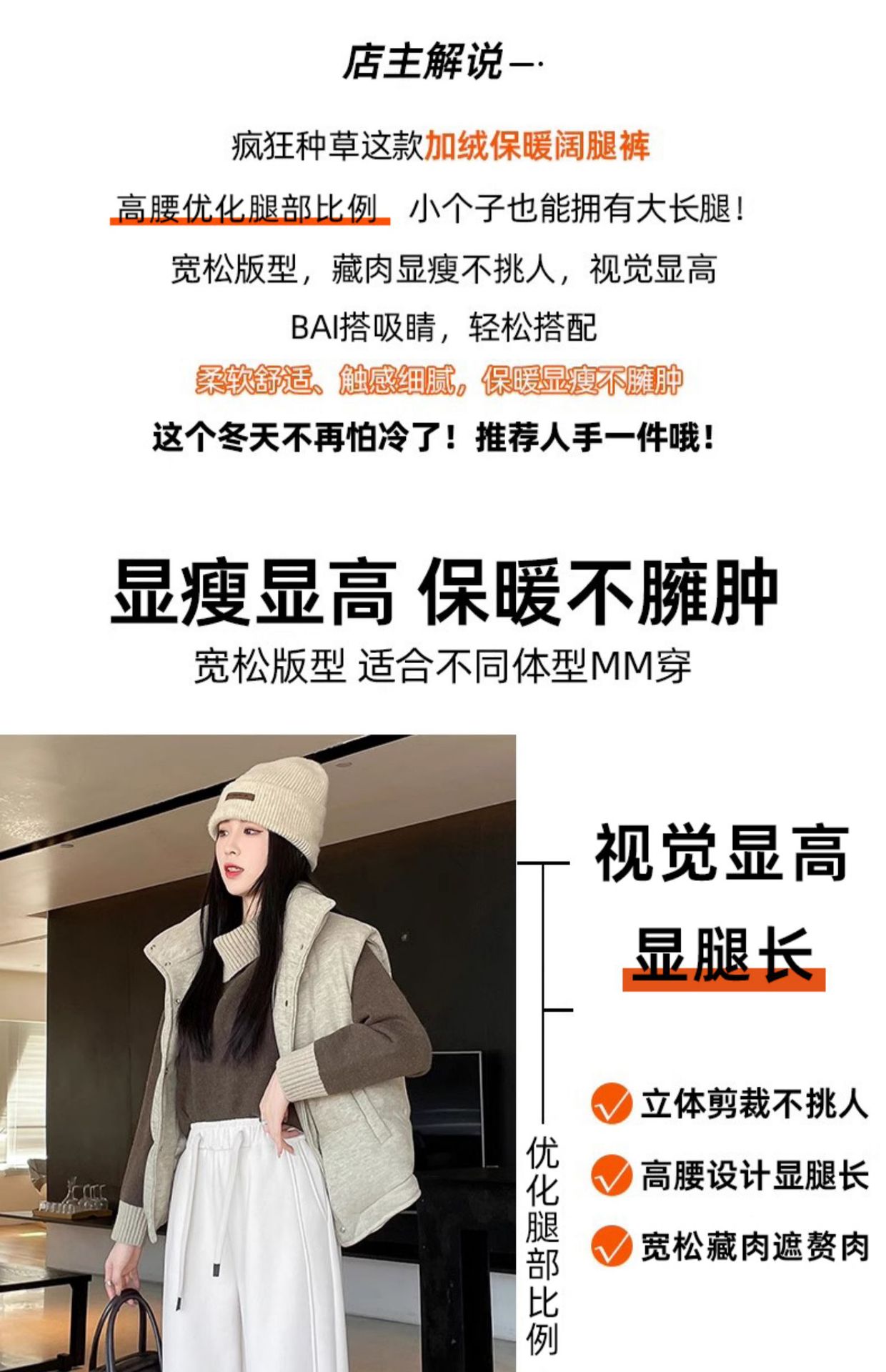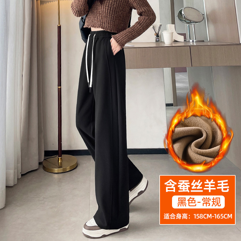 加绒加厚窄版阔腿裤女秋冬季仿羊羔绒休闲显瘦特厚保暖毛呢拖地裤