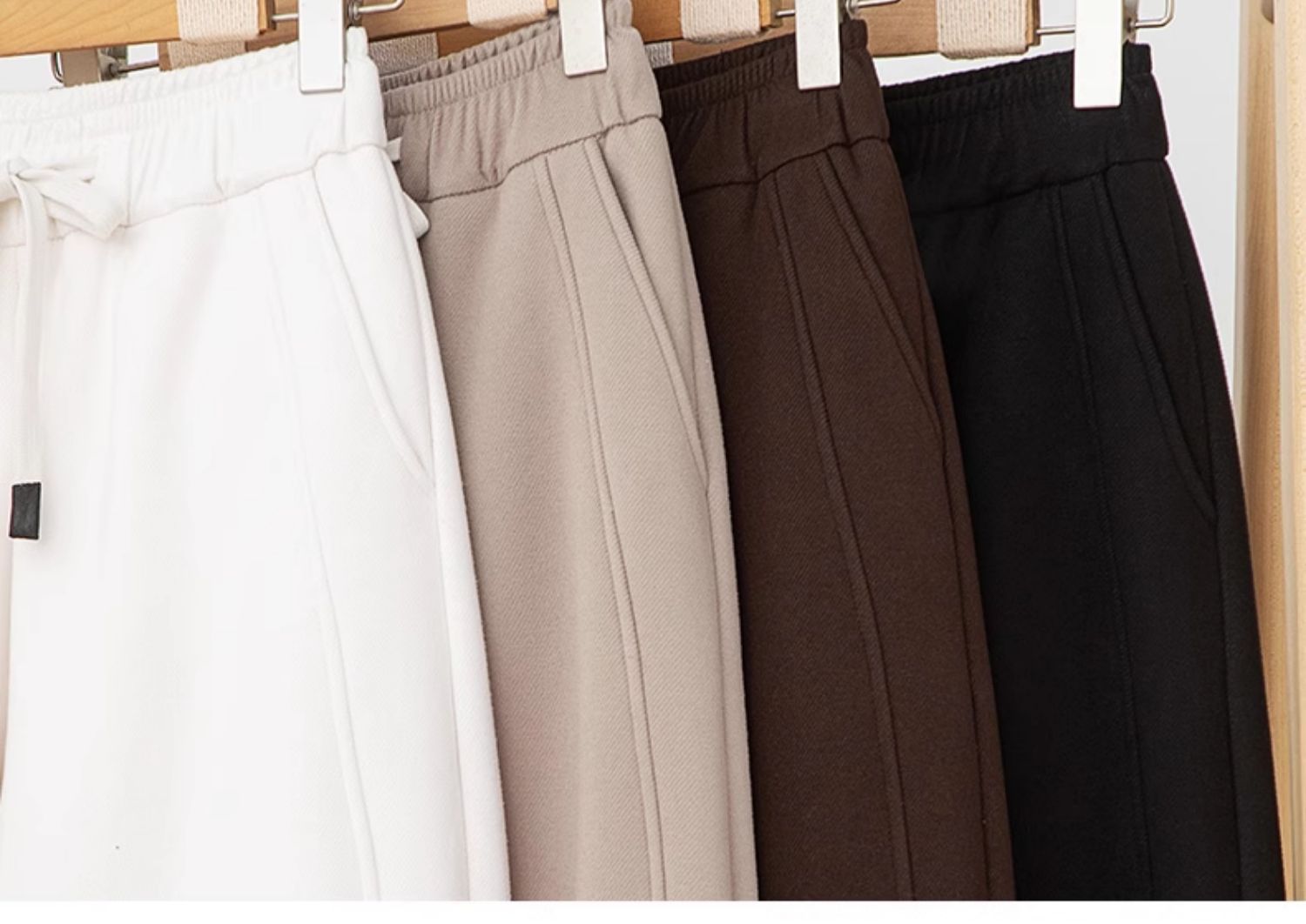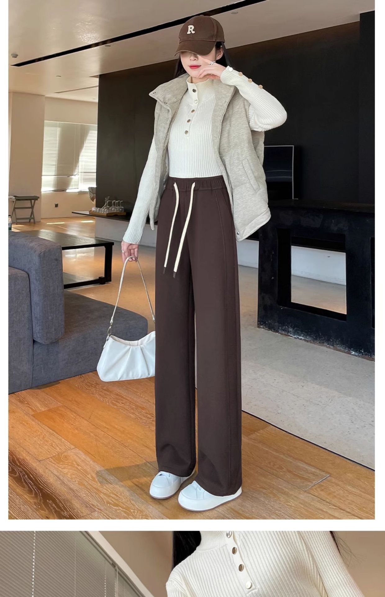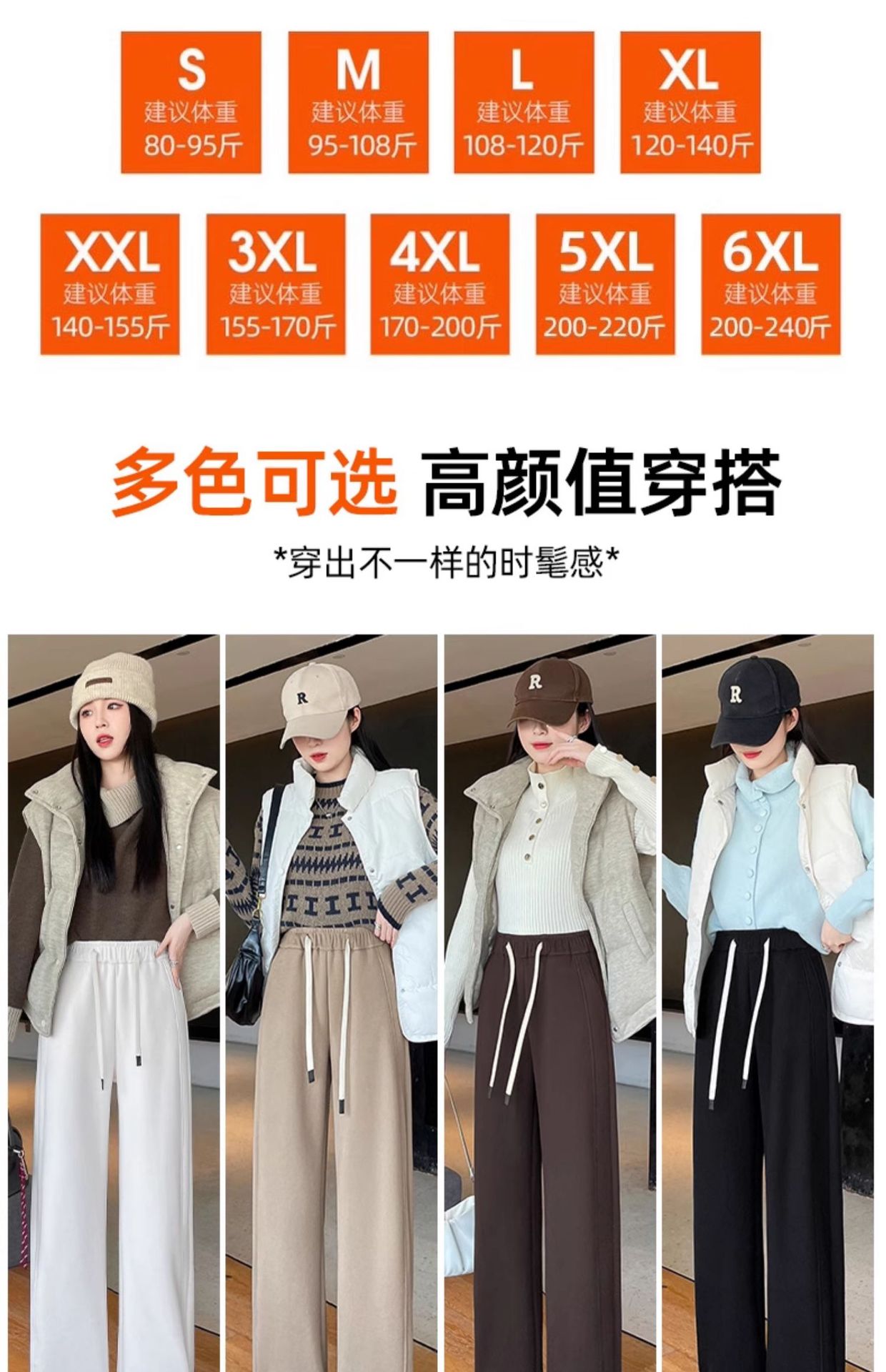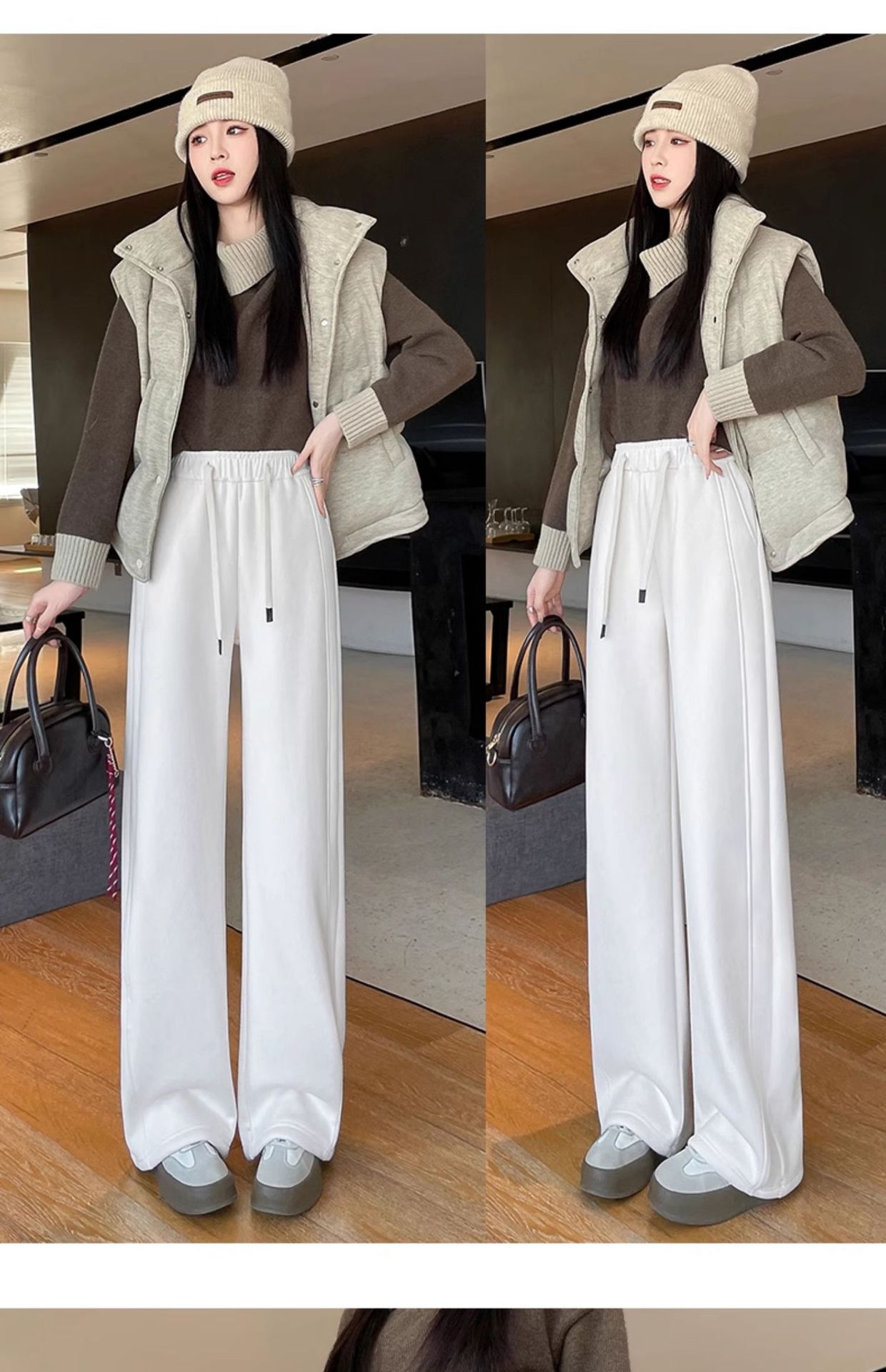 加绒加厚窄版阔腿裤女秋冬季仿羊羔绒休闲显瘦特厚保暖毛呢拖地裤
