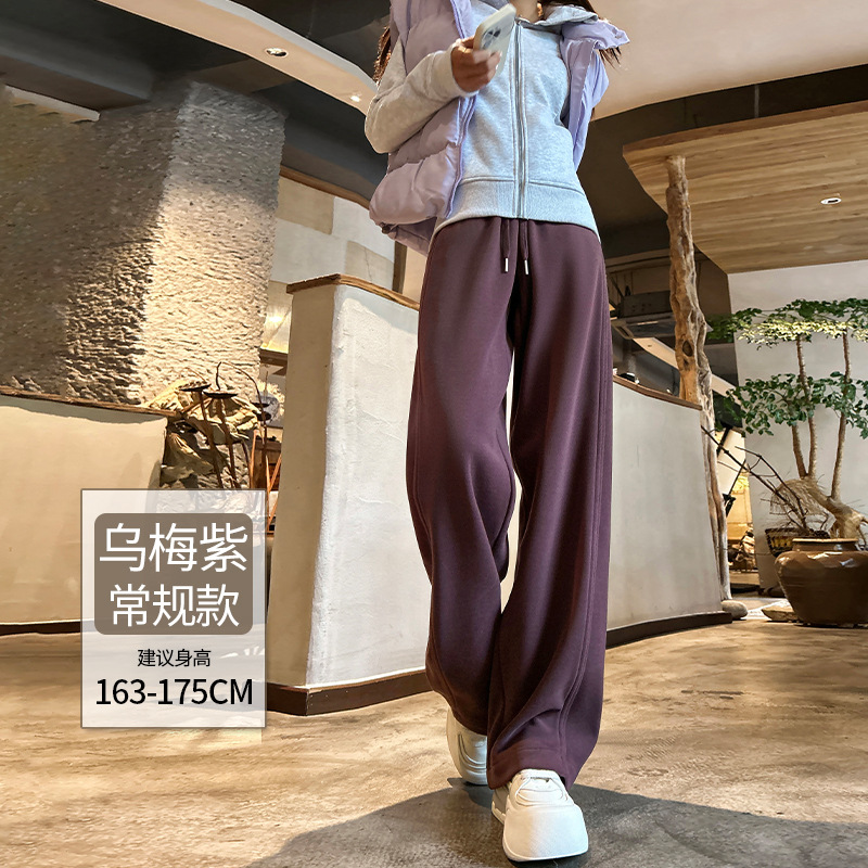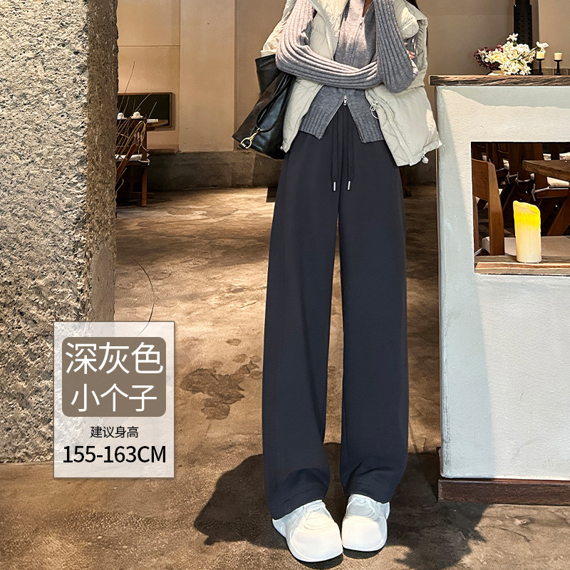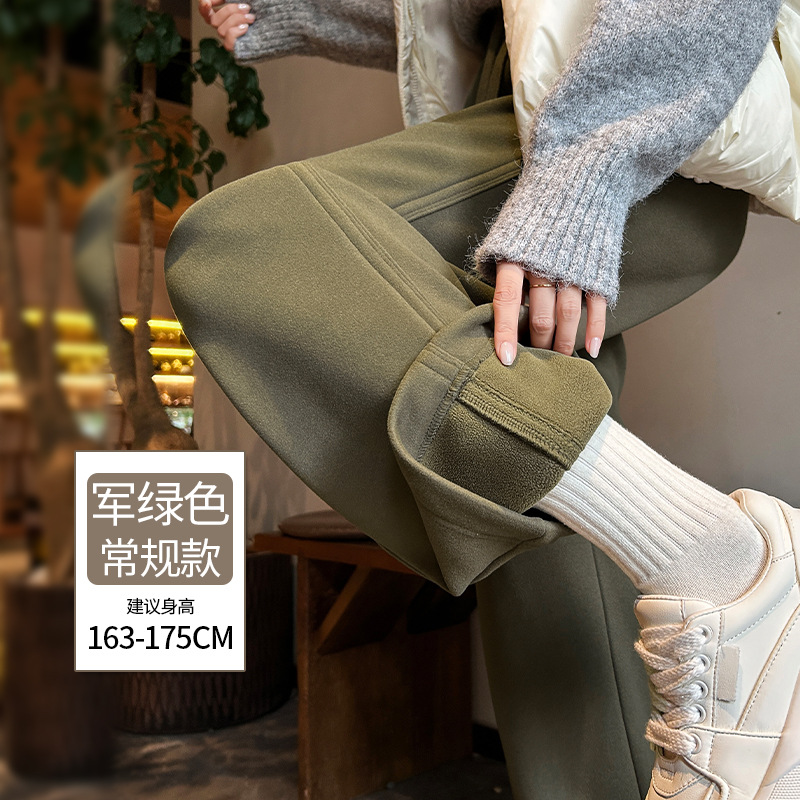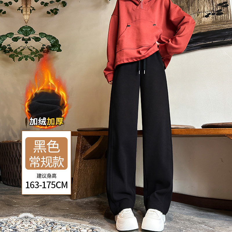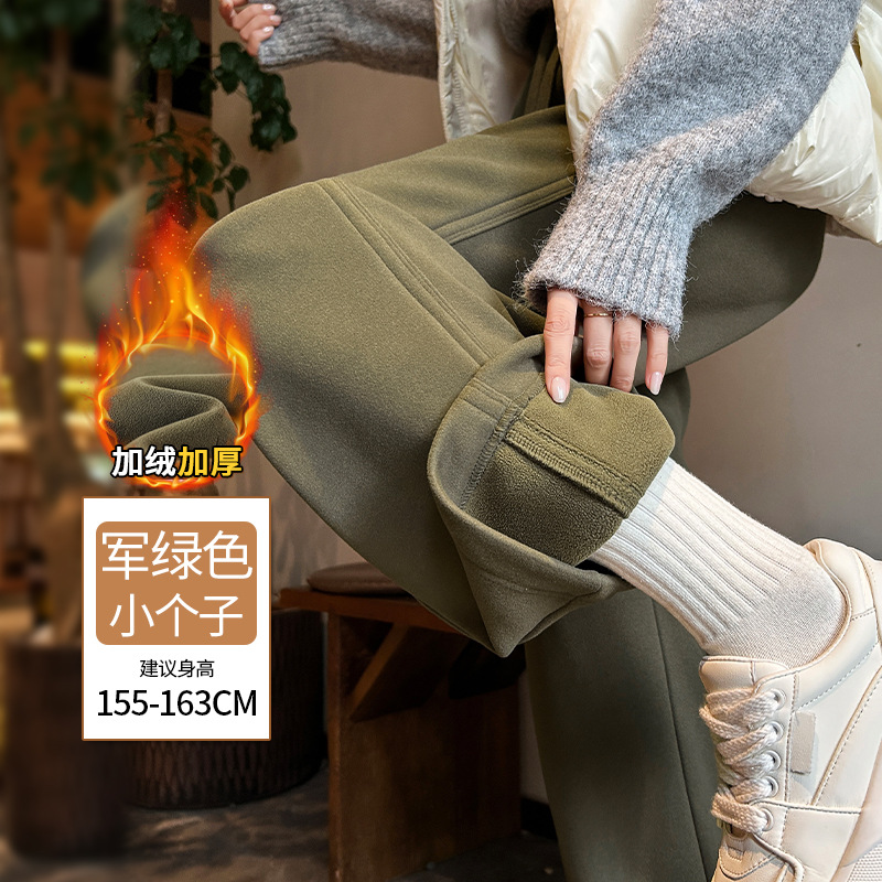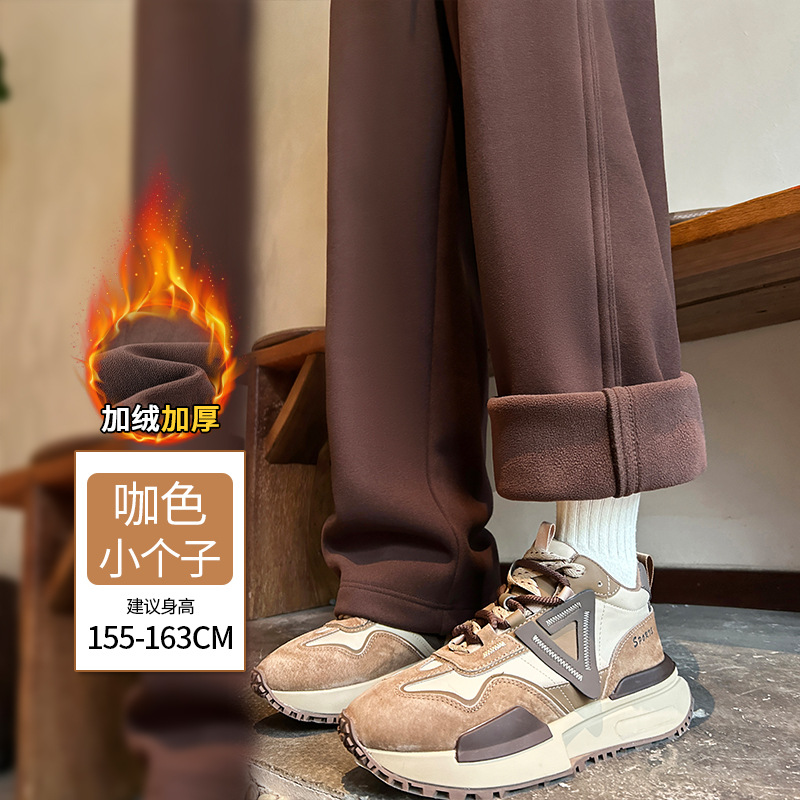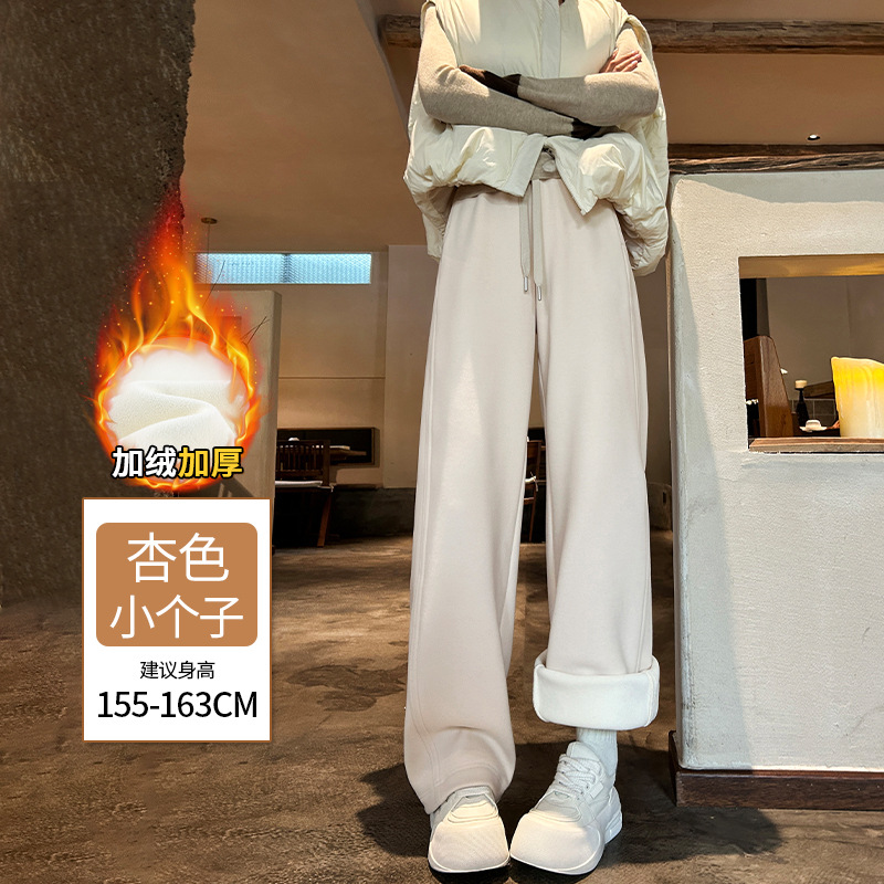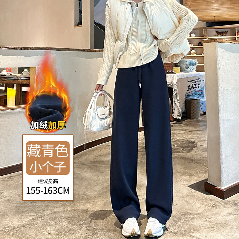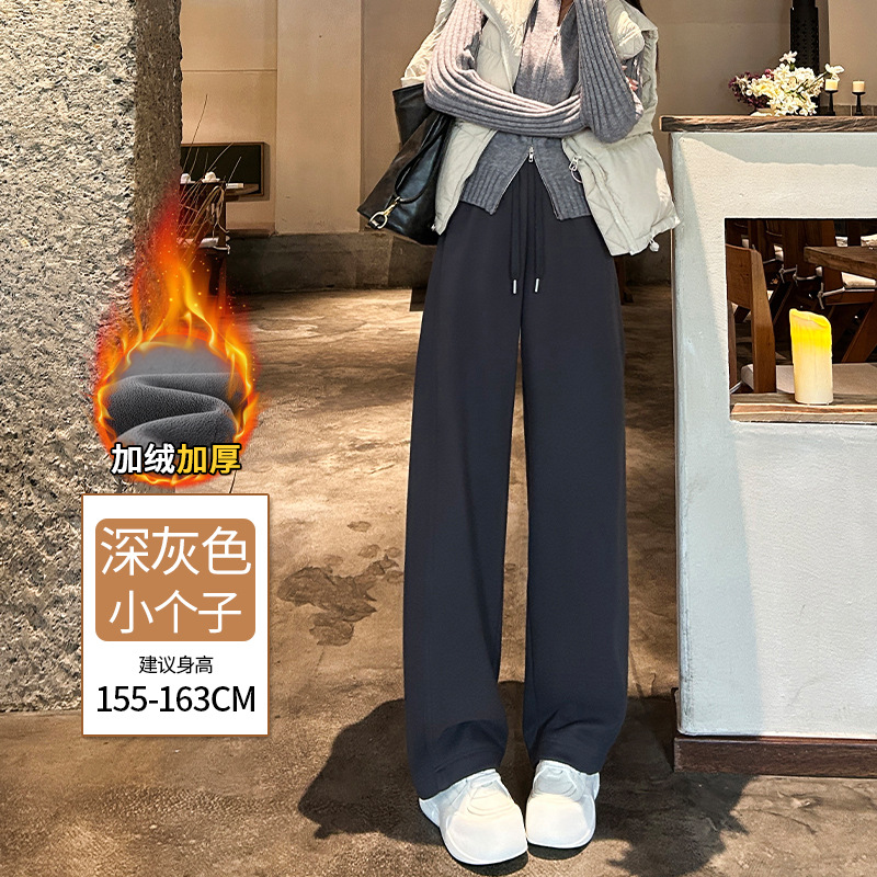 加绒防风卫裤女秋冬季2025新款小个子高腰垂感休闲显瘦直筒阔腿裤