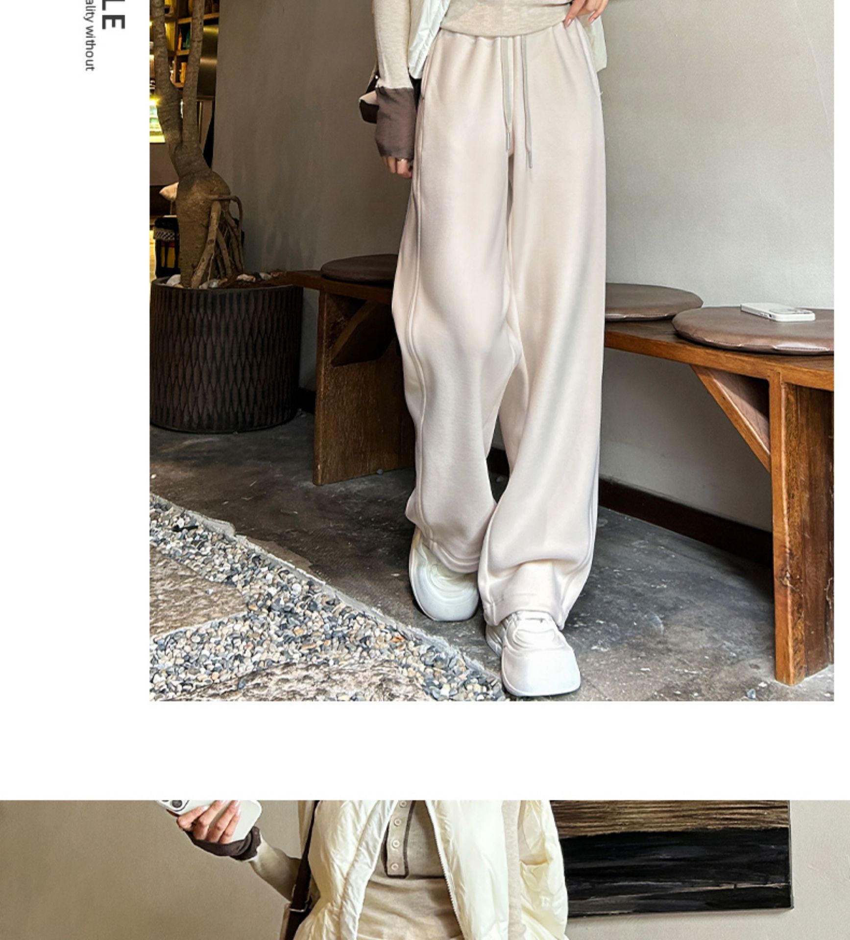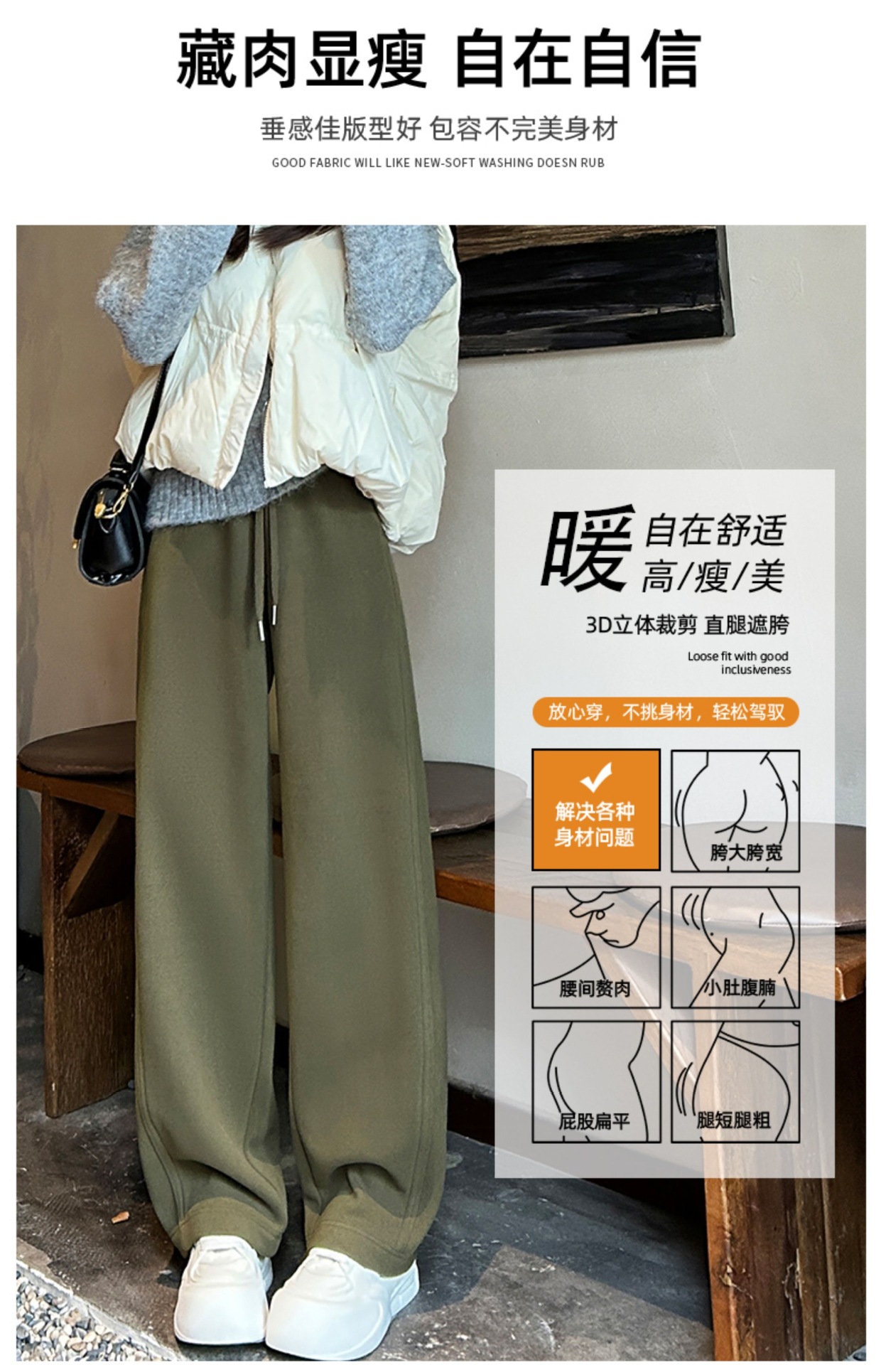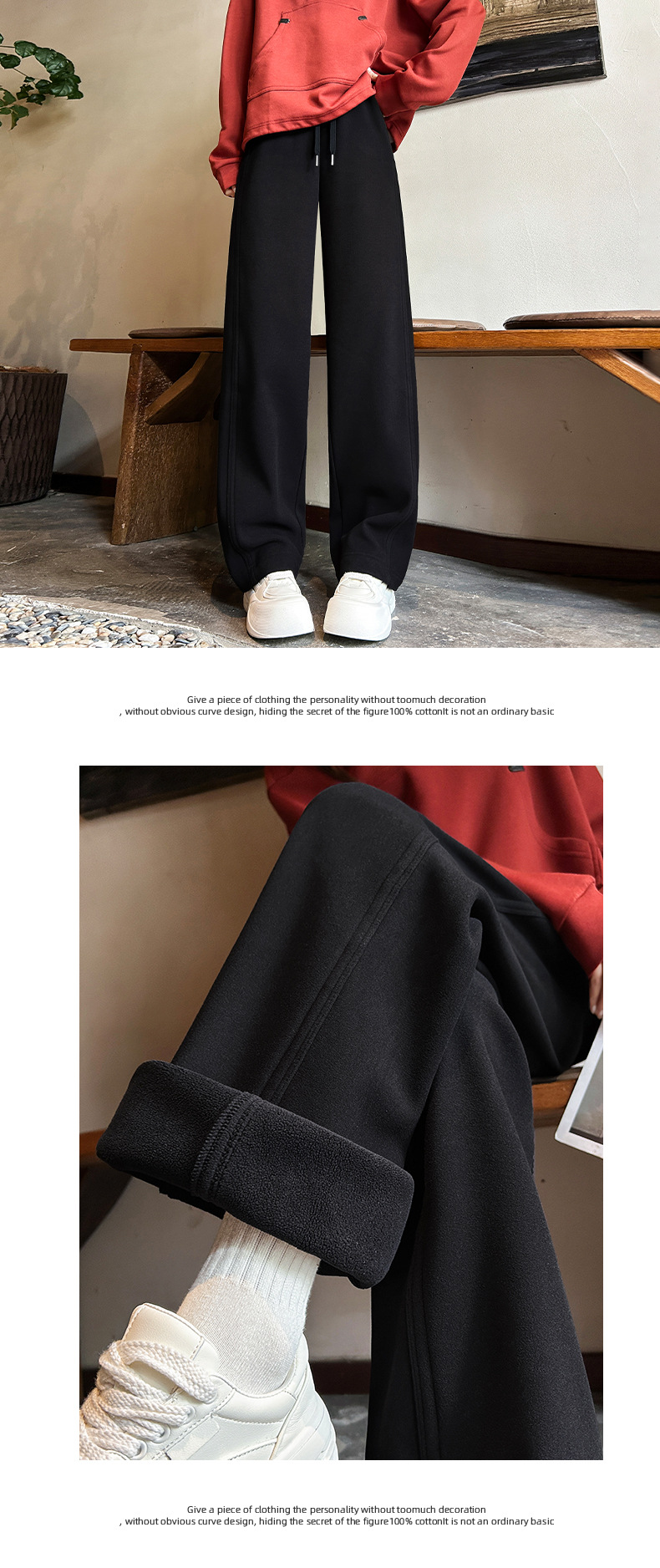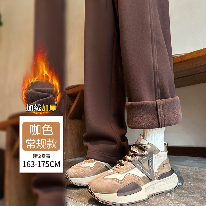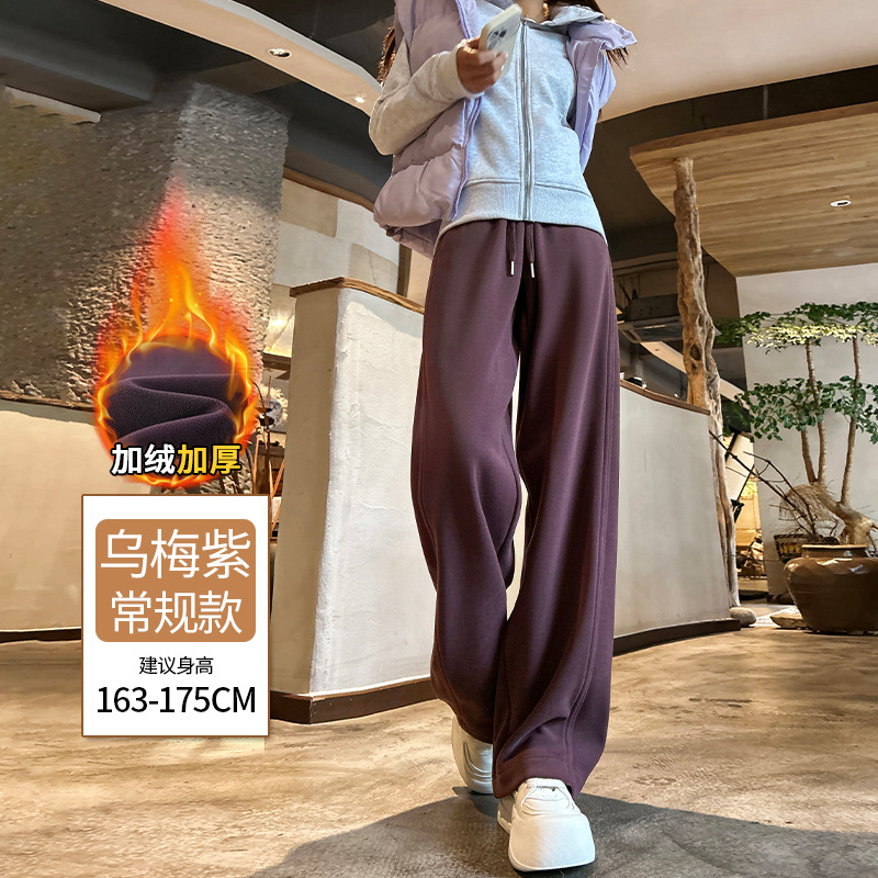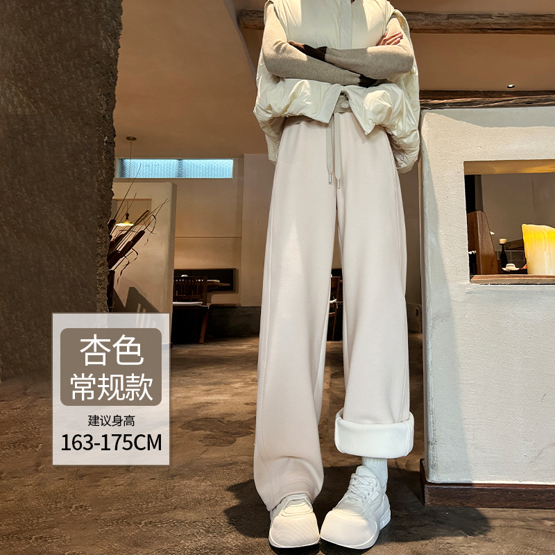 加绒防风卫裤女秋冬季2025新款小个子高腰垂感休闲显瘦直筒阔腿裤