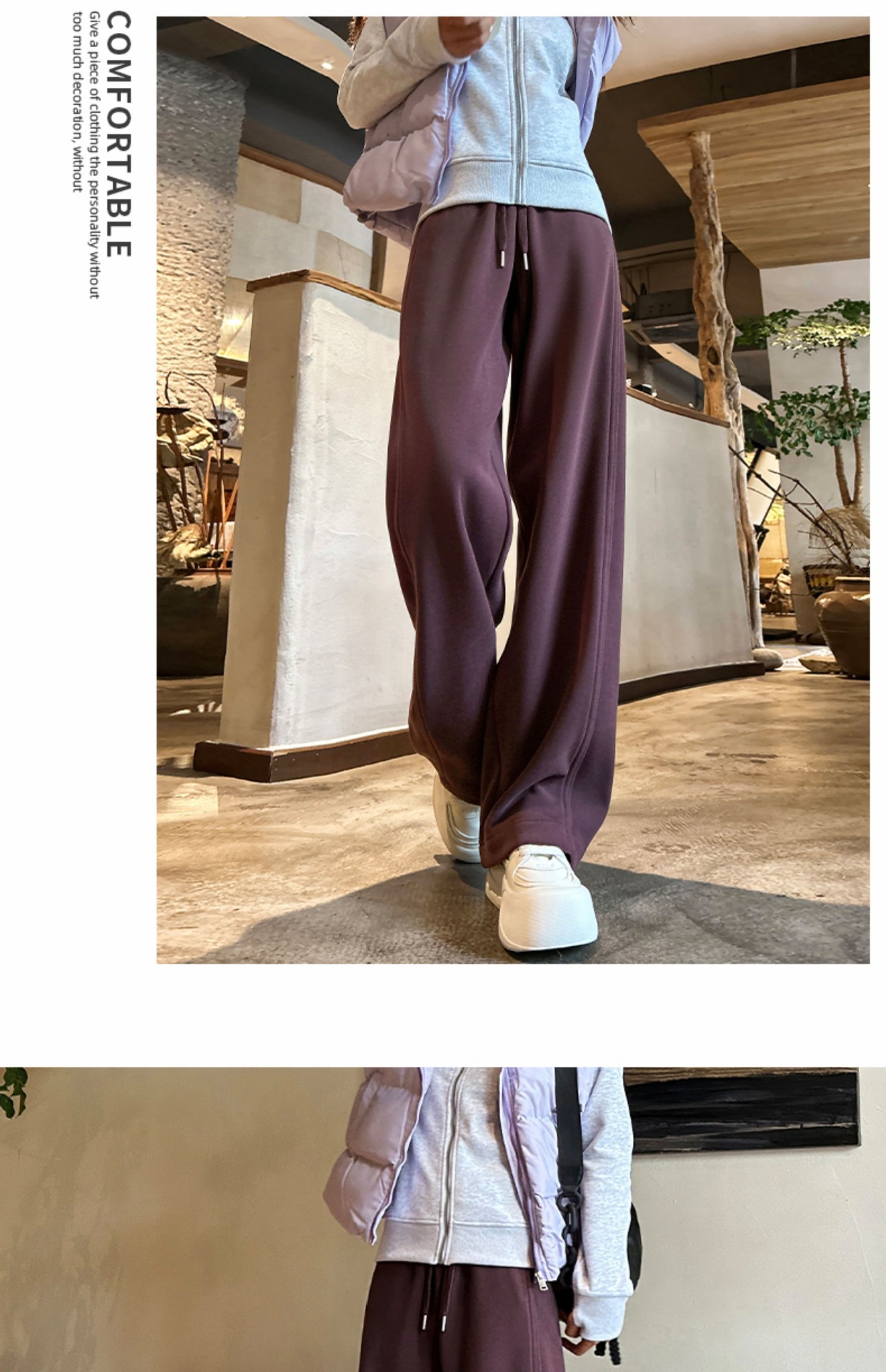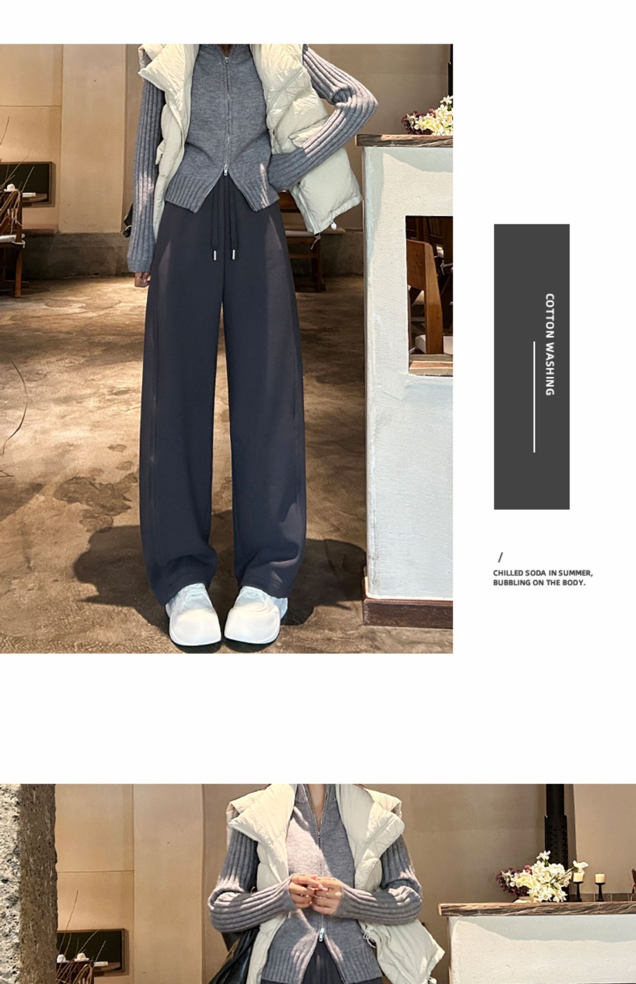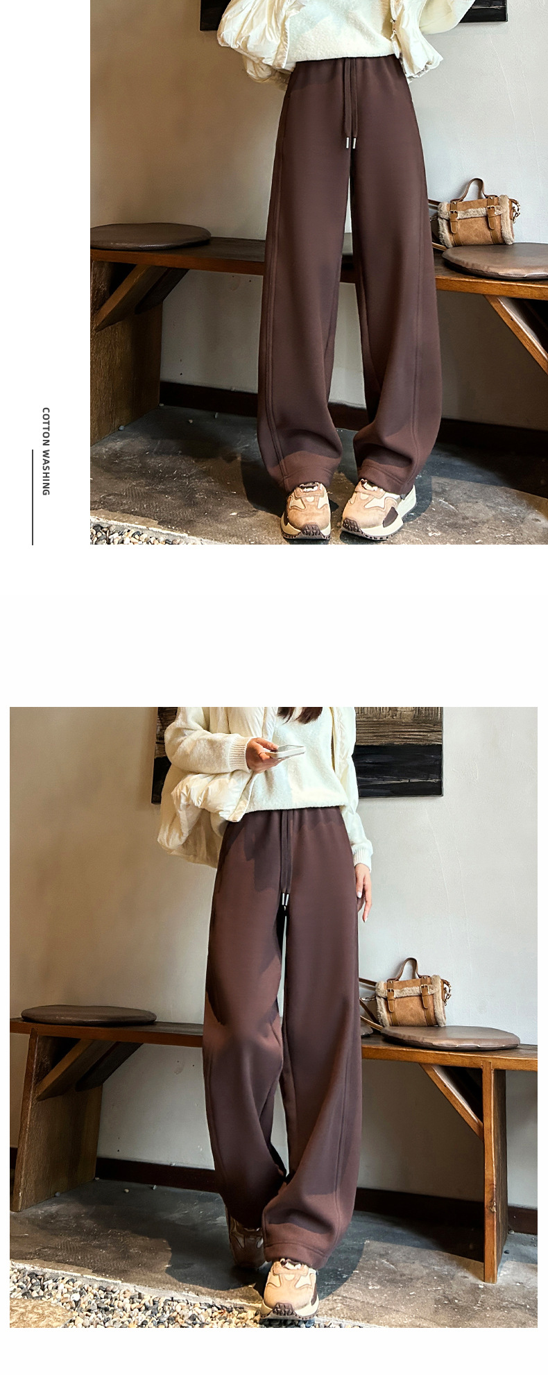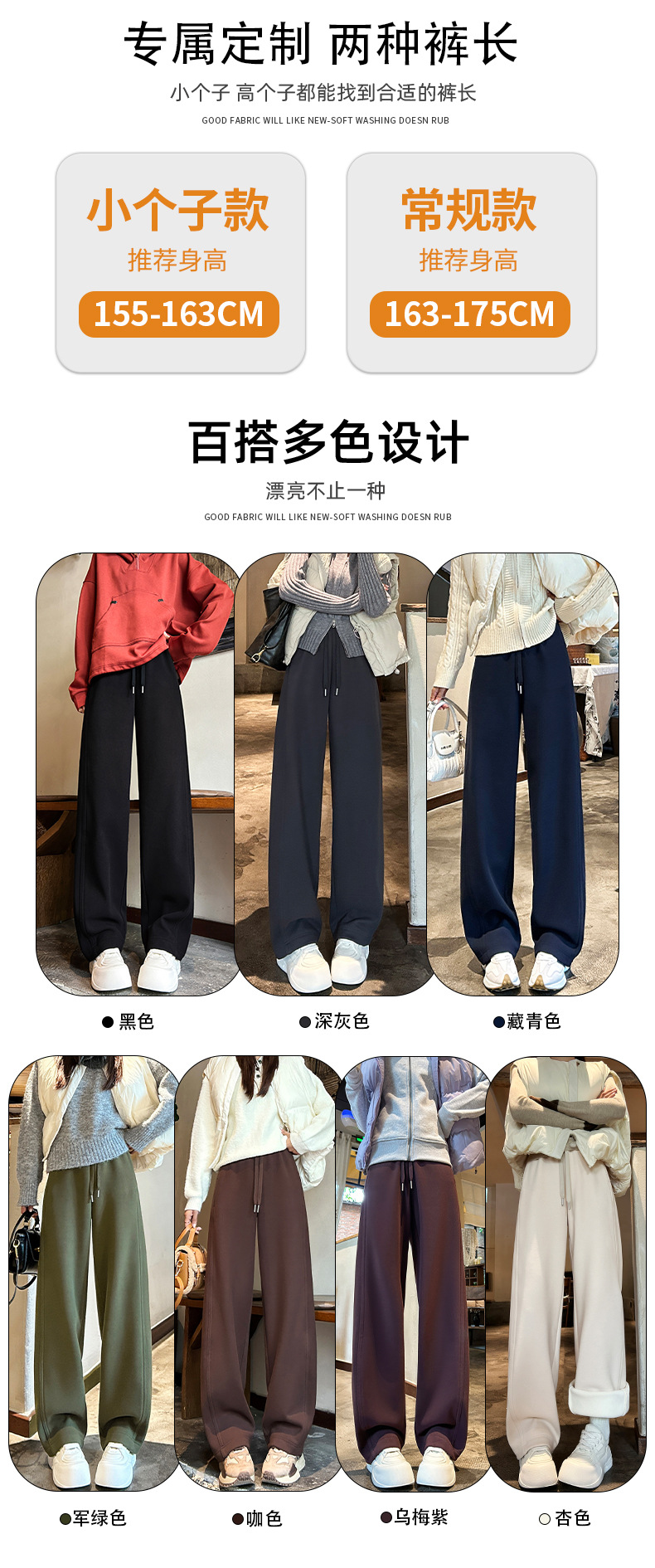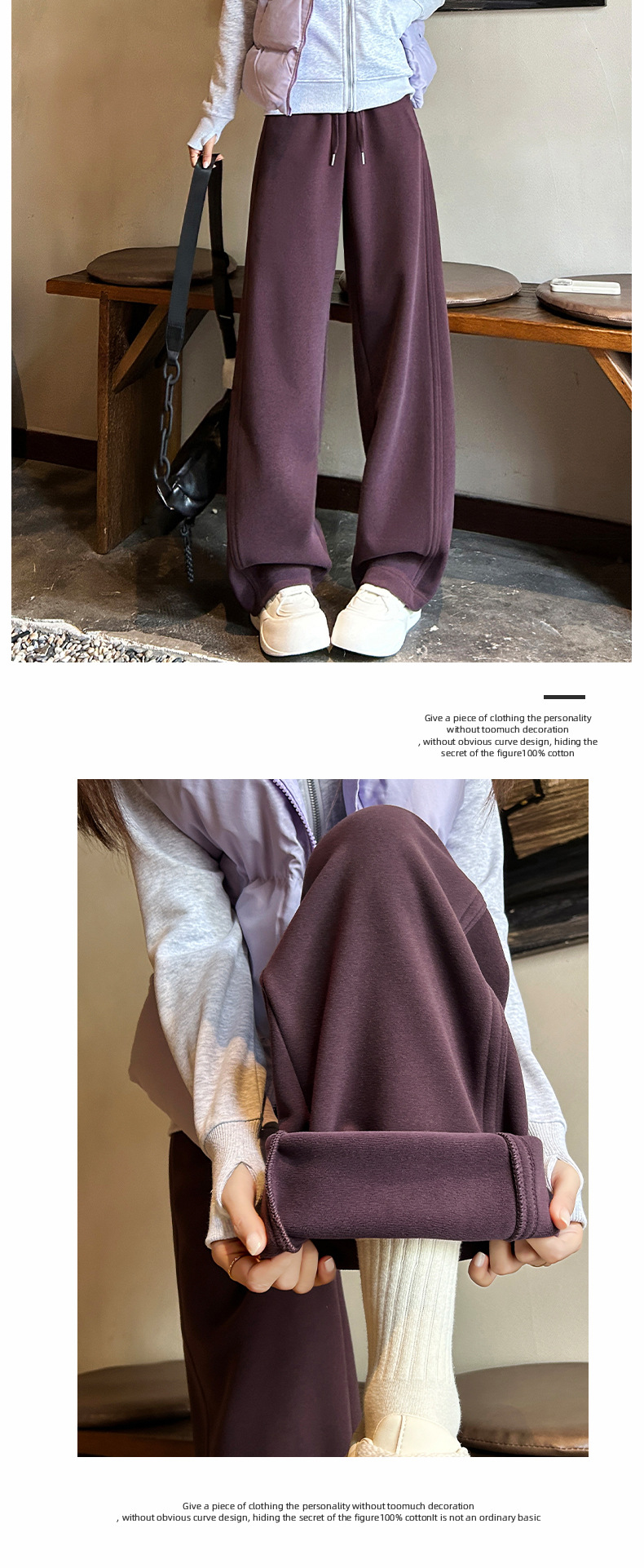加绒防风卫裤女秋冬季2025新款小个子高腰垂感休闲显瘦直筒阔腿裤