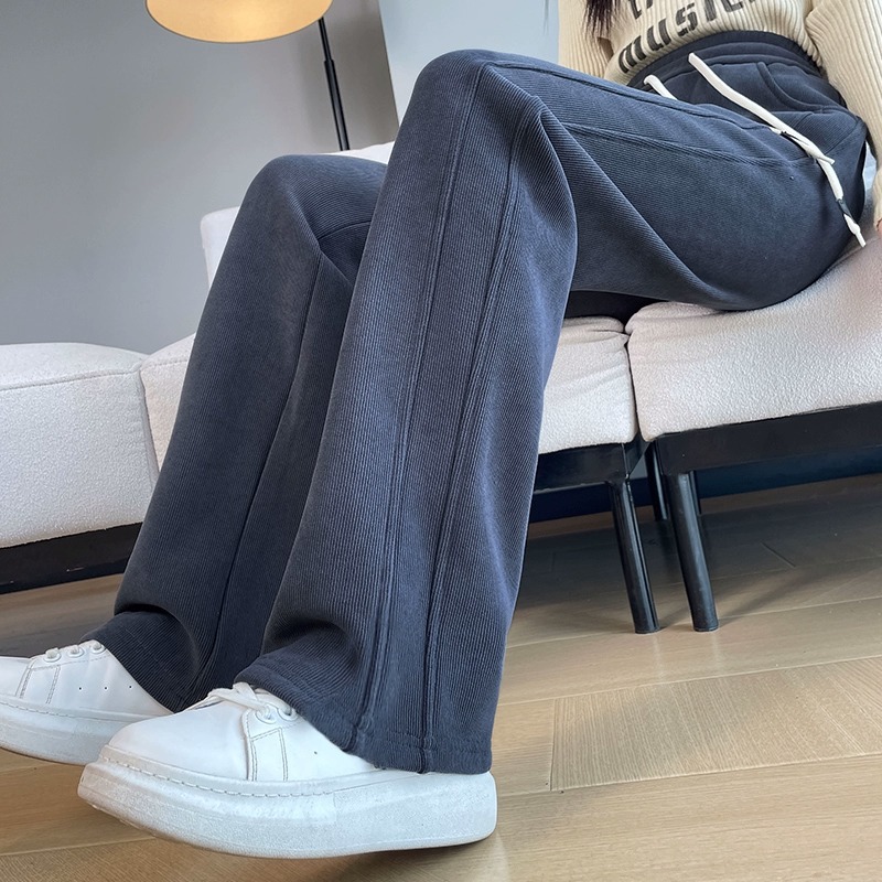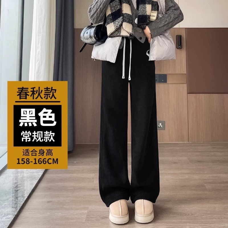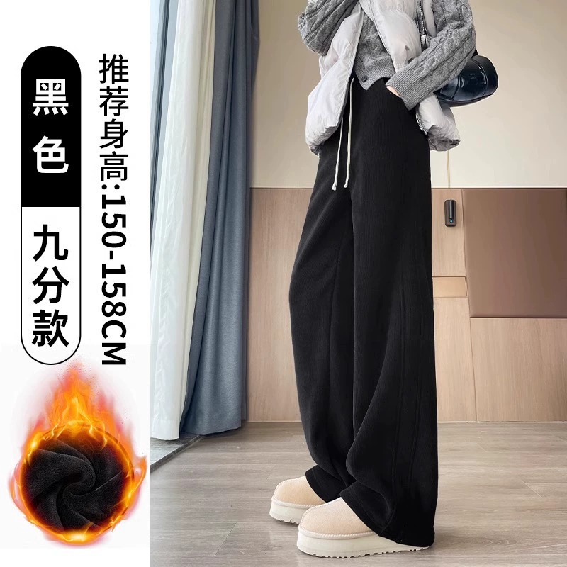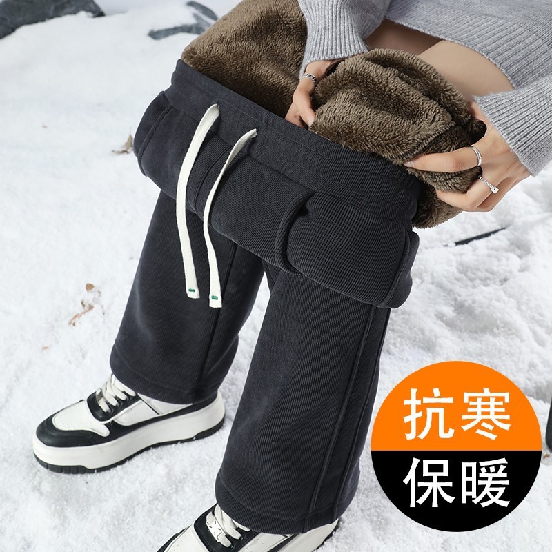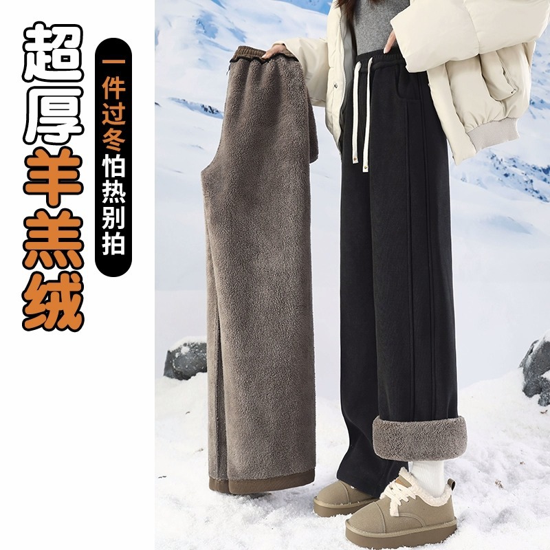 加绒加厚阔腿裤女冬季垂感运动裤羊羔绒外穿防风棉裤窄版直筒裤子