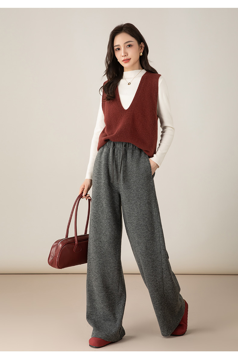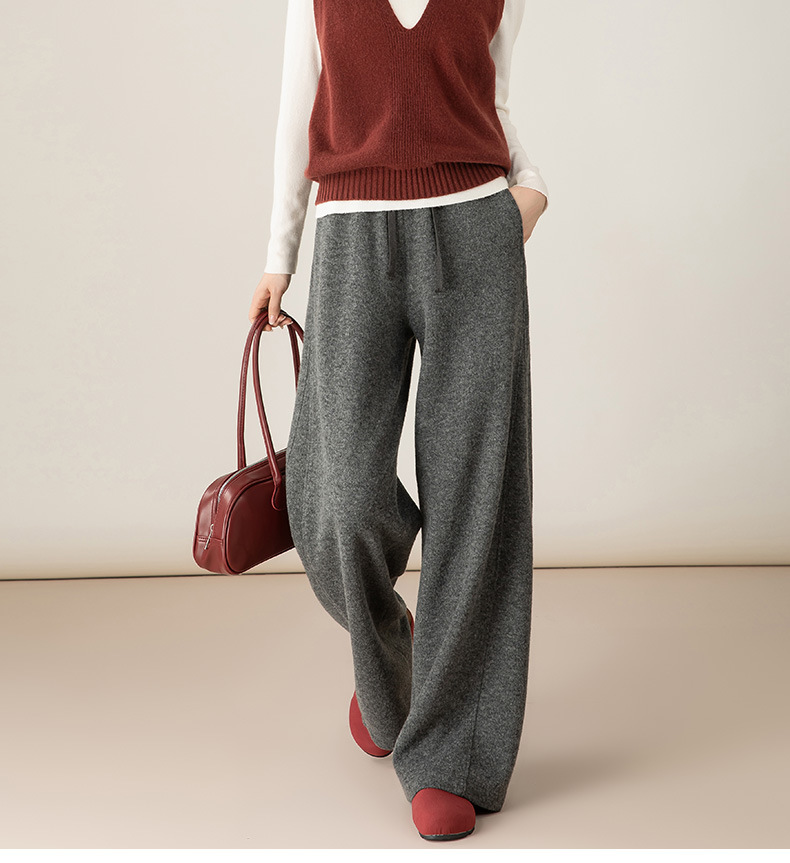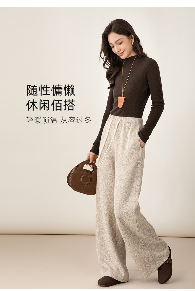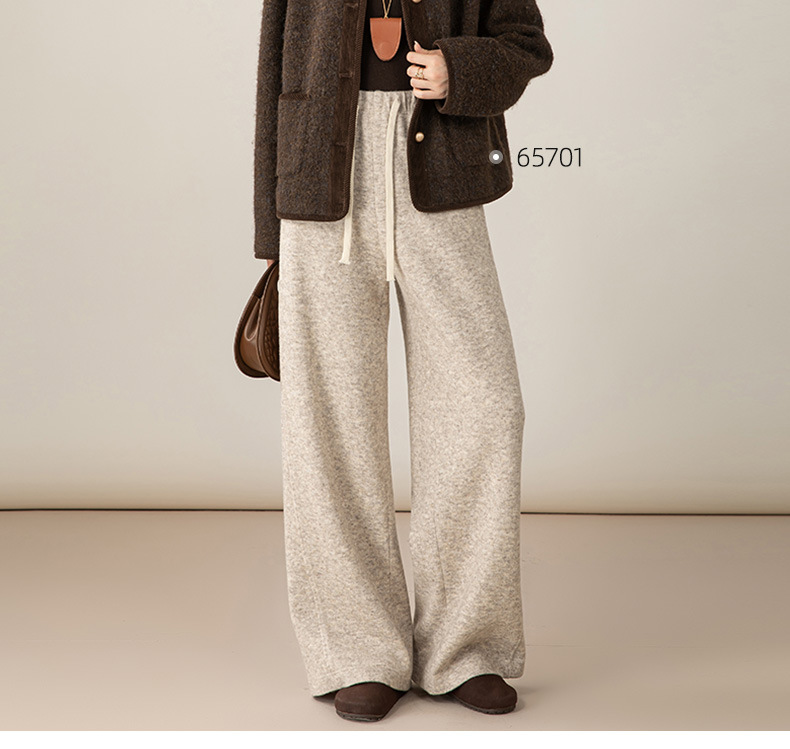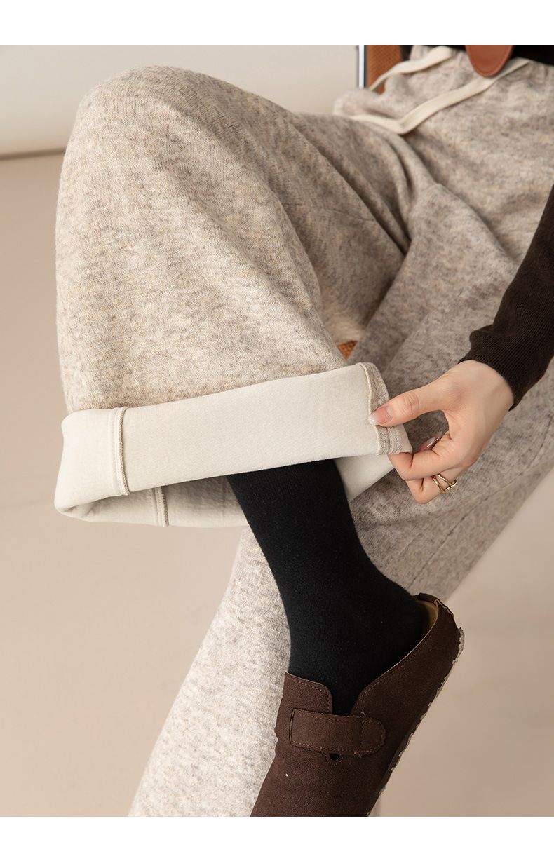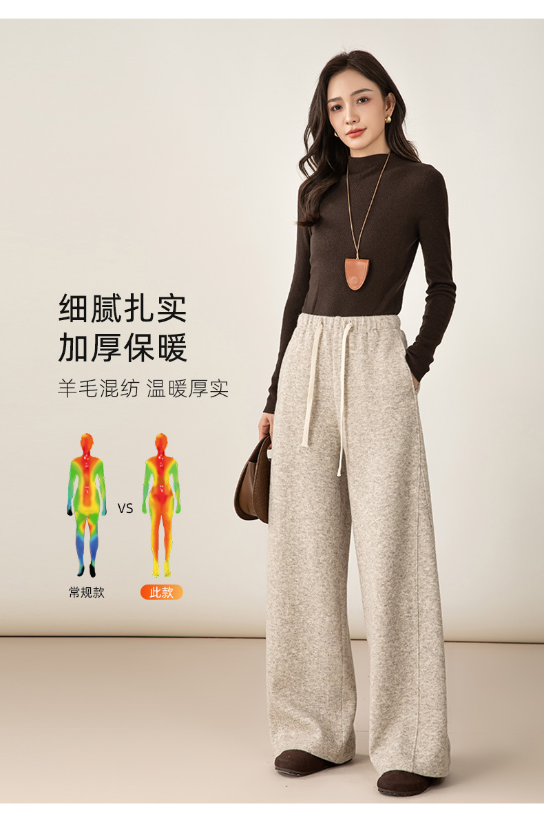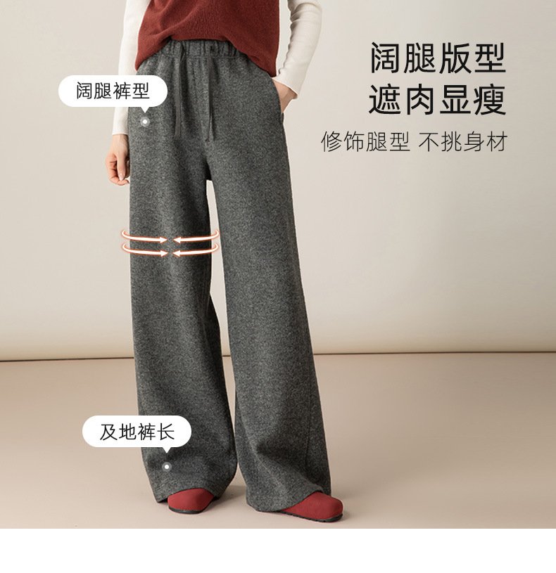 鑫阁暖绒感垂感羊毛卫裤女冬新款加厚保暖休闲裤直筒阔腿裤