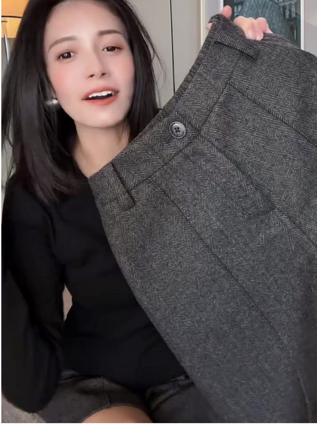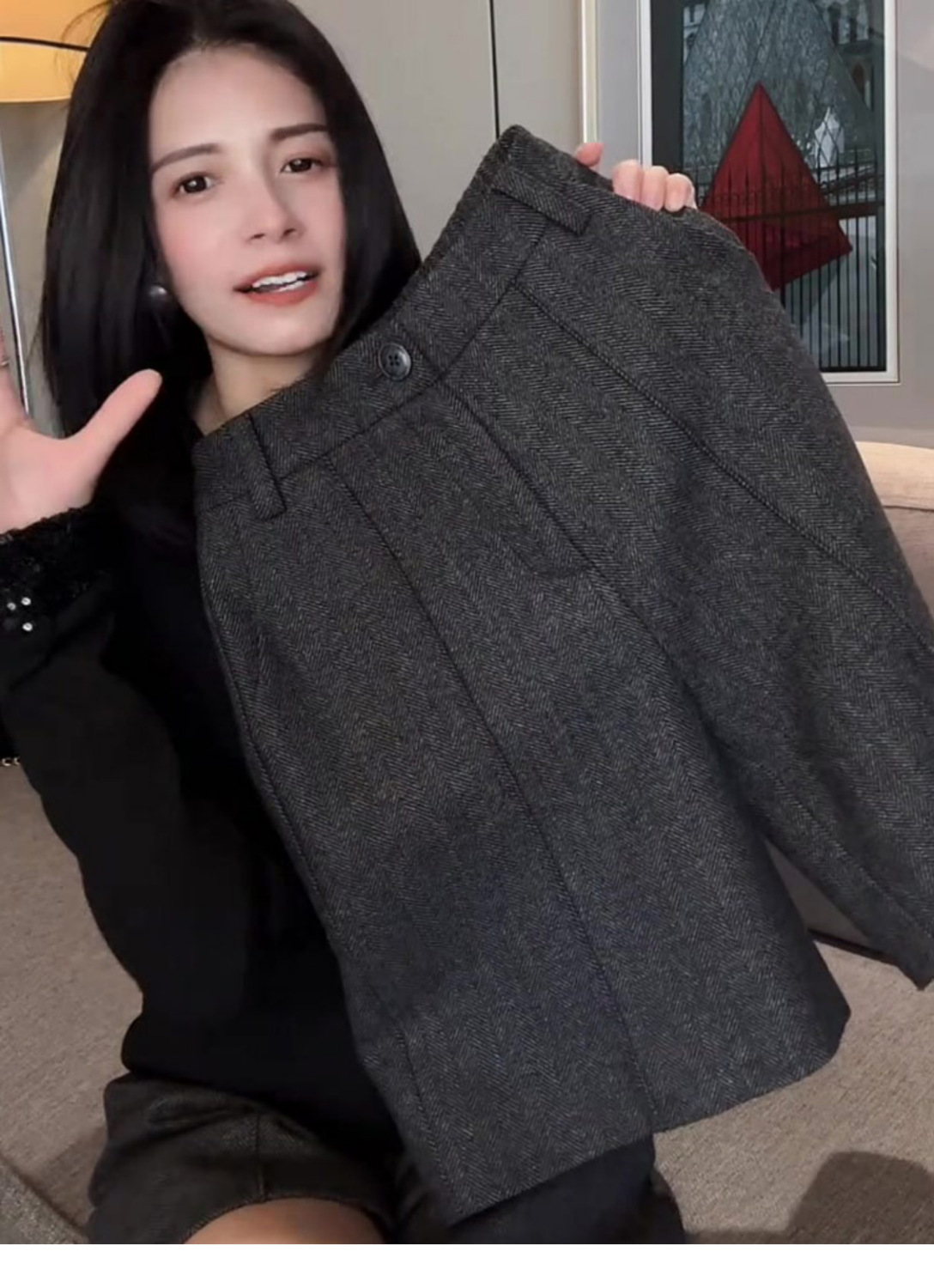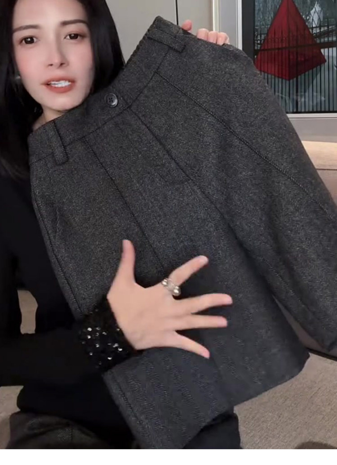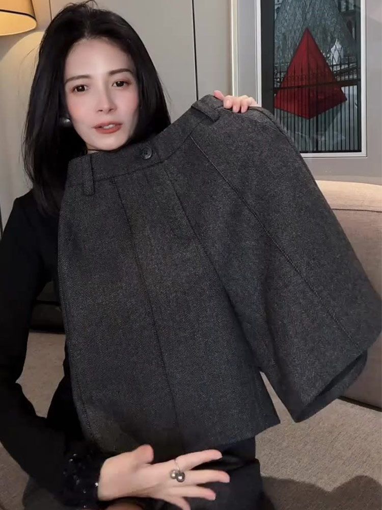 深灰色毛呢保暖休闲风五分裤女2025春秋冬新款韩版气质轻熟感裤