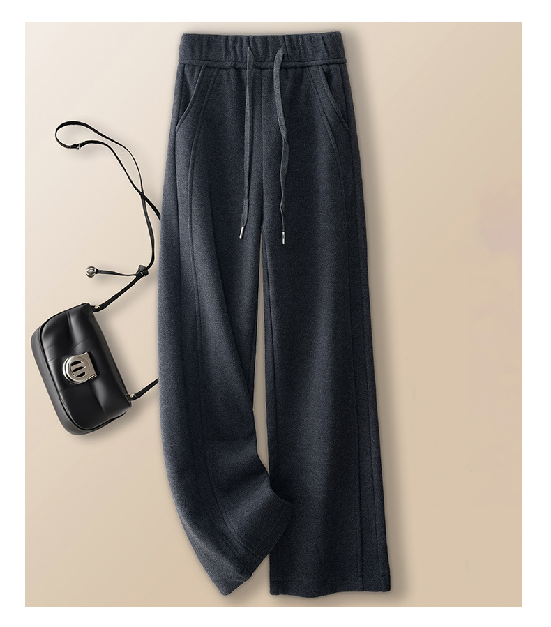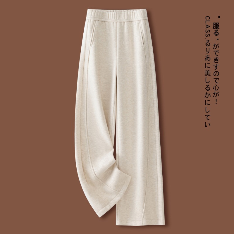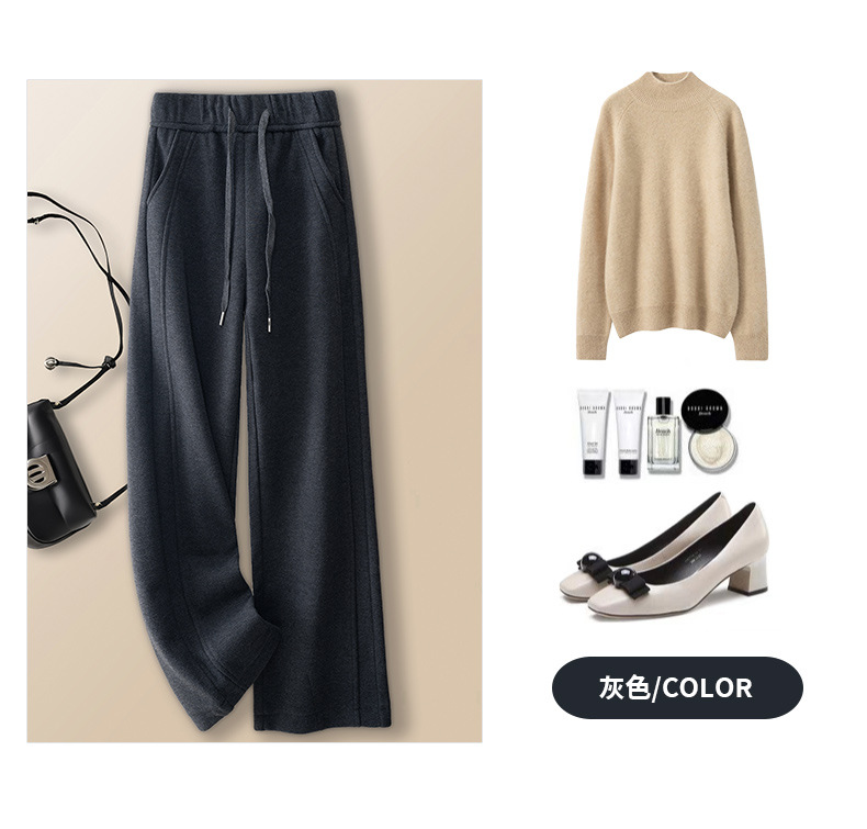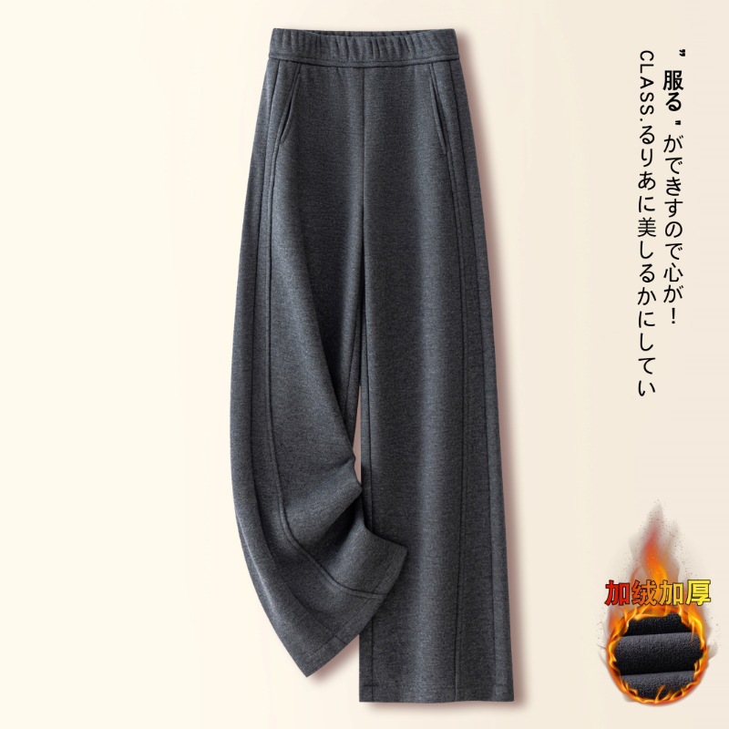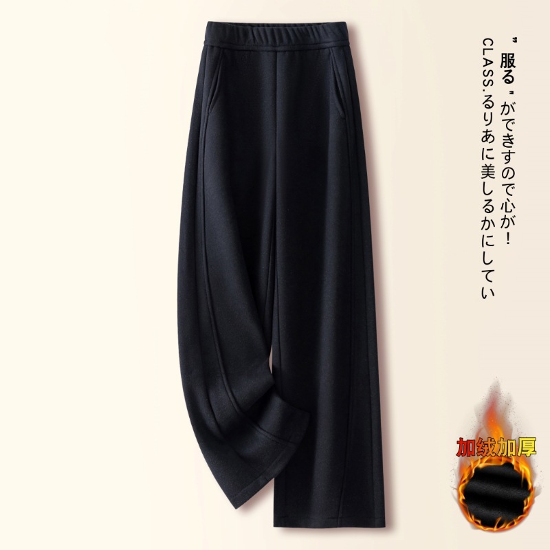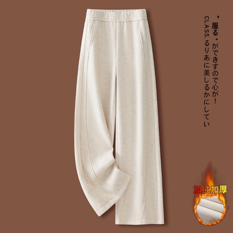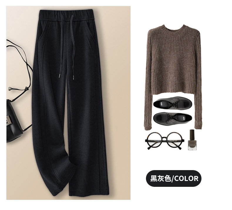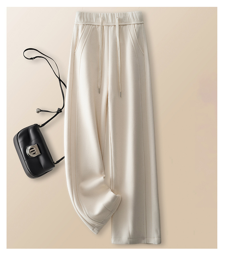 白色醋酸羊毛窄版阔腿裤女2025新款秋冬季加绒加厚显瘦休闲直筒裤
