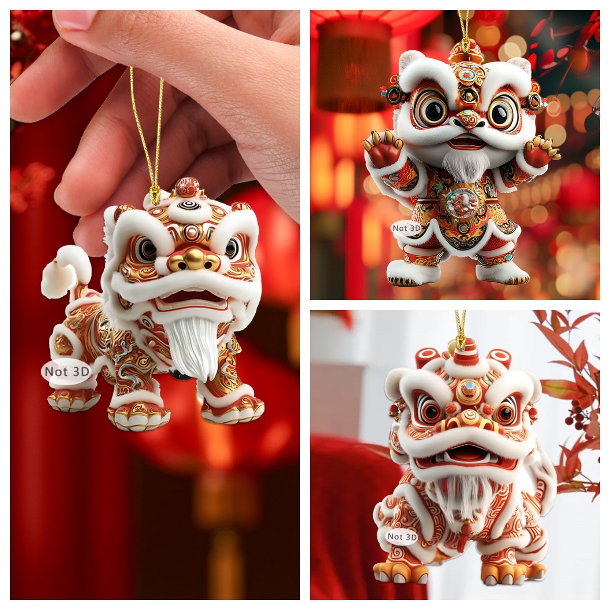 国潮新款舞狮钥匙扣平面亚克力挂件汽车书包挂饰中式风格钥匙扣