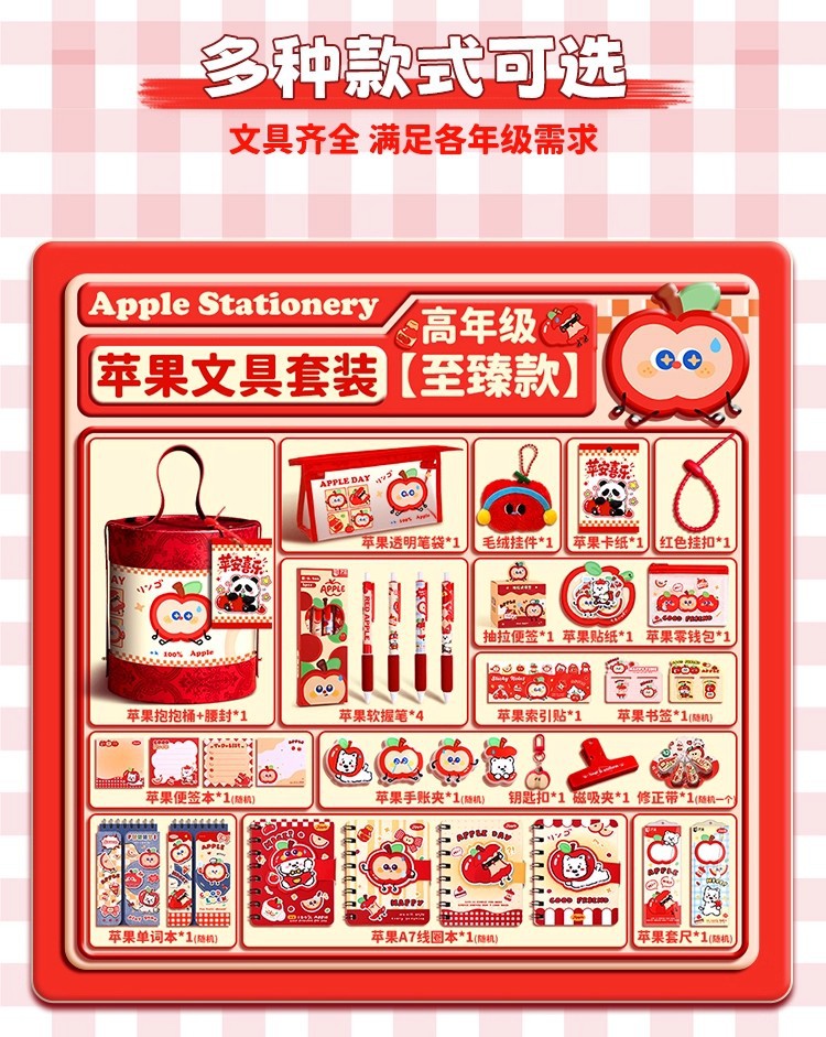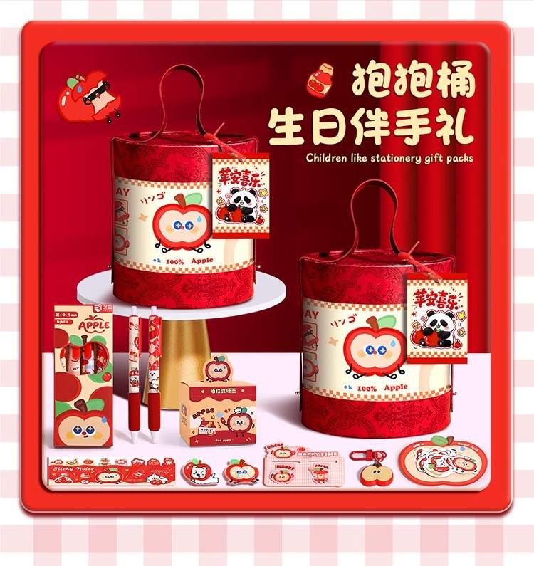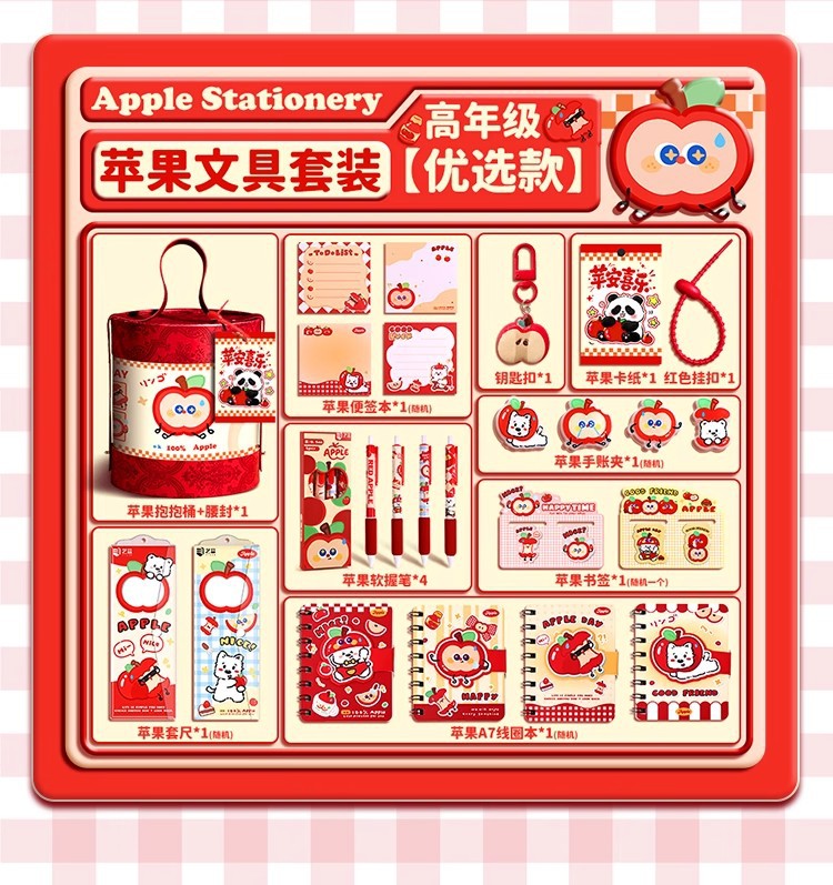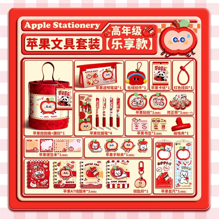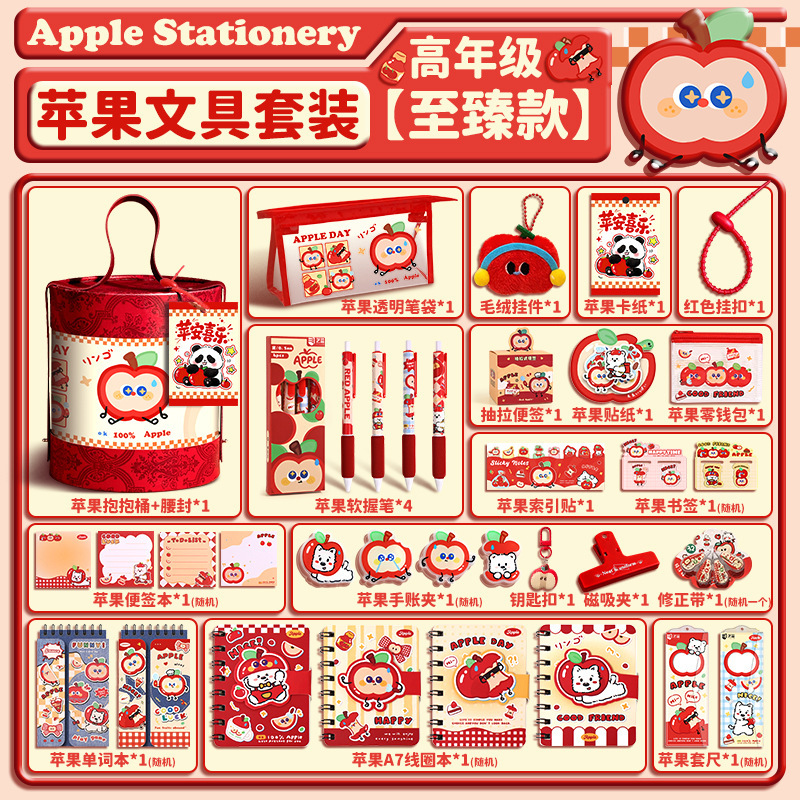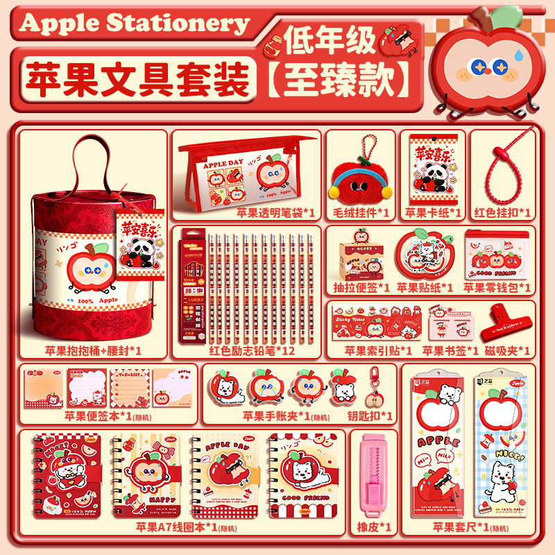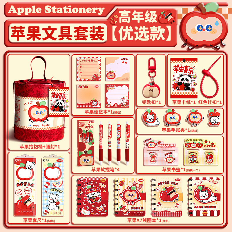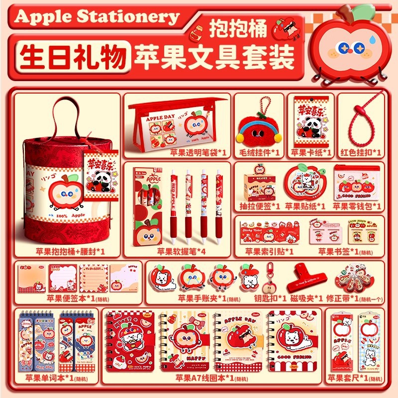 苹果猫文具套装抱抱桶开学伴手礼大礼包小学生期末奖品生日礼物