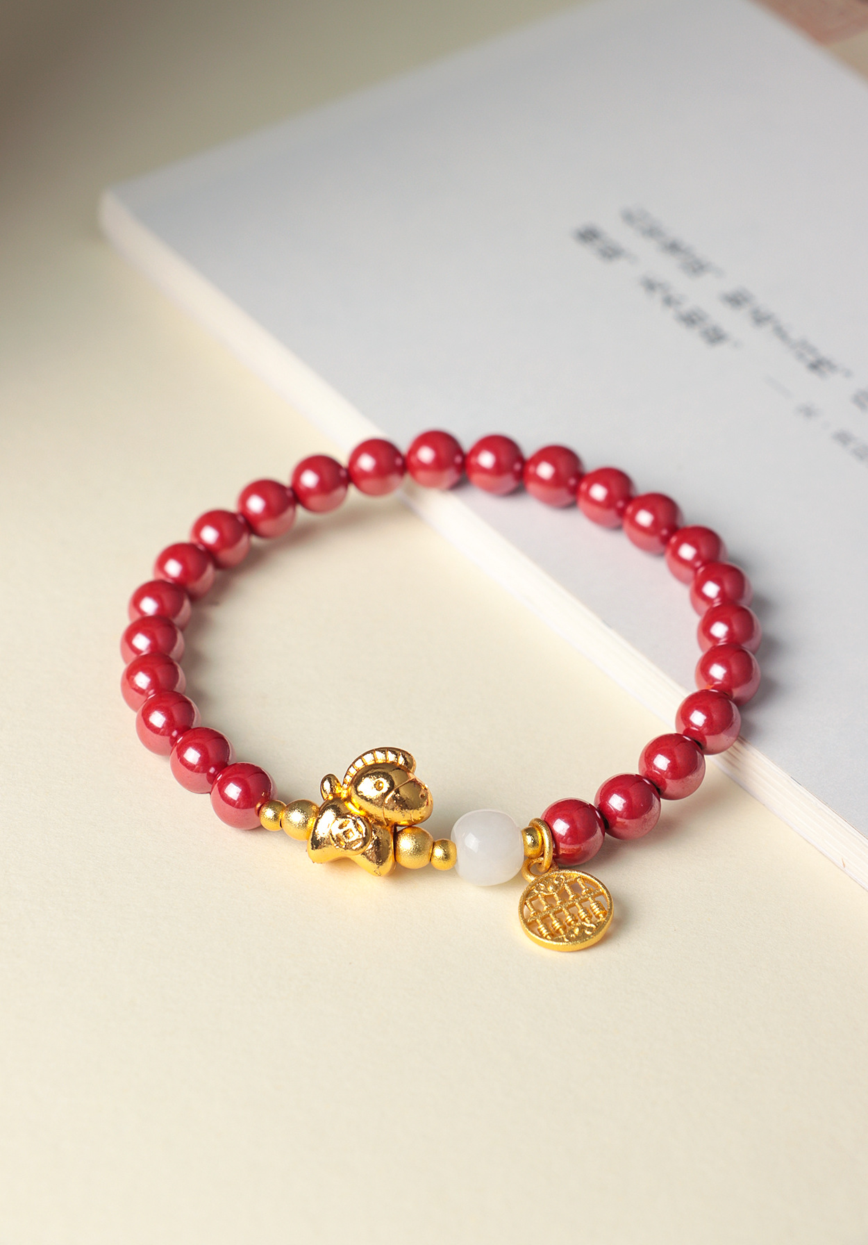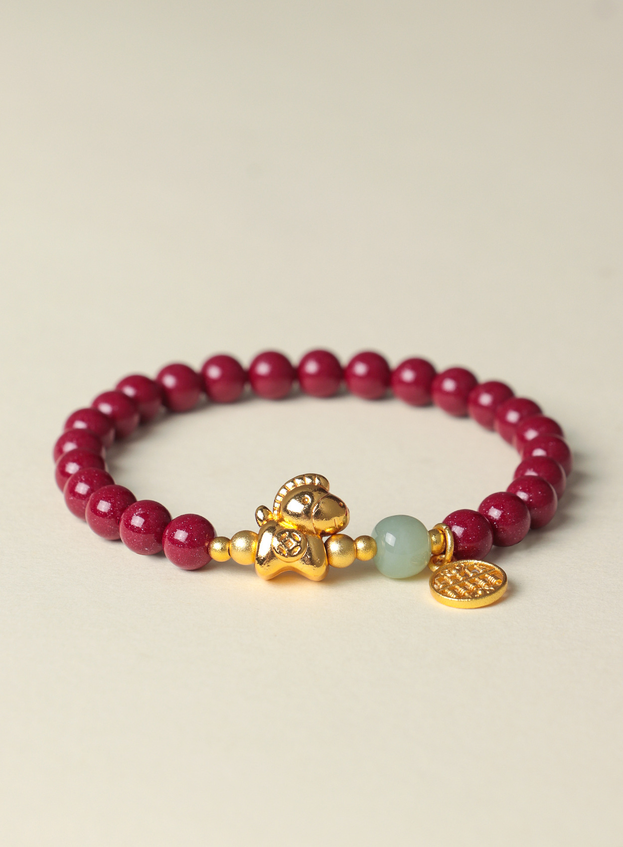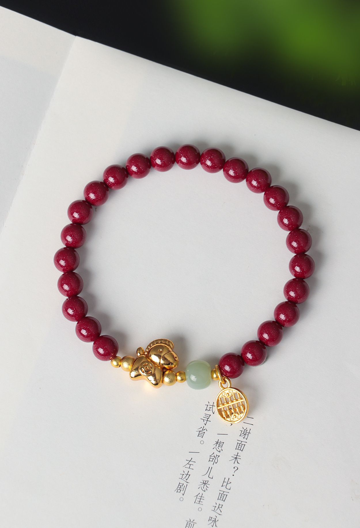 天然朱砂和田玉串珠手链女时尚通勤多财多福金马紫金朱砂手串批发