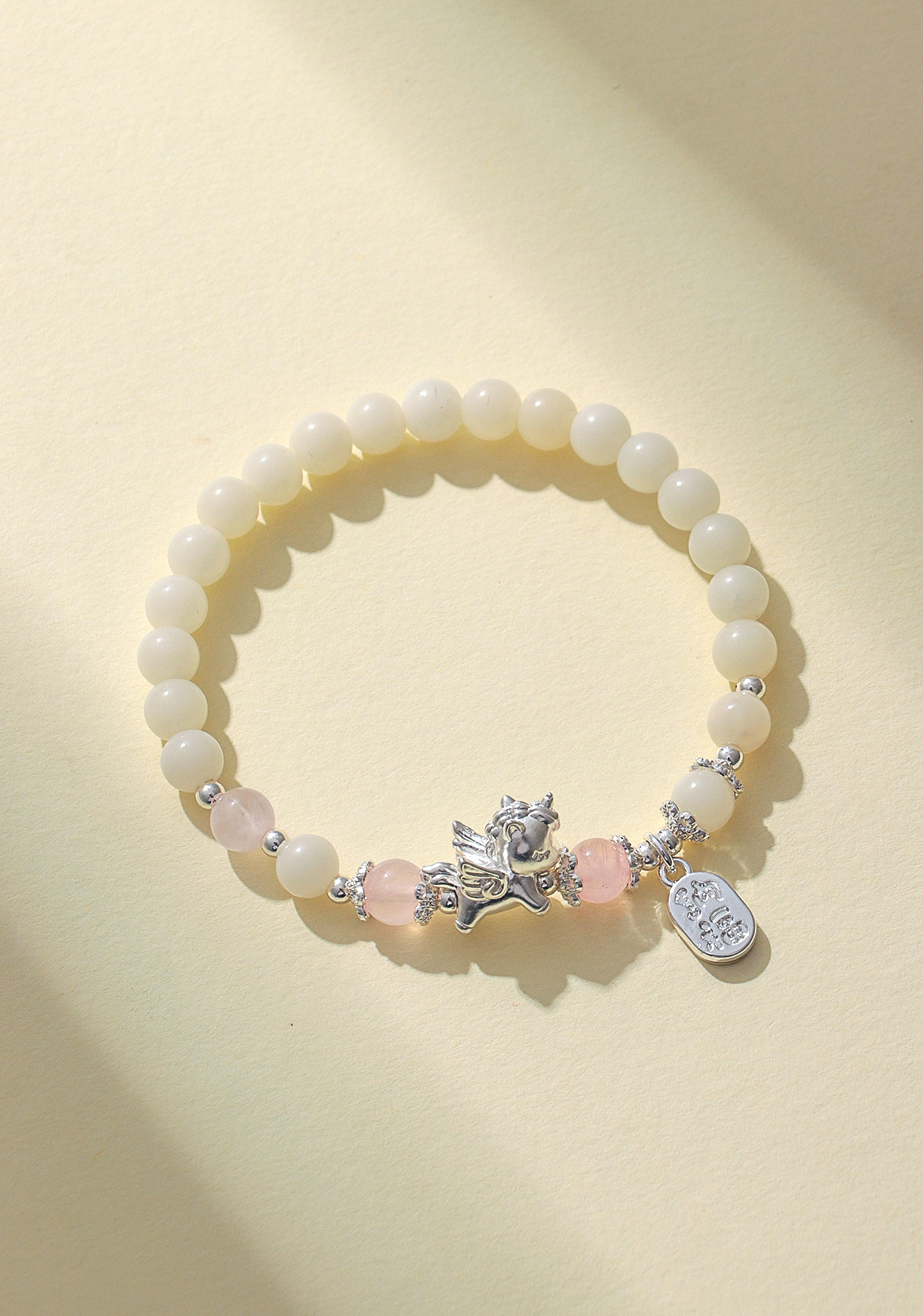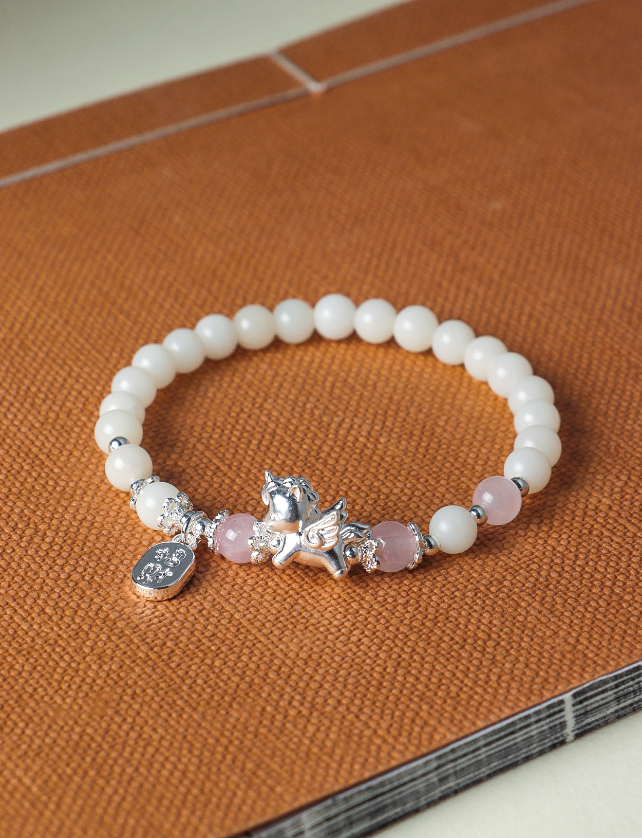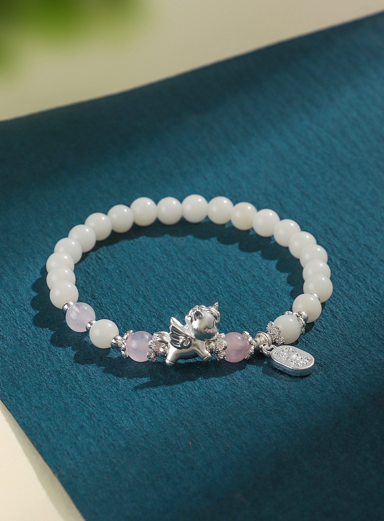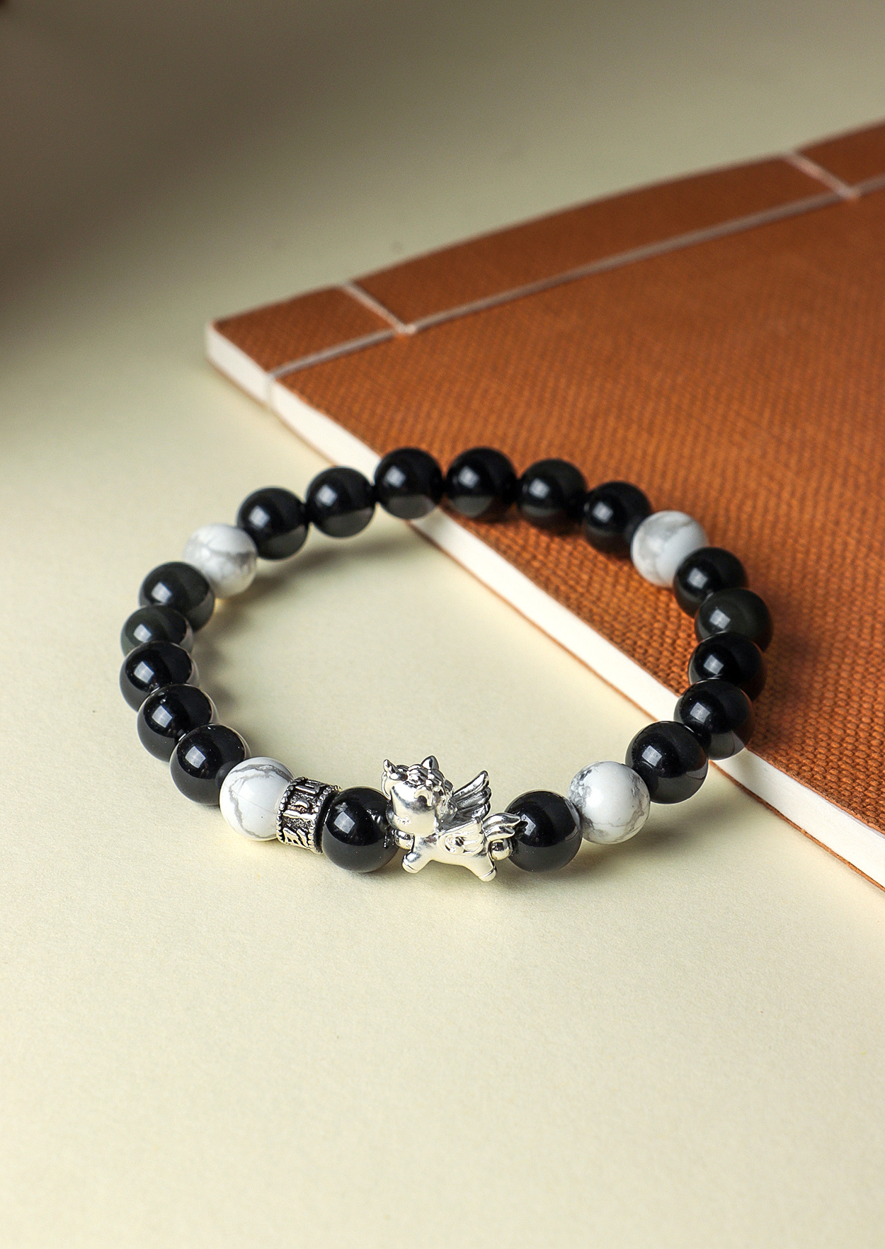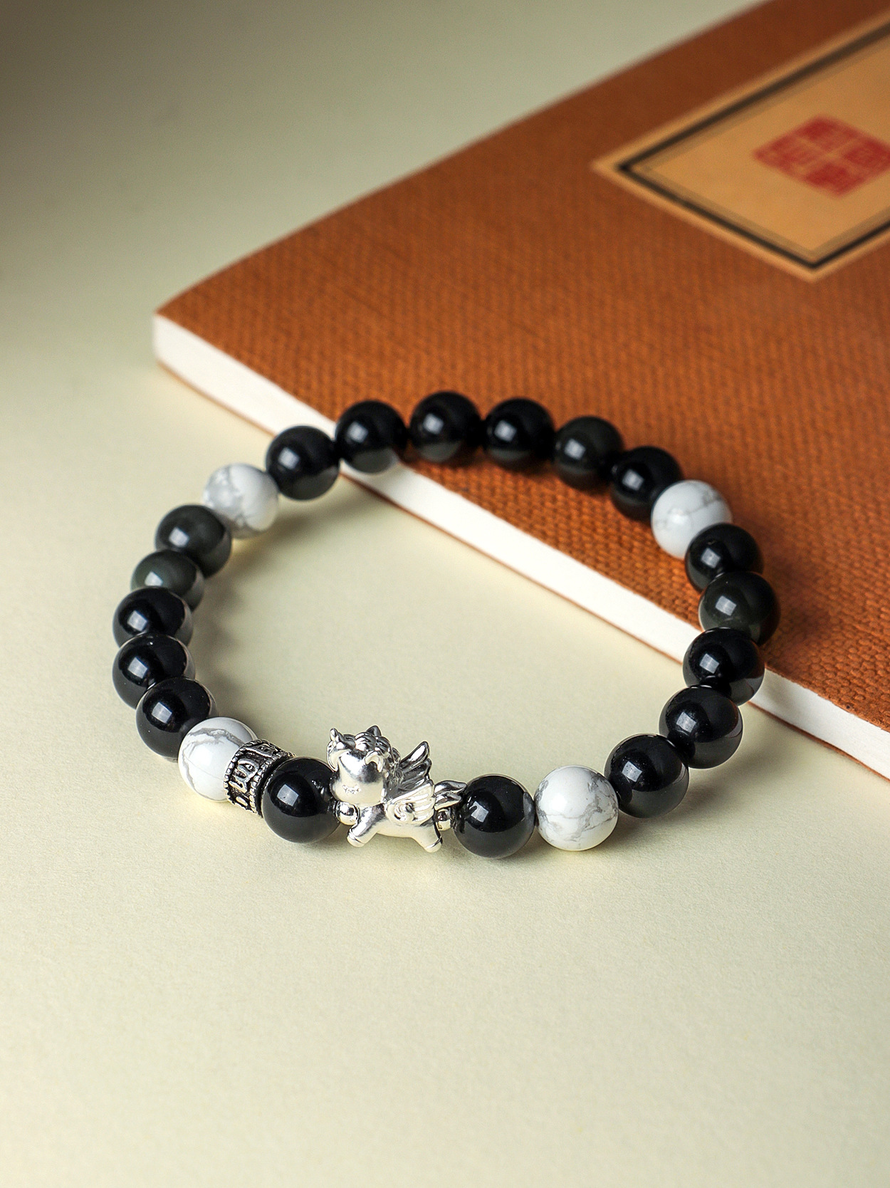 999足银飞马天然黑曜石粉水晶串珠情侣式手链原创设计菩提手串