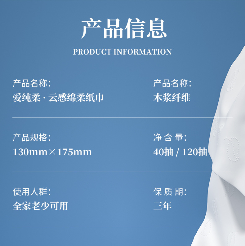 婴儿柔纸巾40抽6包家用实惠装抽纸手口面巾纸新生儿擦手纸云柔巾