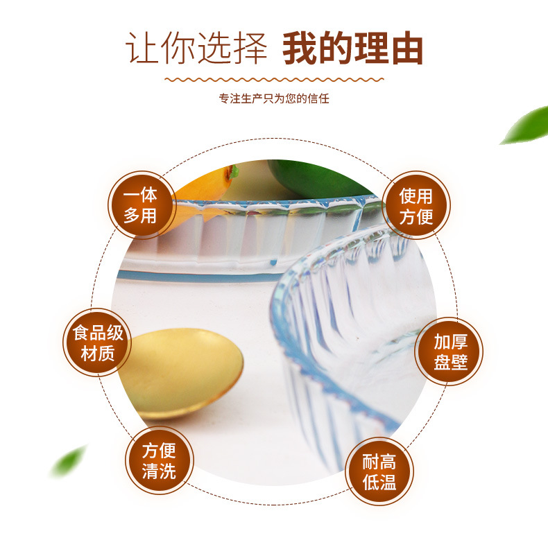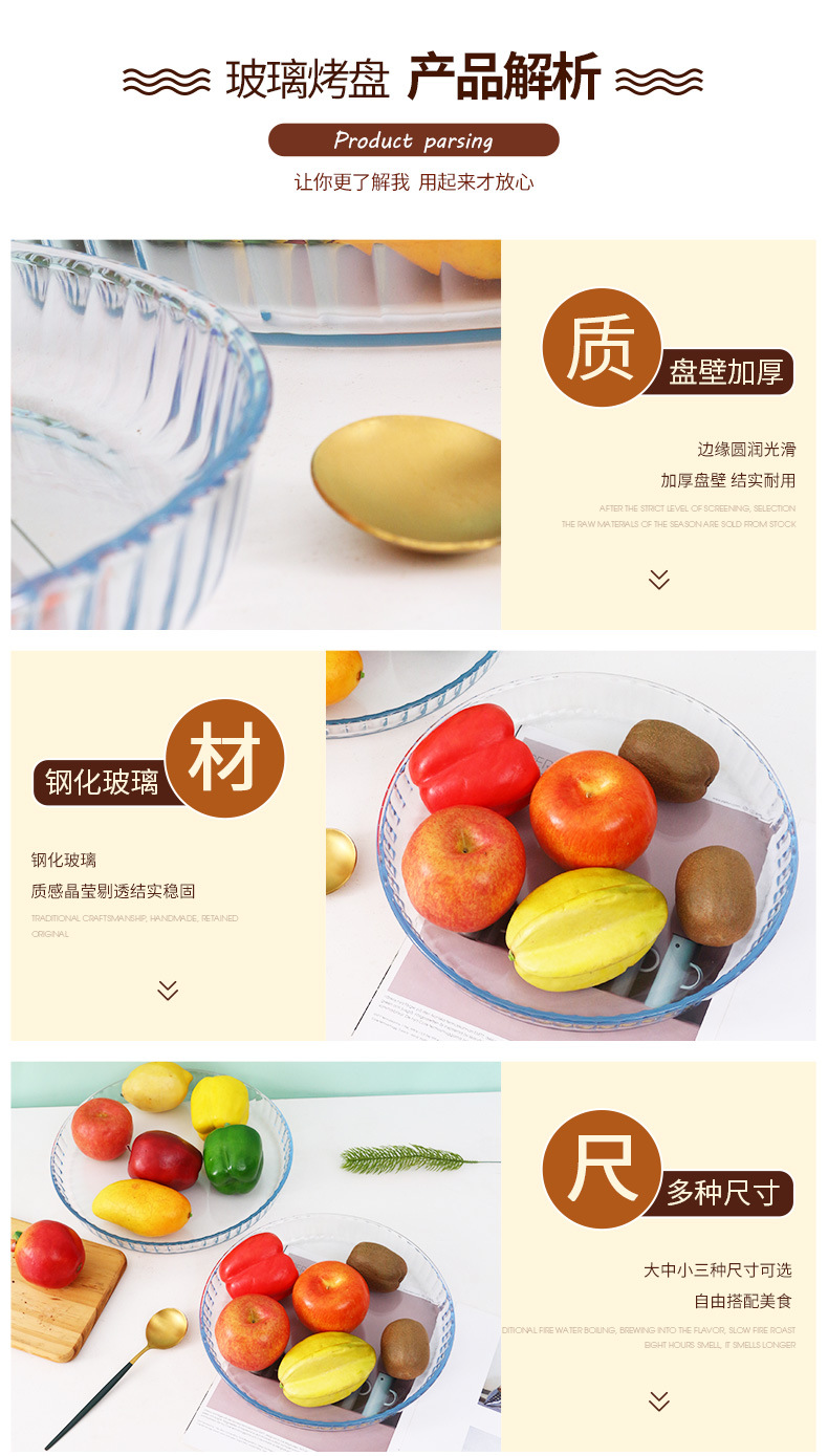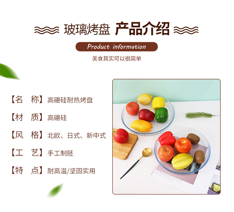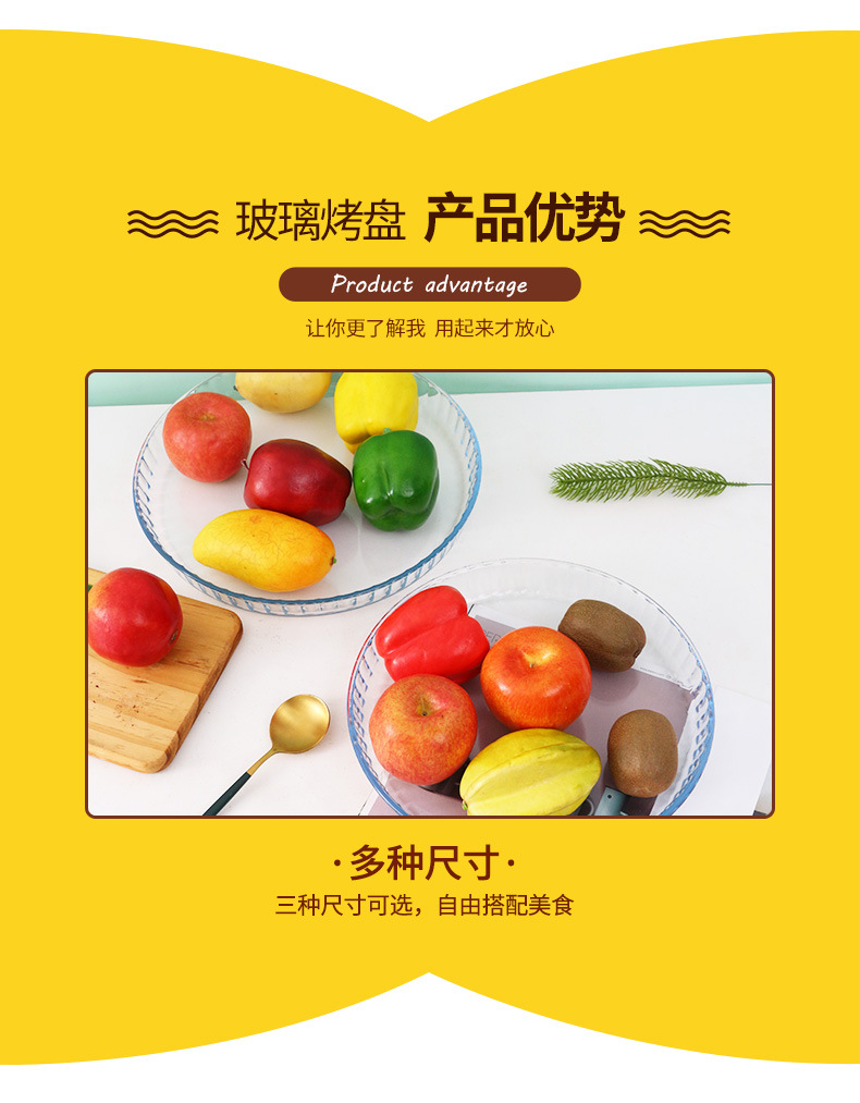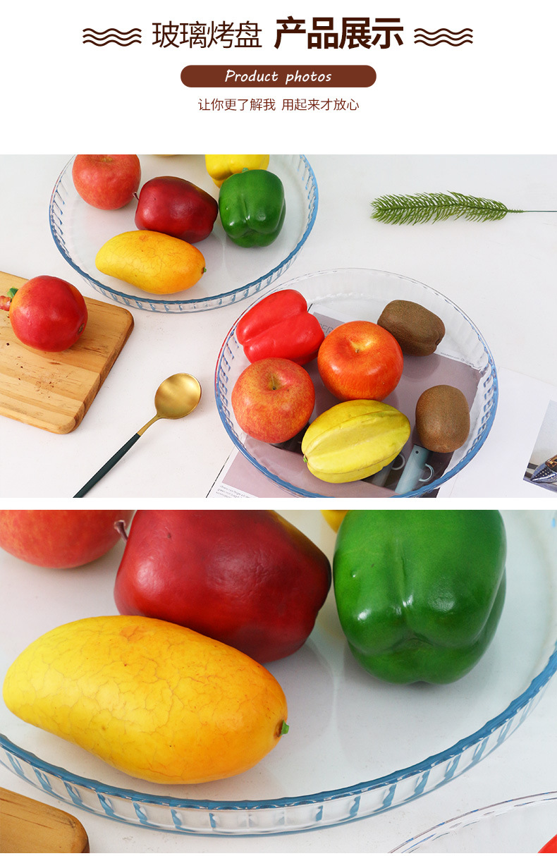 圆形耐热玻璃烤盘 透明大号微波炉烤盘玻璃烤盘家用耐热蒸鱼盘子